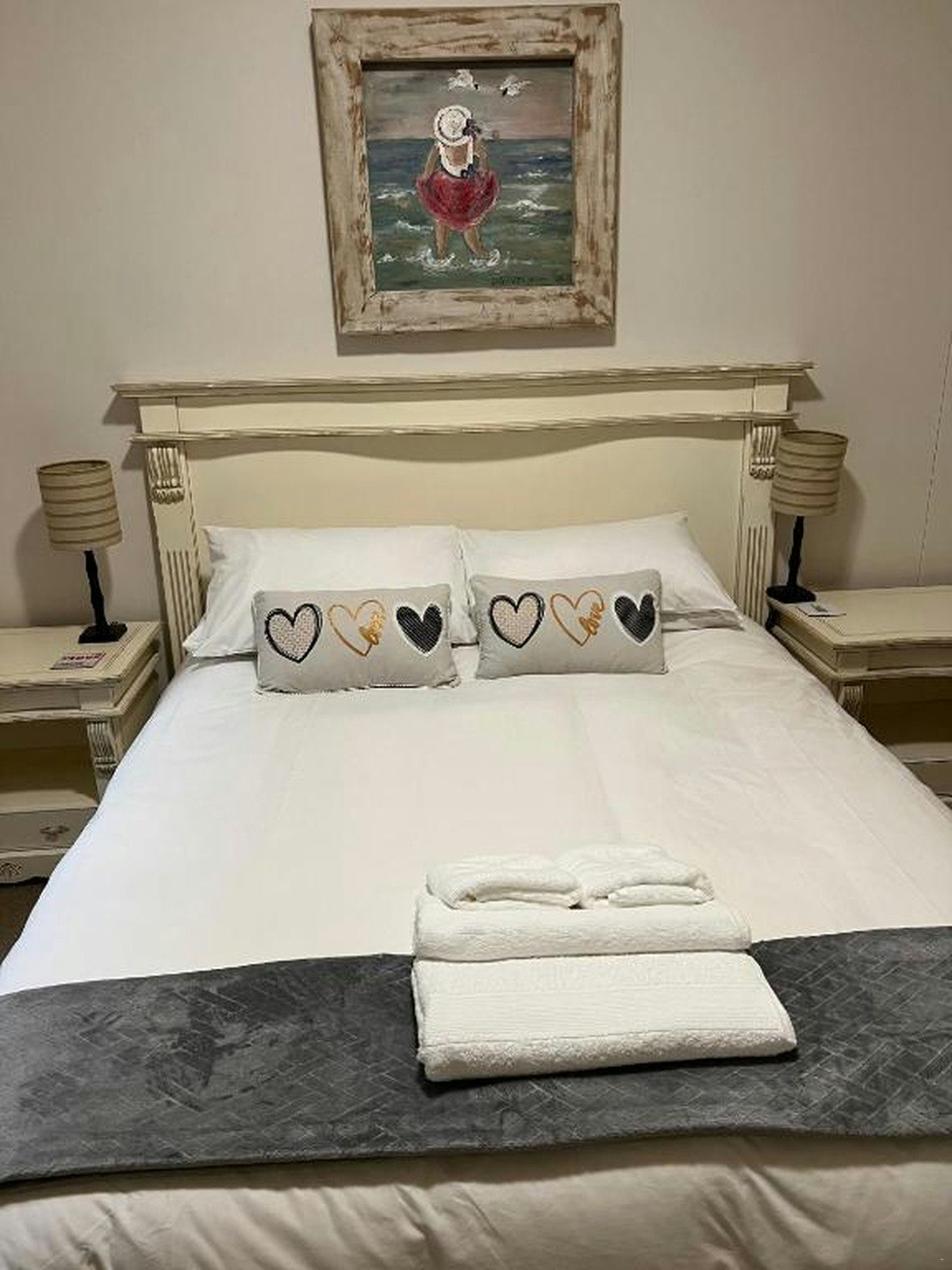 Hierdie woonstel bied slaapplek vir tot 6 gaste in 3 slaapkamers en 2 badkamers. Al drie slaapkamers is elk ingerig met 'n koningingrootte-bed. Die eerste slaapkamer het toegang tot 'n en suite-badkamer met 'n stort, terwyl die ander slaapkamers gebruik maak van 'n gedeelde badkamer met 'n bad en stort. Linne en badhanddoeke word voorsien, maar gaste moet hul eie swemhanddoeke saambring.