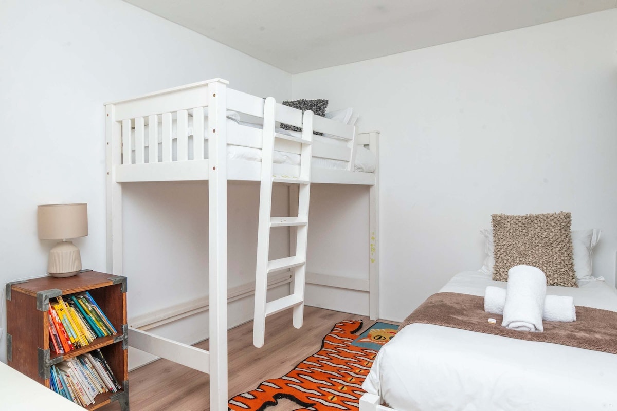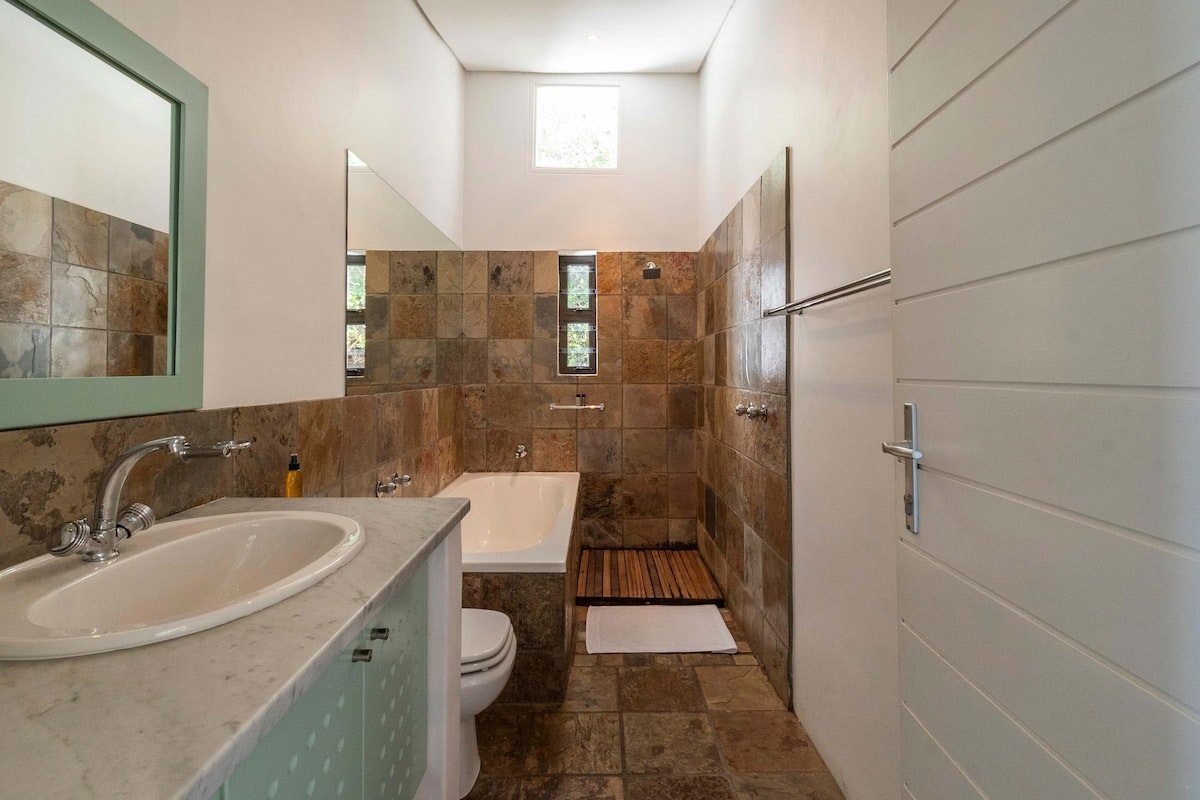 This double-storey home can accommodate up to 7 guests and comprises 3 bedrooms and 3 bathrooms. Two of the bedrooms are furnished with a queen-size bed. The third bedroom contains 2 single beds, while the fourth bedroom is furnished with a king-size bed. The bathrooms are fitted with a shower. Linen and bath towels are provided.