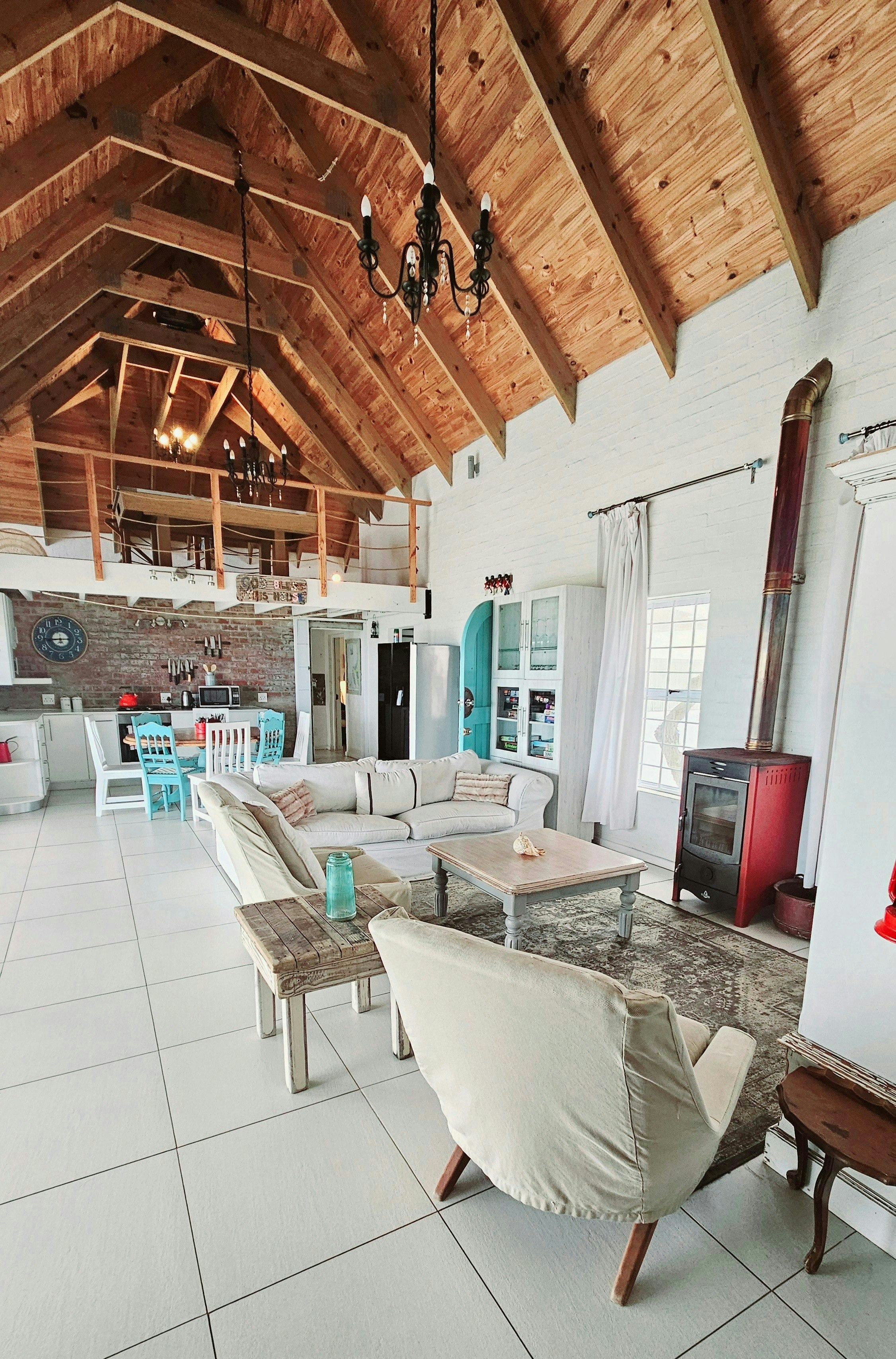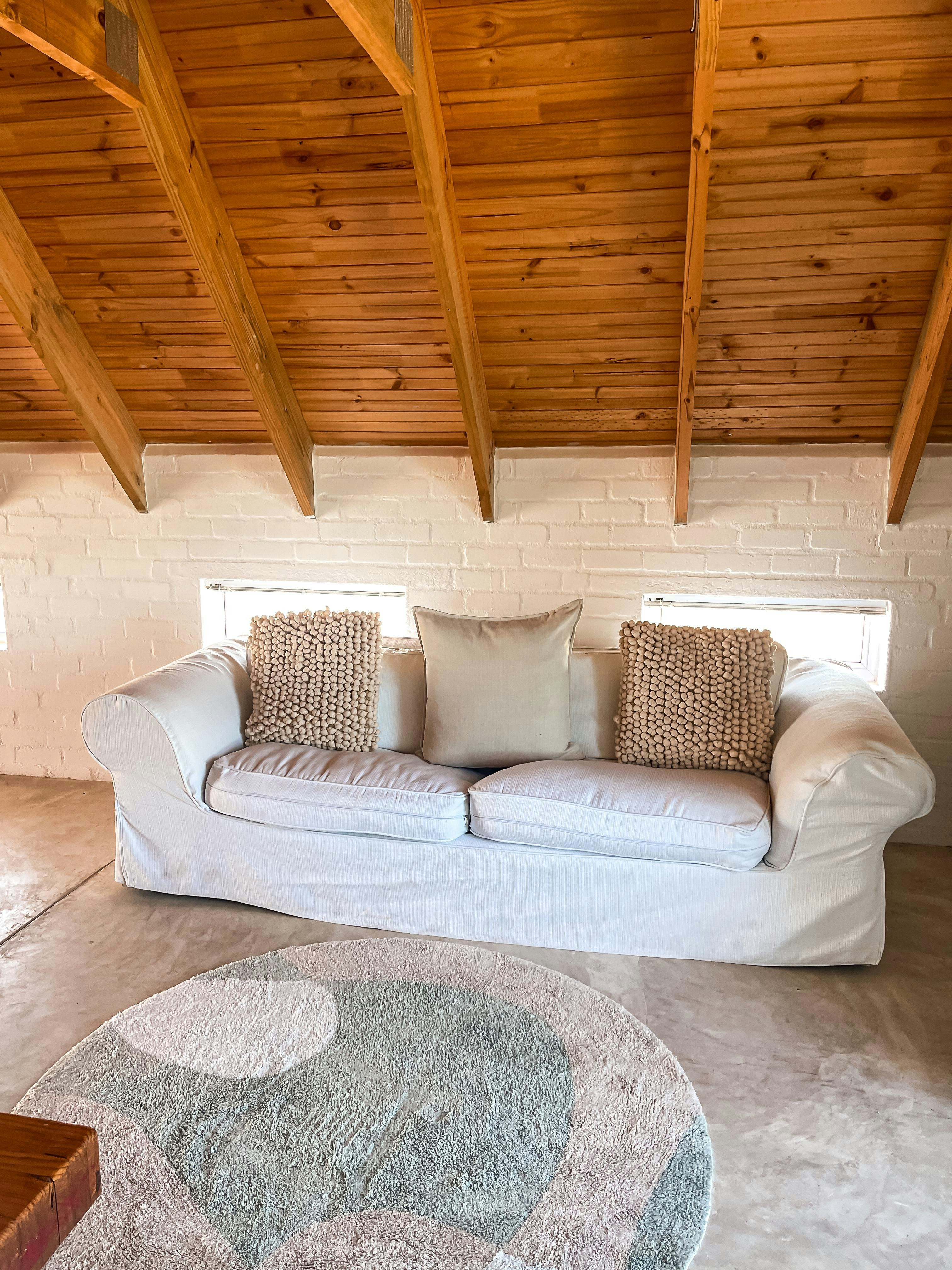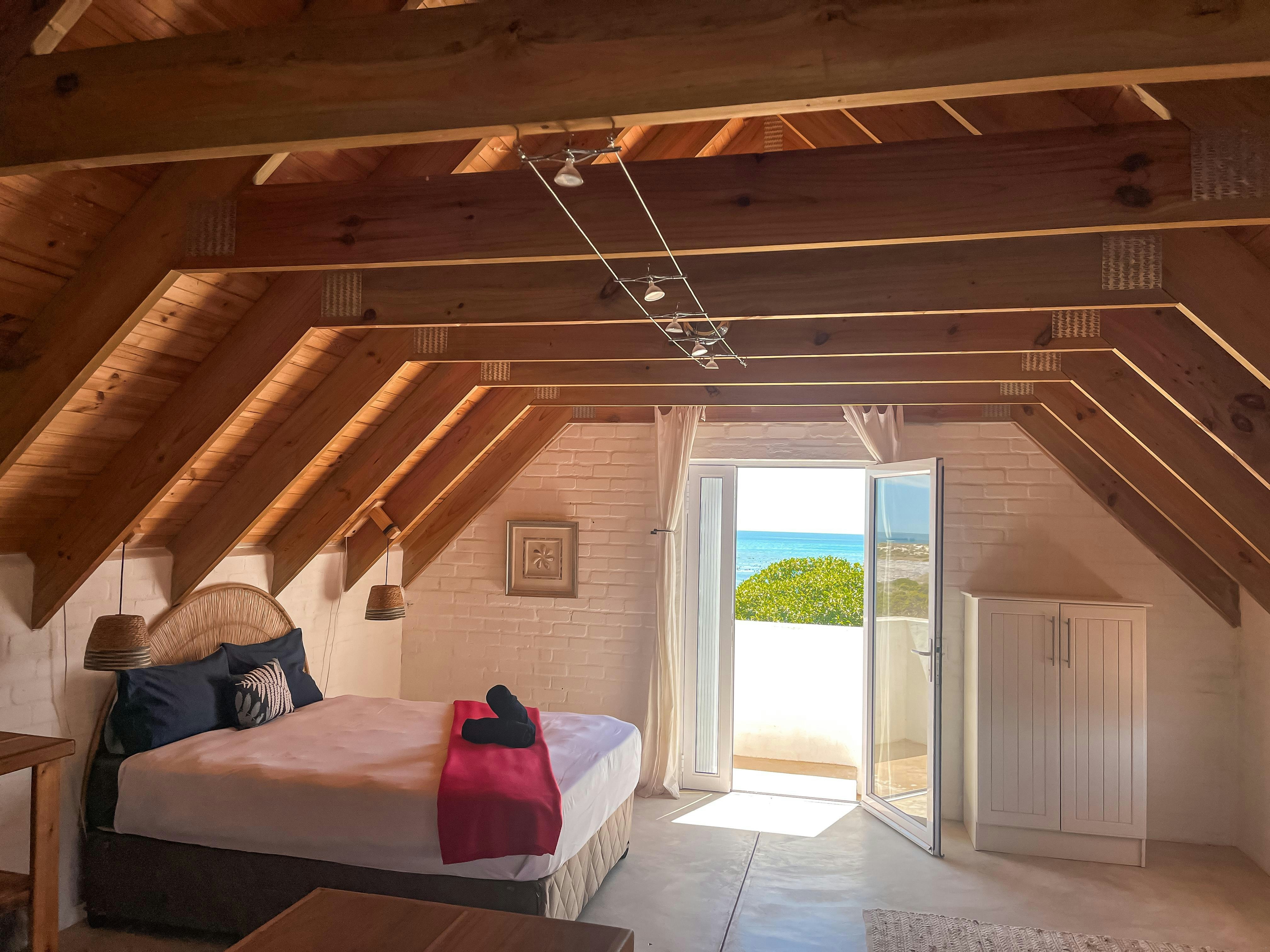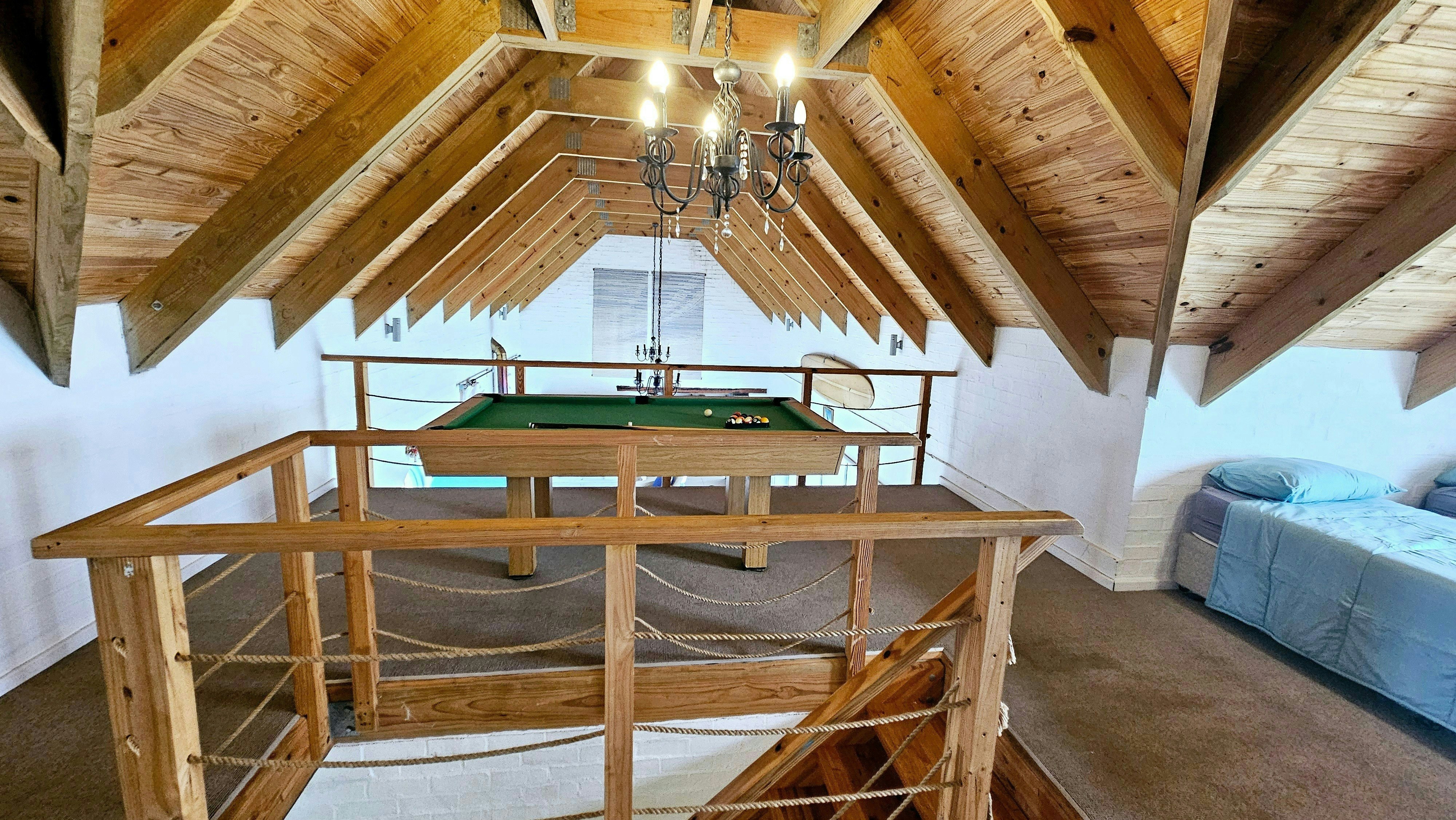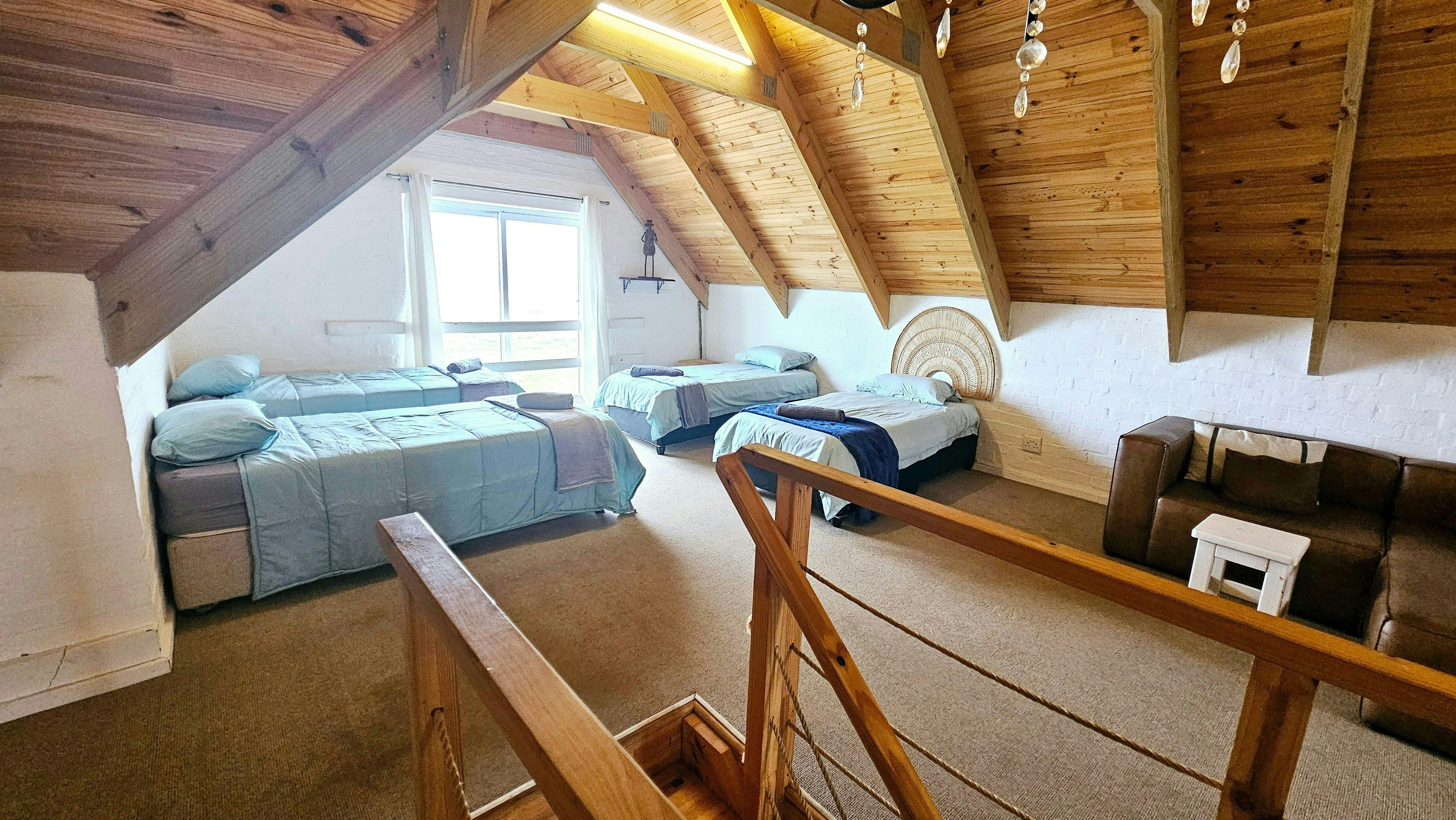 Dié eiendom bied slaapplek aan tot 12 gaste en beskik oor 4 slaapkamers en 3 badkamers. Drie van die slaapkamers is ingerig met koningingrootte-beddens, terwyl slaapkamer 3 'n koningingrootte-bed en 2 enkelbeddens het, en die oop solderarea het 4 enkelbeddens. Drie van die slaapkamers het en suite-badkamers, elk met storte en toilette. Linne word voorsien, maar gaste moet hul eie handdoeke en strandhanddoeke saambring. Die oopplan-leefarea sluit 'n kombuis in wat toegerus is met 'n stoof, oond, mikrogolf, ketel en eetgerei. Die ruim sitkamer en eetarea bied gemaklike sitplek vir ontspanning en eet, met 'n ronde tafel in die kombuis en 'n TV in die sitkamer. Boonop spog die eiendom met 'n patio-area met buitesitplek, insluitend 'n draagbare en ingeboude braai, asook 'n vuurput vir gebruik op koeler dae.
