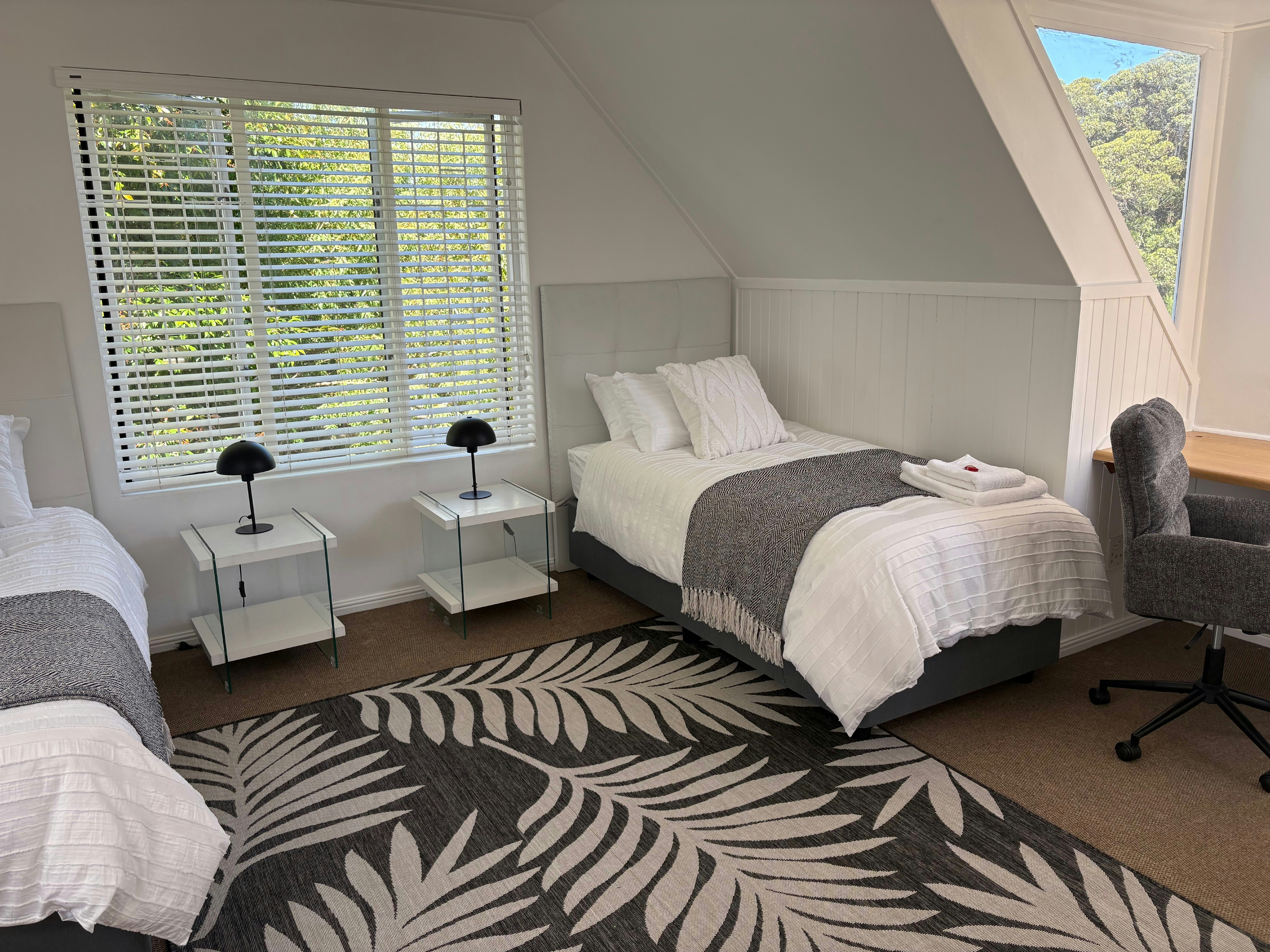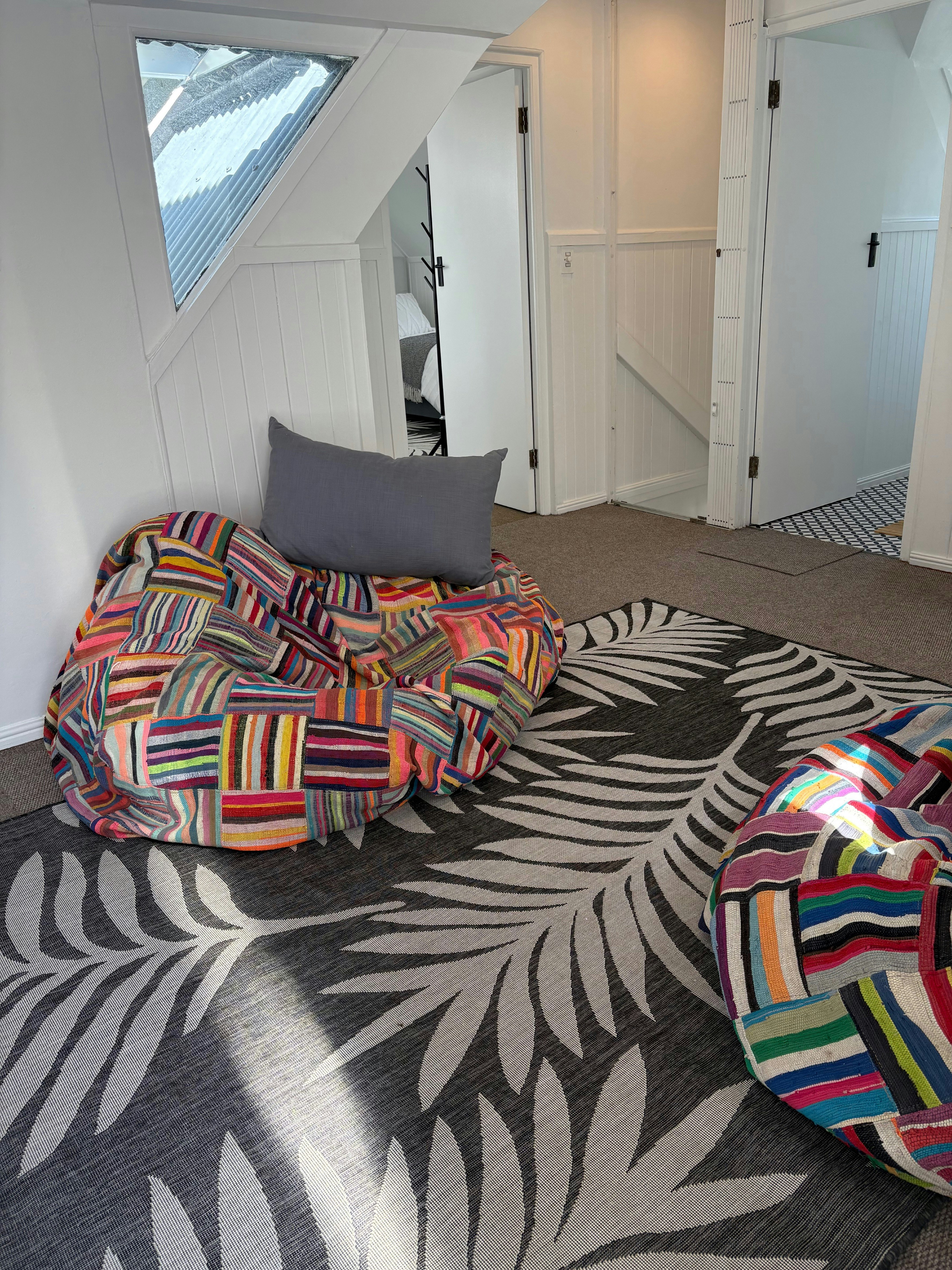 The house comprises 2 river-facing bedrooms upstairs; the main bedroom is furnished with a queen-size bed and an en-suite bathroom fitted with a shower, toilet, and basin. The second bedroom is furnished with 2 single beds and a separate bathroom fitted with a shower, toilet, and basin. There is a pajama lounge upstairs where the children can enjoy a movie or a game night. The third bedroom is located downstairs and is furnished with a double bed and a separate bathroom fitted with a shower, toilet, and basin.