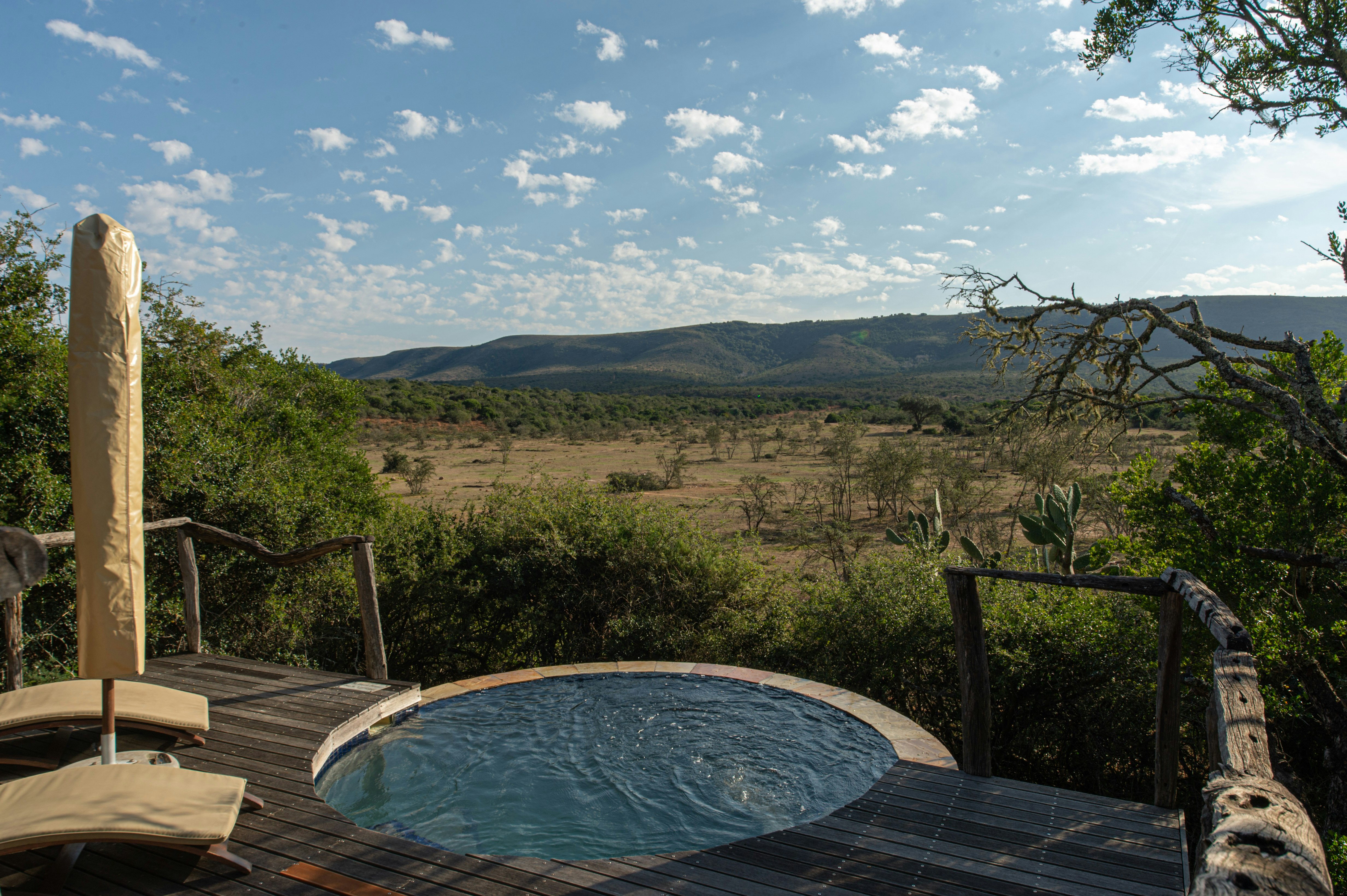 The lodge offers African fusion cuisine with an Eastern Cape flair, complemented by a superb selection of local wines from the Director's Cellar. Guests can enjoy the Soul Spa or a workout in the glass-enclosed gym, and explore the reserve in custom land rovers or on guided walking safaris.