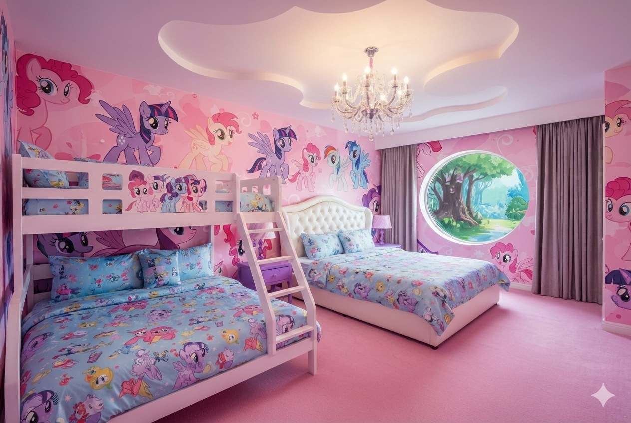 This property boasts with a unique theme, if unicorns are your thing, you will want to visit here. The theme is prevalent in most of the rooms and has small details like unicorn themed card games to unicorn themed reading material.