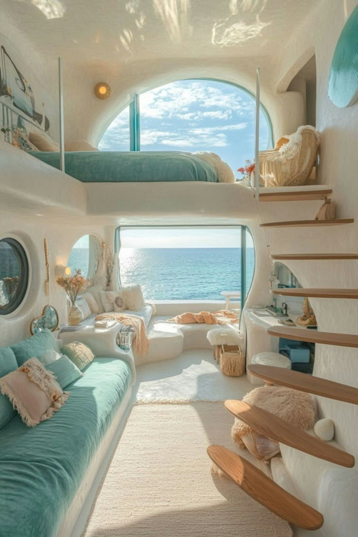 Accommodation is available in 3 guest suites which can accommodate adults, and are each individually styled and furnished. The rooms feature comfortable beds, soft duvets, crisp linen, and private entrances. Each room contains an en-suite bathroom, a fully equipped kitchen, and access to the sea itself.