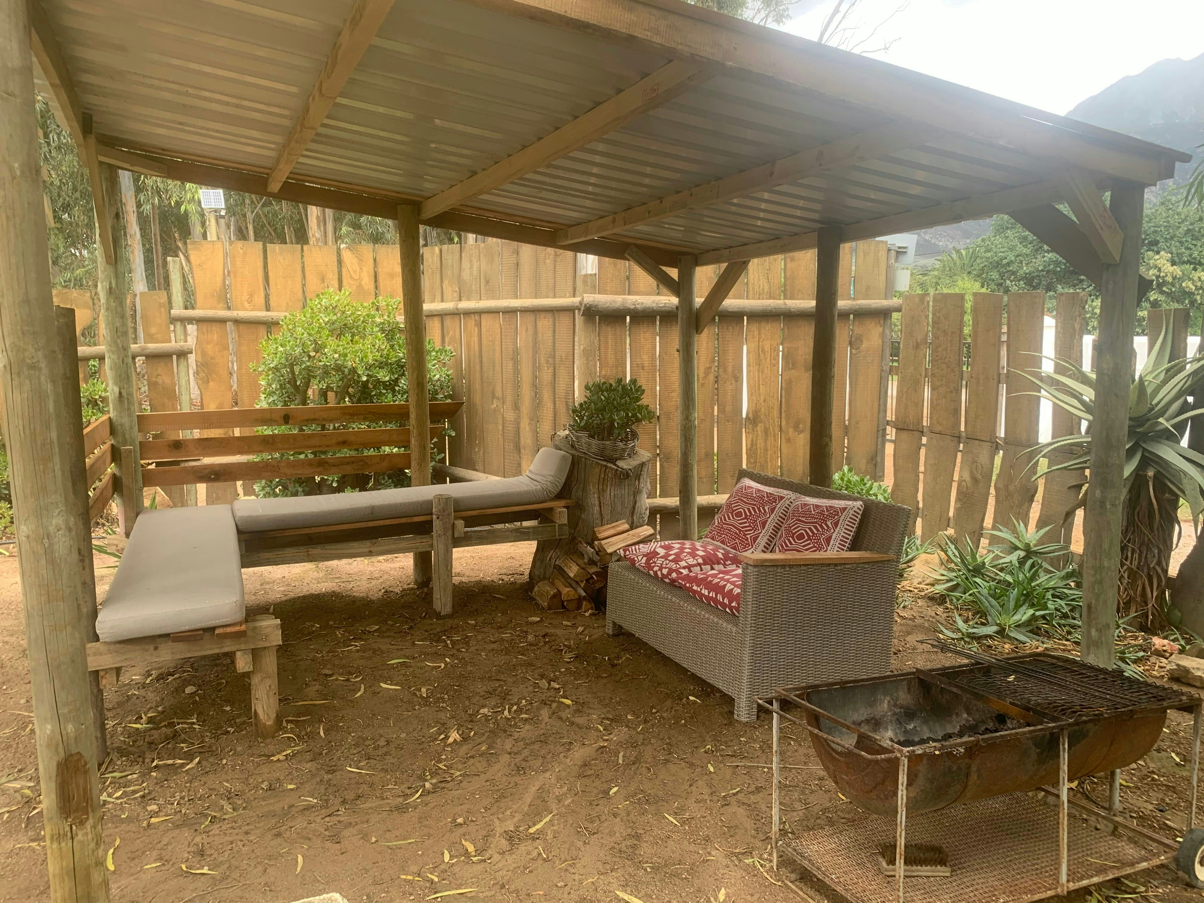 Both the bathrooms includes towels and bathrobes. There is a undercover woodfired braai with a 6-seater dining table.