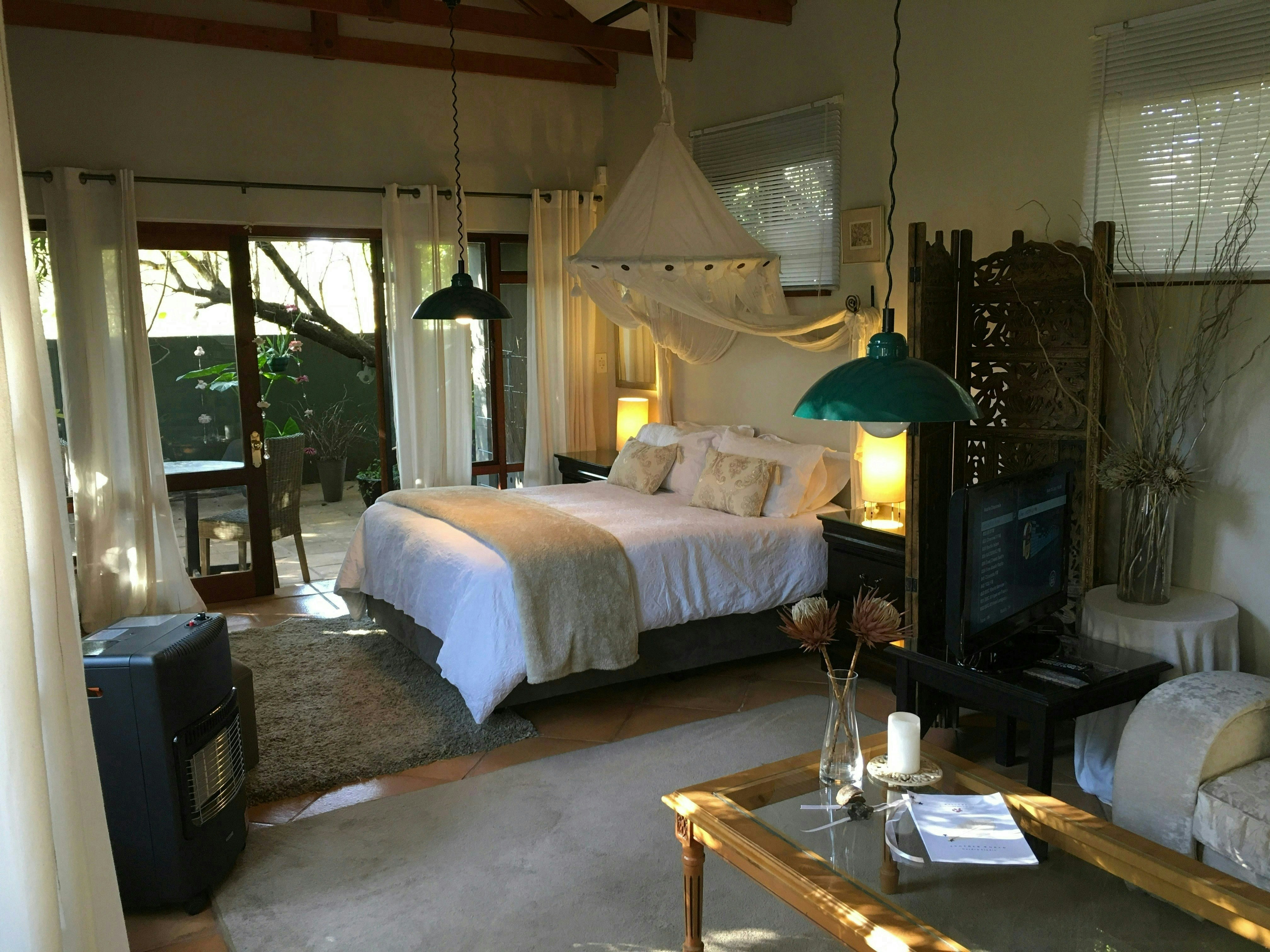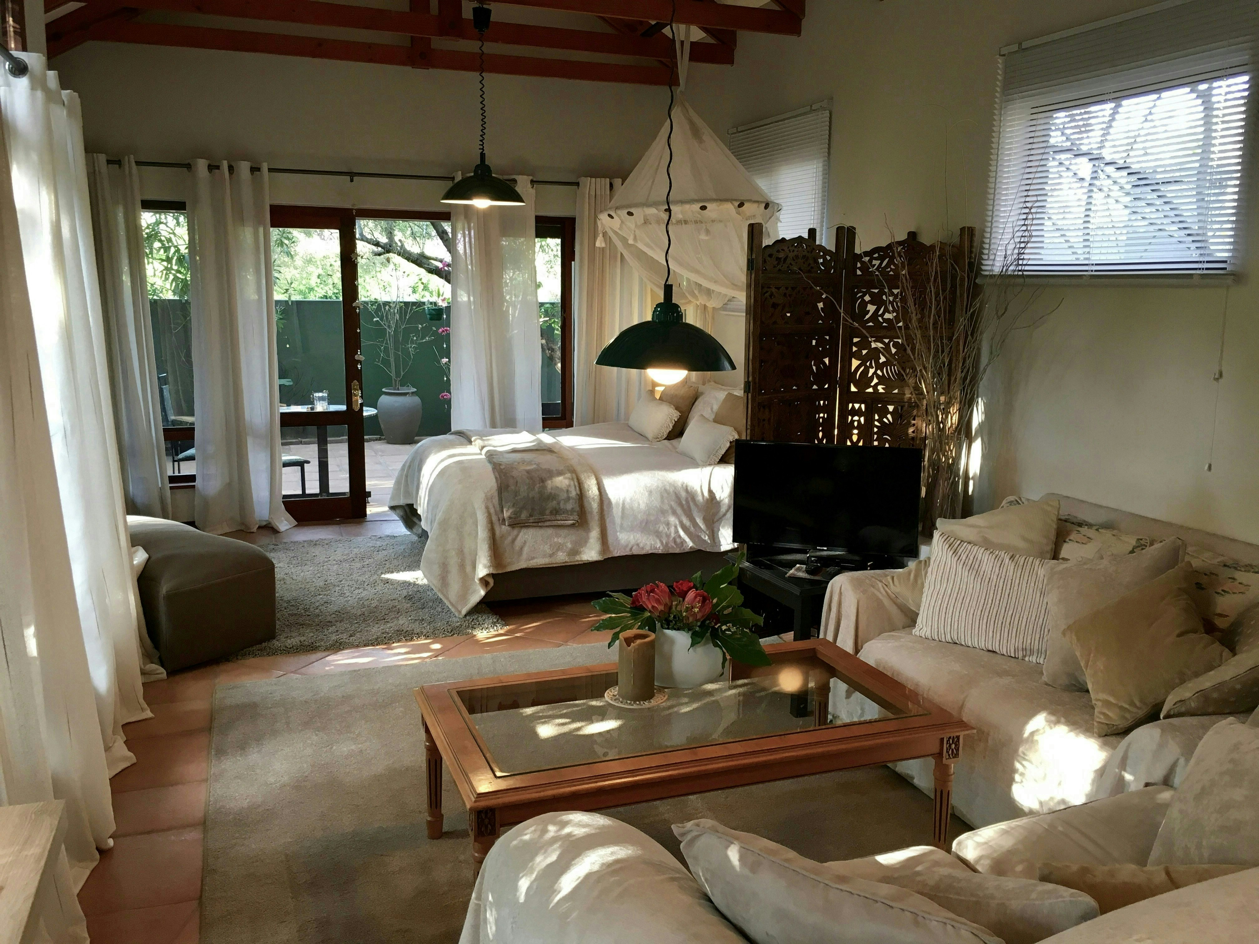 This self-catering cottage can accommodate 2 guests at a time and comprises a beautiful garden-view bedroom furnished with a king-size bed and a relaxing lounge area. It includes an en-suite bathroom fitted with a bath and includes underfloor heating. Linen, bath towels, and toiletries are provided.