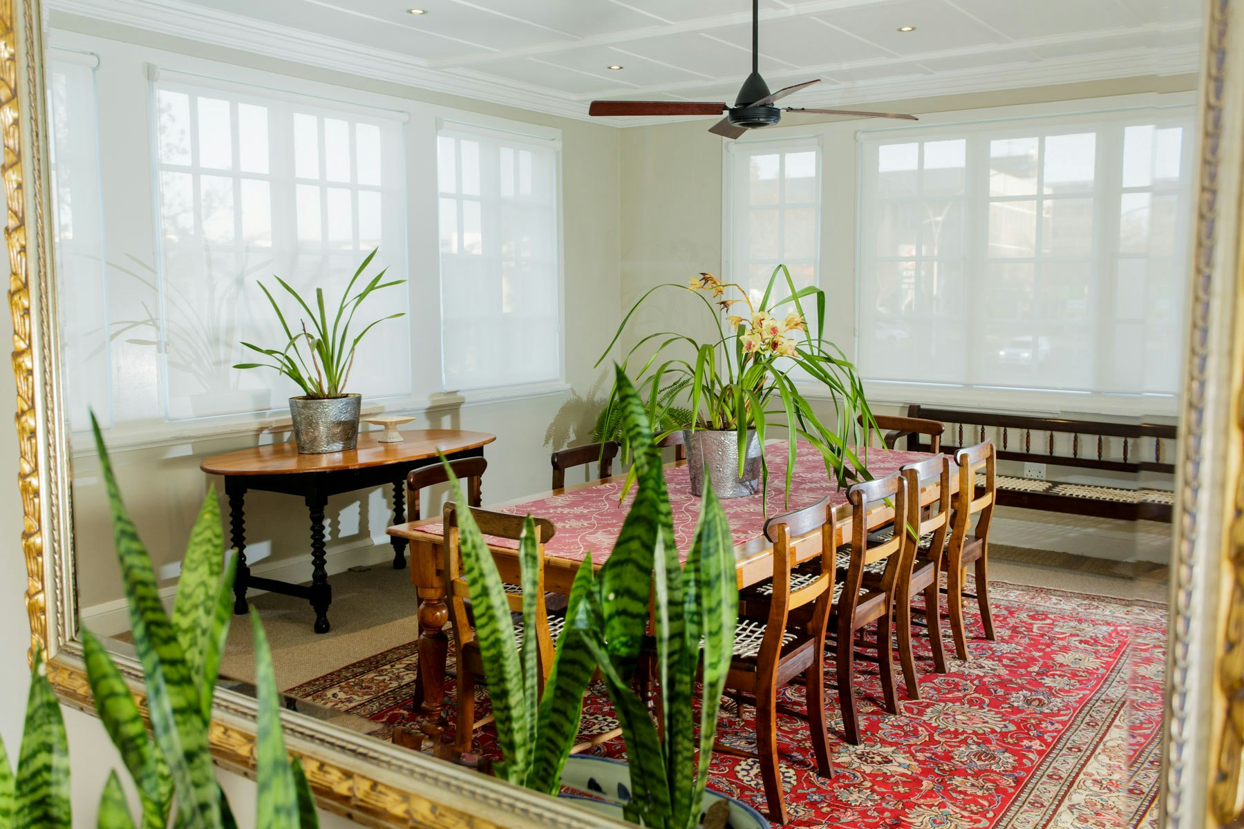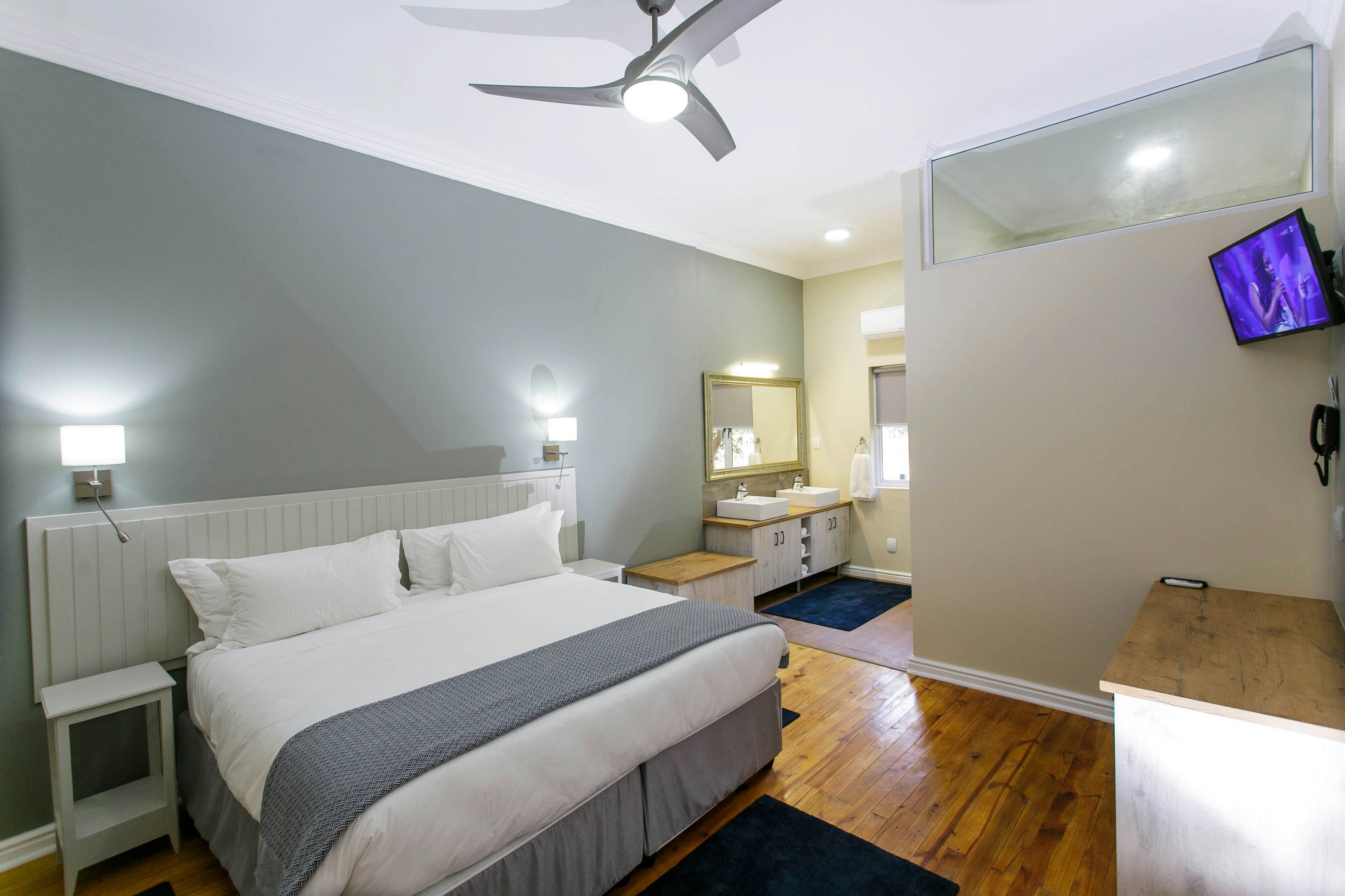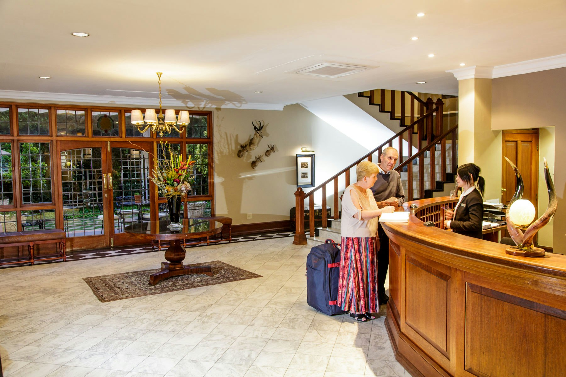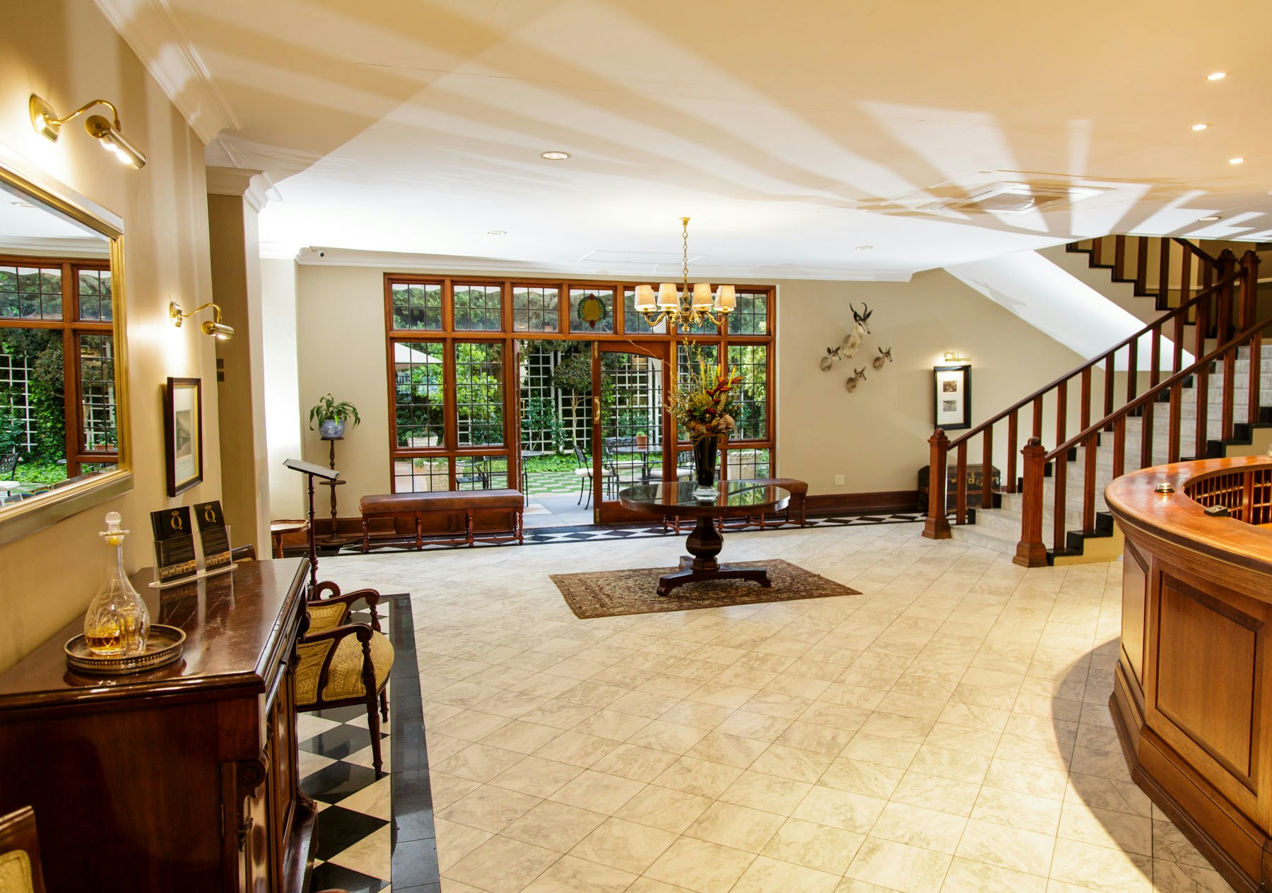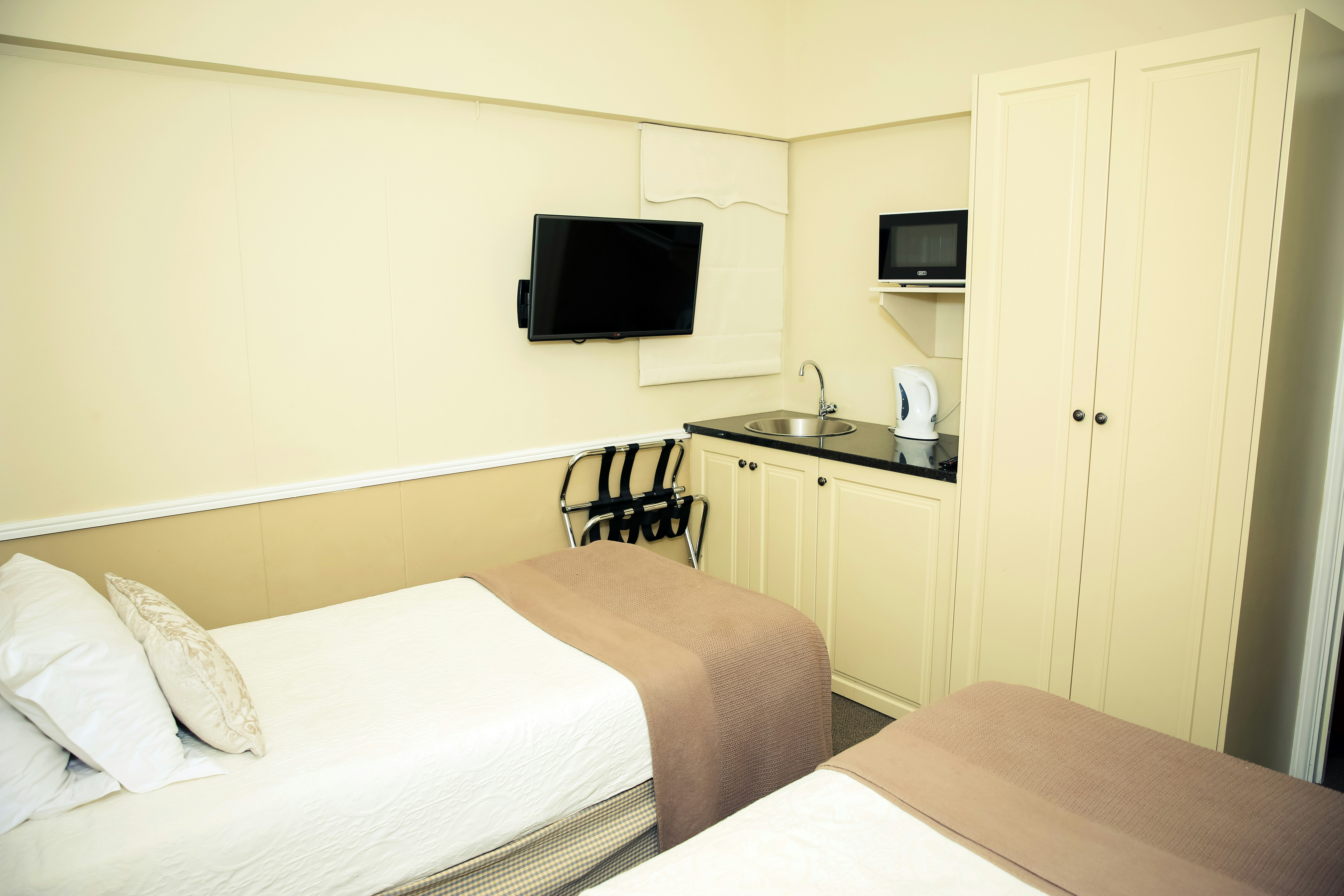 The air-conditioned rooms are equipped with TV's with selected DStv channels, Wi-Fi access, clock radios, direct dial telephones, safes for valuables, desks, as well as tea- and coffee-making facilities. Two of the rooms, the Queen’s Residence and the King’s Residence, are also equipped for self-catering and have private entrances. Breakfast in the Hotel is not included for Residence guests.