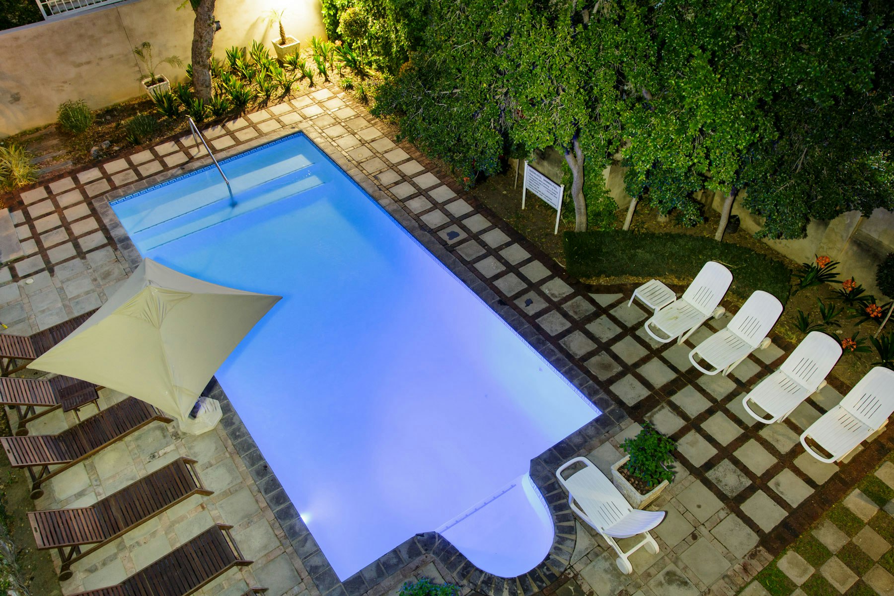 Guests can relax in the communal lounge or lovely garden, or cool down in the swimming pool. The hotel has security and ample parking is available.