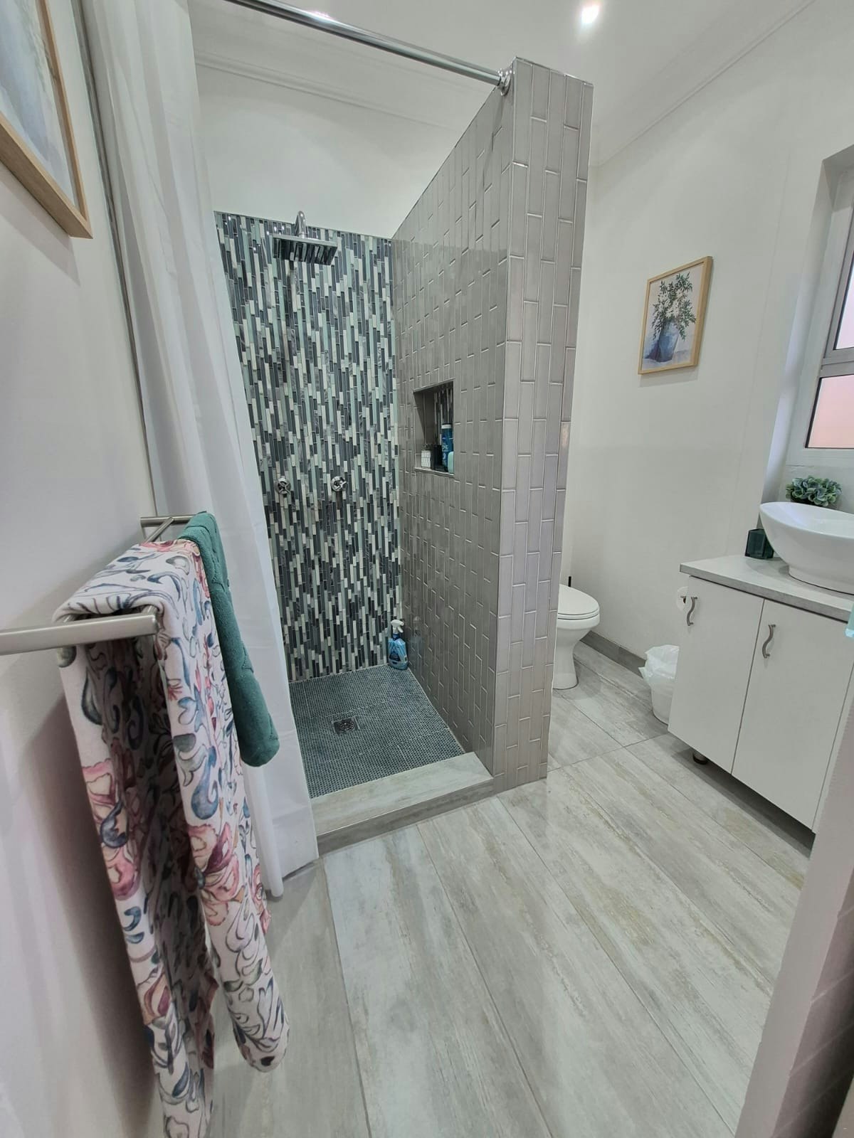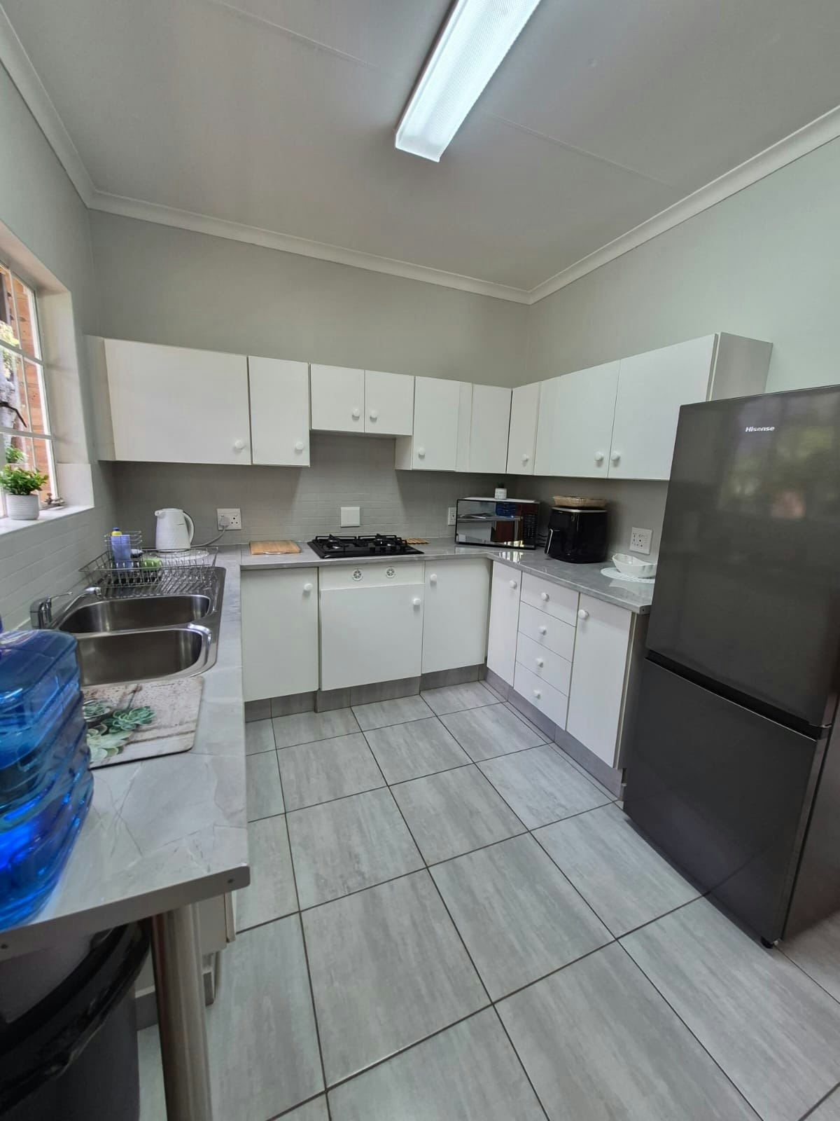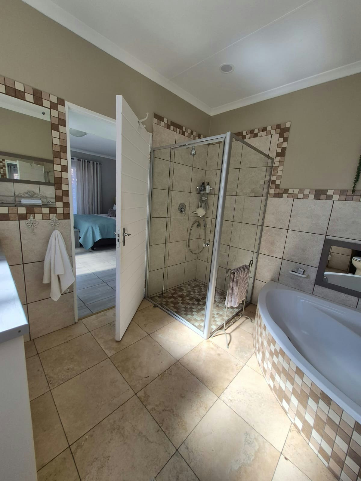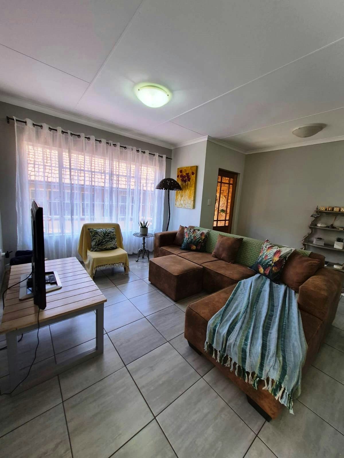Accommodates 3 guests (2 Adults and 1 child under 10). This homely unit is very spacious with an open-plan lounge, dining room and a fully equipped kitchen with a fridge, kettle, gas stove, microwave, and air fryer. We provide tea, coffee, sugar, milk, rusks and bottled water. Enjoy watching Netflix & YouTube on a big screen Smart TV in the lounge. This unit also offers a hairdryer, steam iron, clothing steamer, washing machine, tumble dryer, heater and fan for guests who are staying a bit longer. The bedroom overlooking the swimming pool and is furnished with a king-size bed (2 single beds placed together but can be separated if required). We can accommodate a younger child in the lounge by adding an extra mattress and bedding or the child can sleep on the very comfortable L-shape couch. The ensuite bathroom is very spacious and is fitted with a bath and big shower. We provide shower gel & towels.