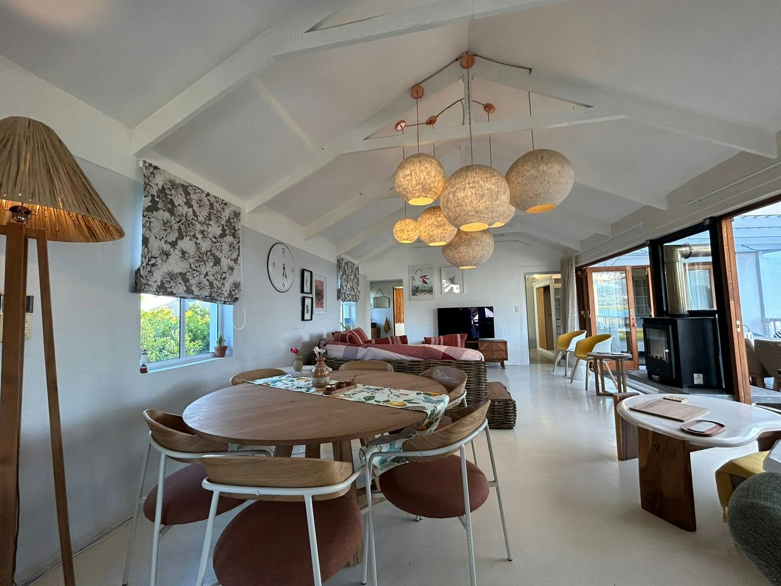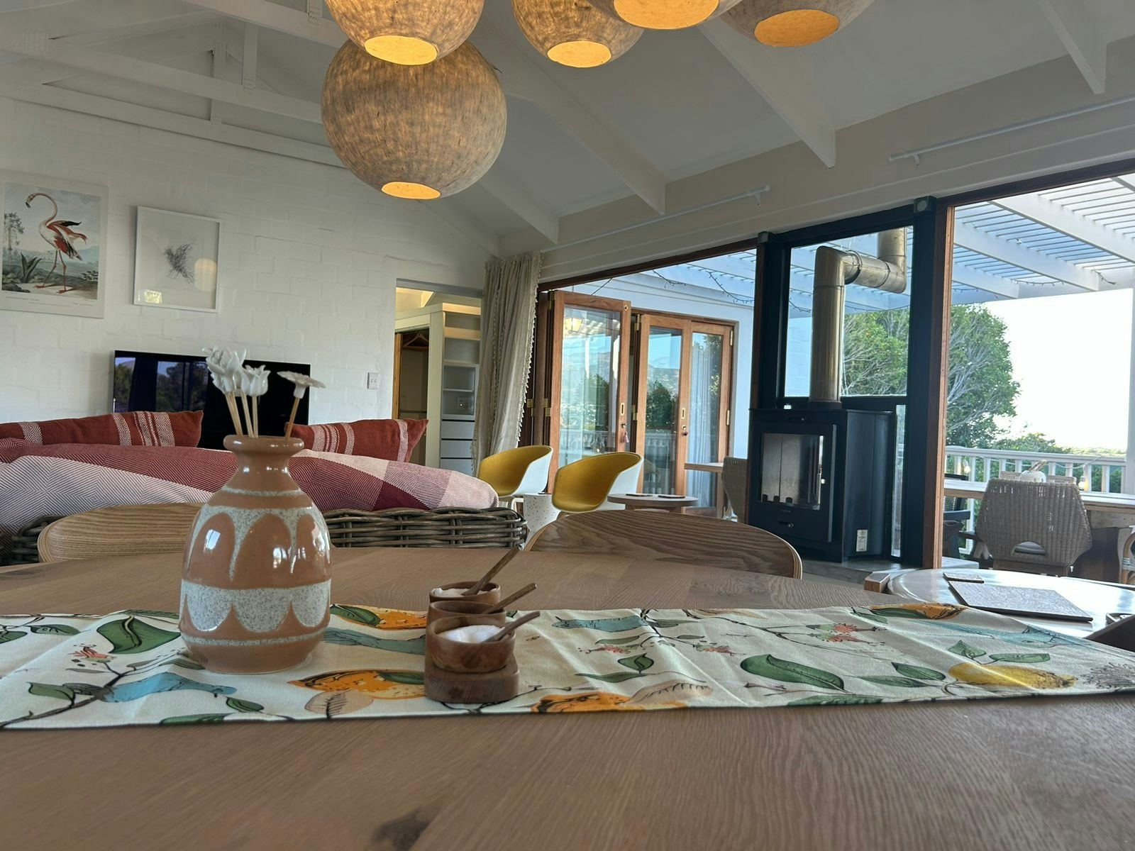 Large stacking doors lead to the deck and garden, which are furnished with outdoor seating. There is a plunge pool, as well as a pizza oven. The home is ideally situated for nature lovers. Guests can wake to the calls of the fish eagle, enjoy long walks along the vlei, and spot the abundant birdlife or even an otter. Pink flamingos are a regular sight. For a local experience, Imhoff’s Farm is only a one-minute drive away, offering stunning views, excellent food and fun activities for children.