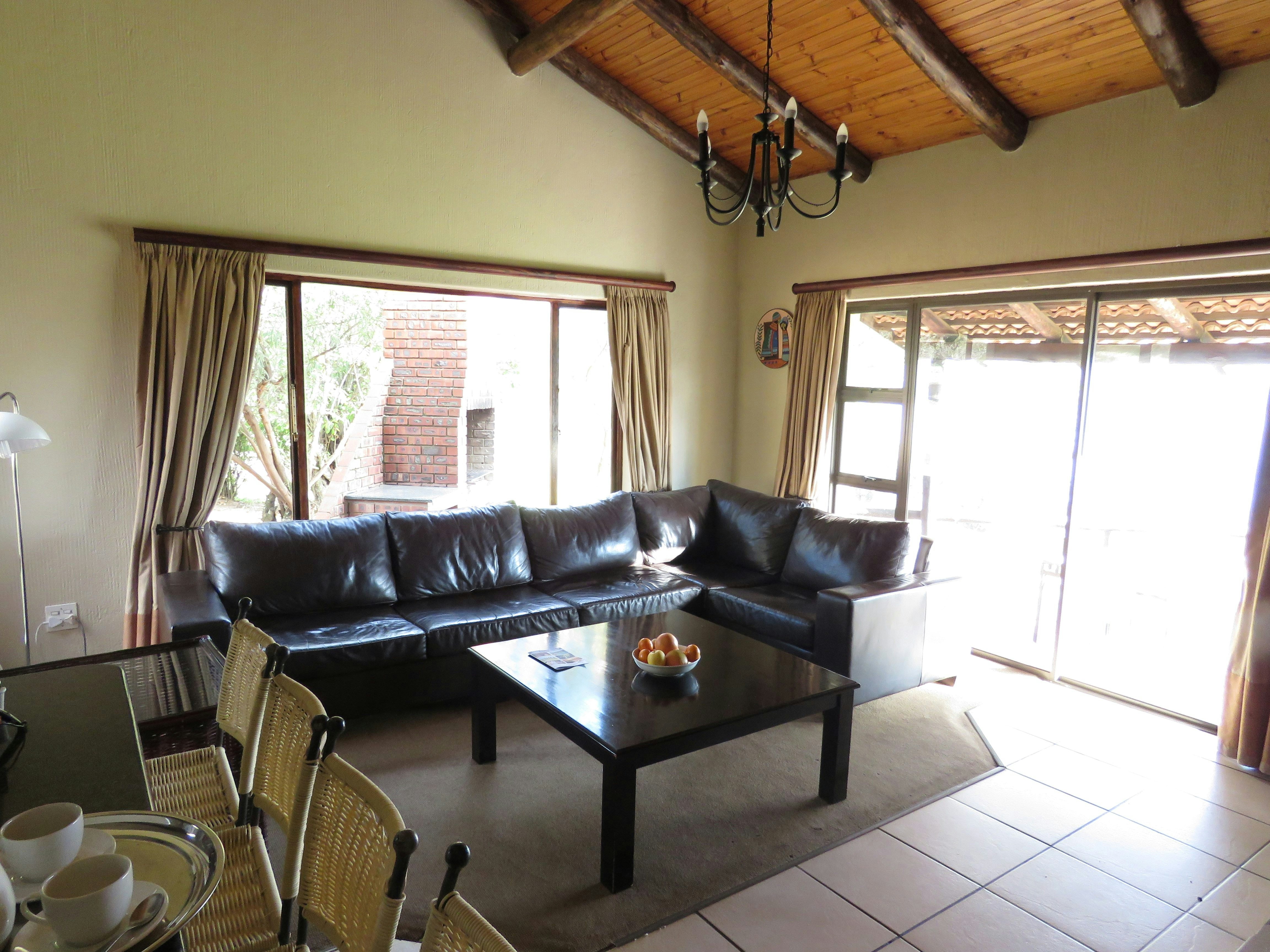 The kitchen is well-equipped for self-catering and includes a stove and oven, fridge-freezer, microwave, and cutlery and crockery. Each chalet has a patio with braai facilities. The chalets are serviced daily.