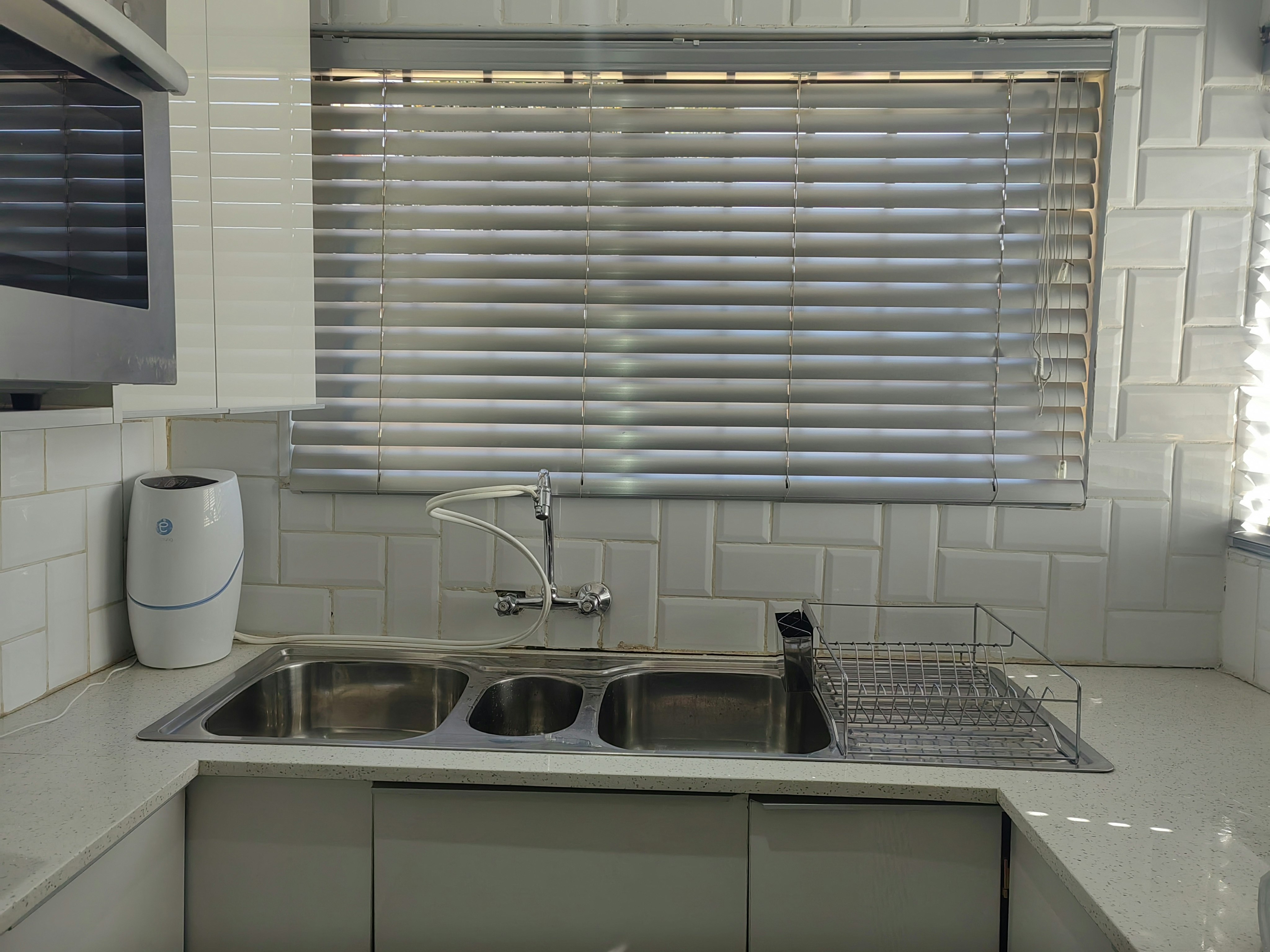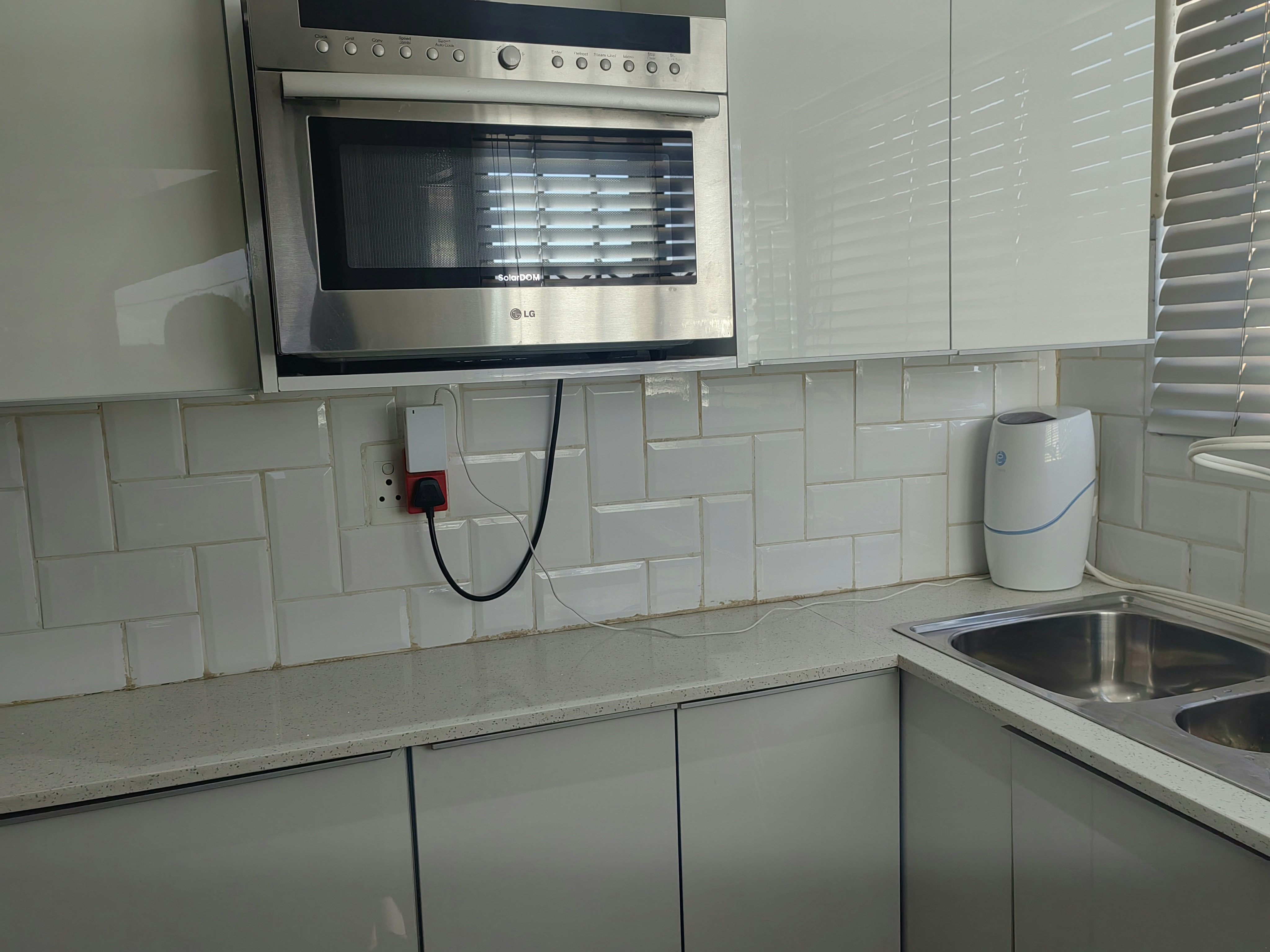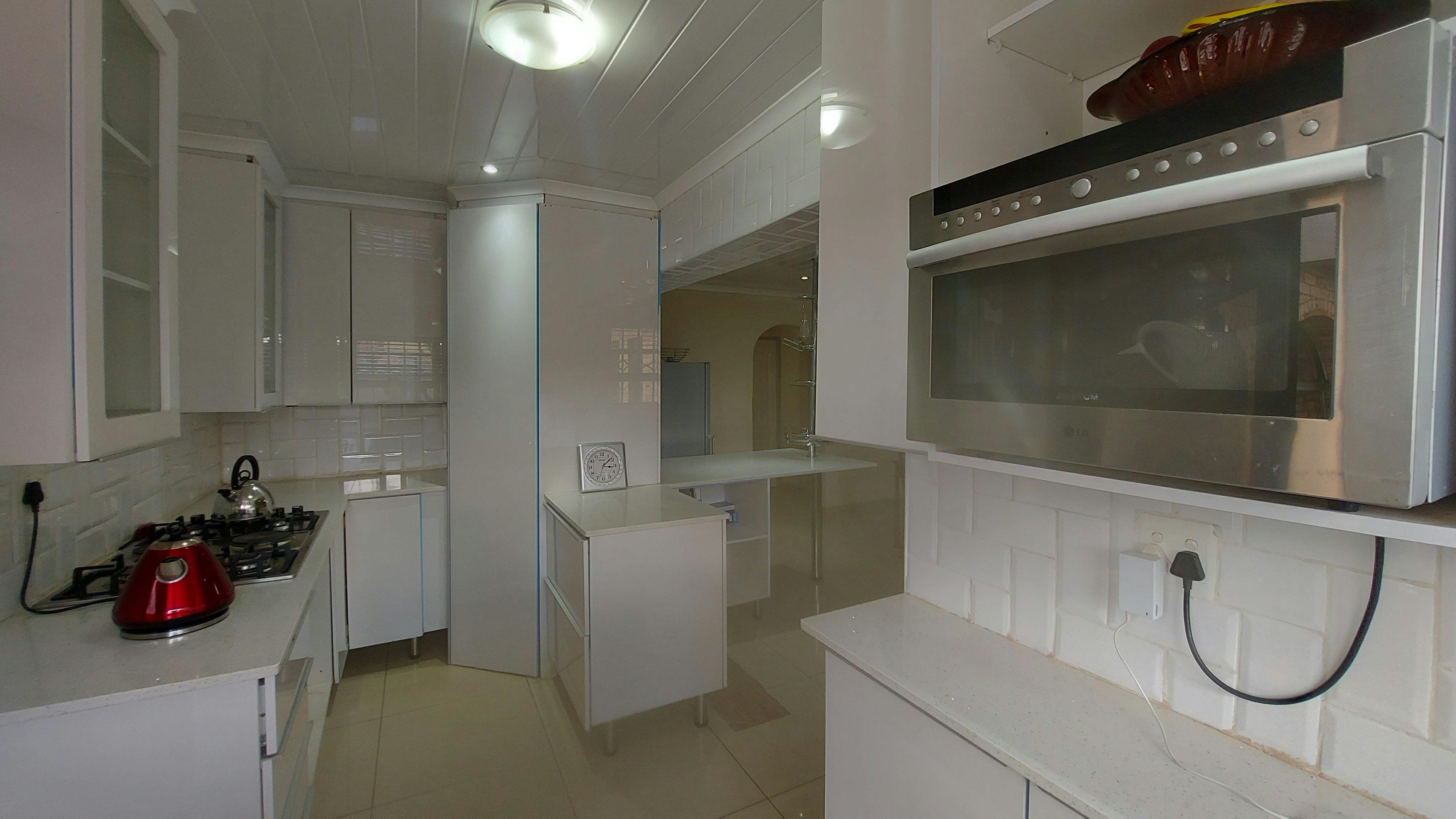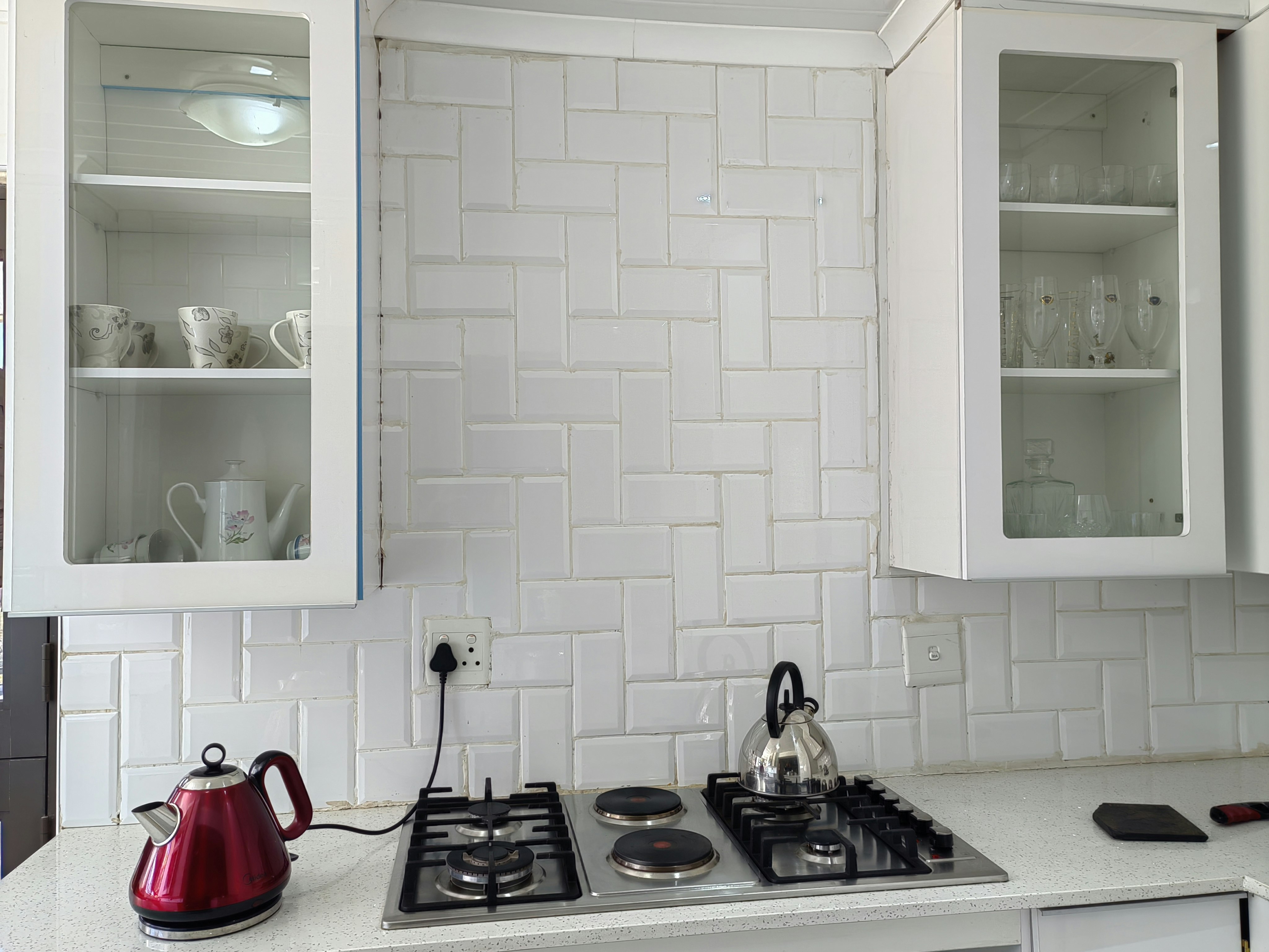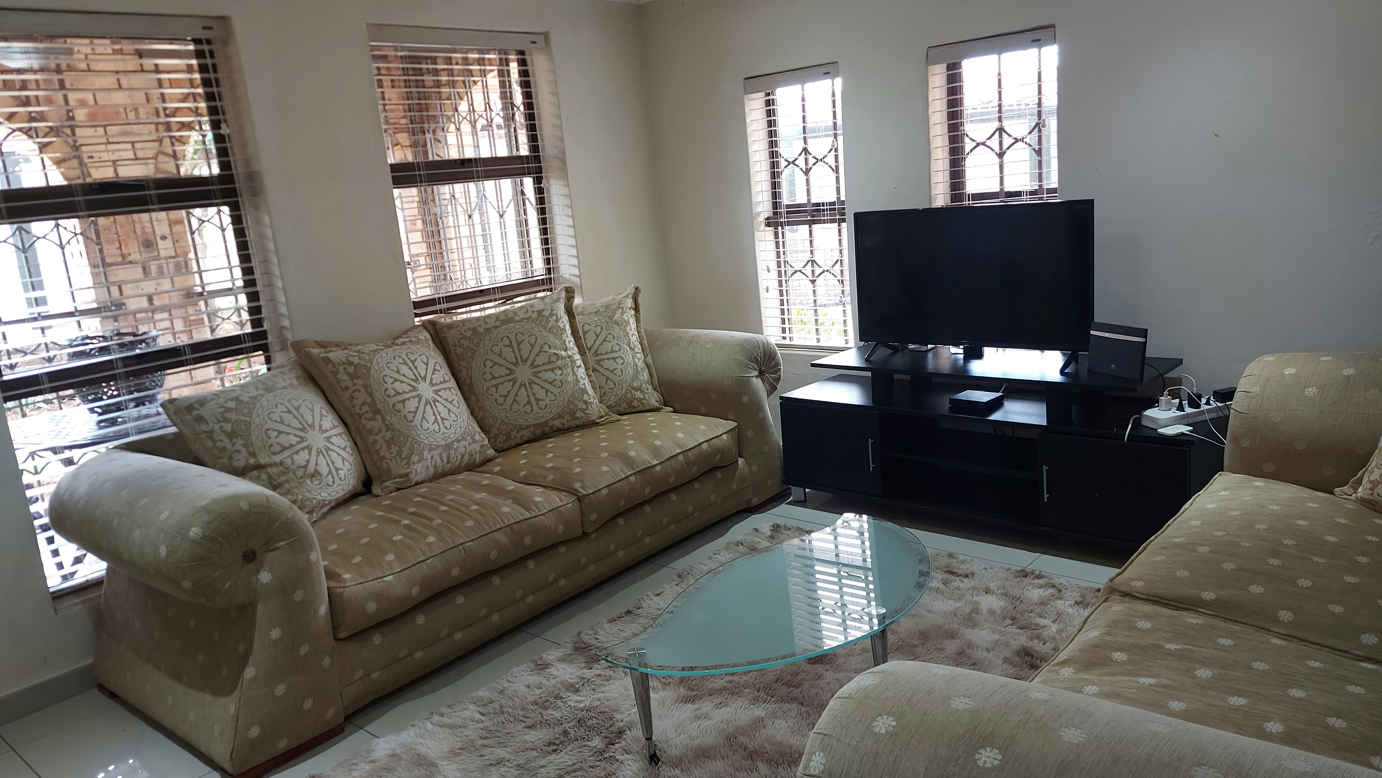 The kitchen is equipped with a fridge-freezer, gas stove, microwave, basic cutlery, crockery, and tea- and coffee-making facilities. The kitchen leads to an 8-seater dining table with chairs and further flows to the living room. The living room is furnished with comfortable couches and has a TV. Free Wi-Fi is available throughout the house.