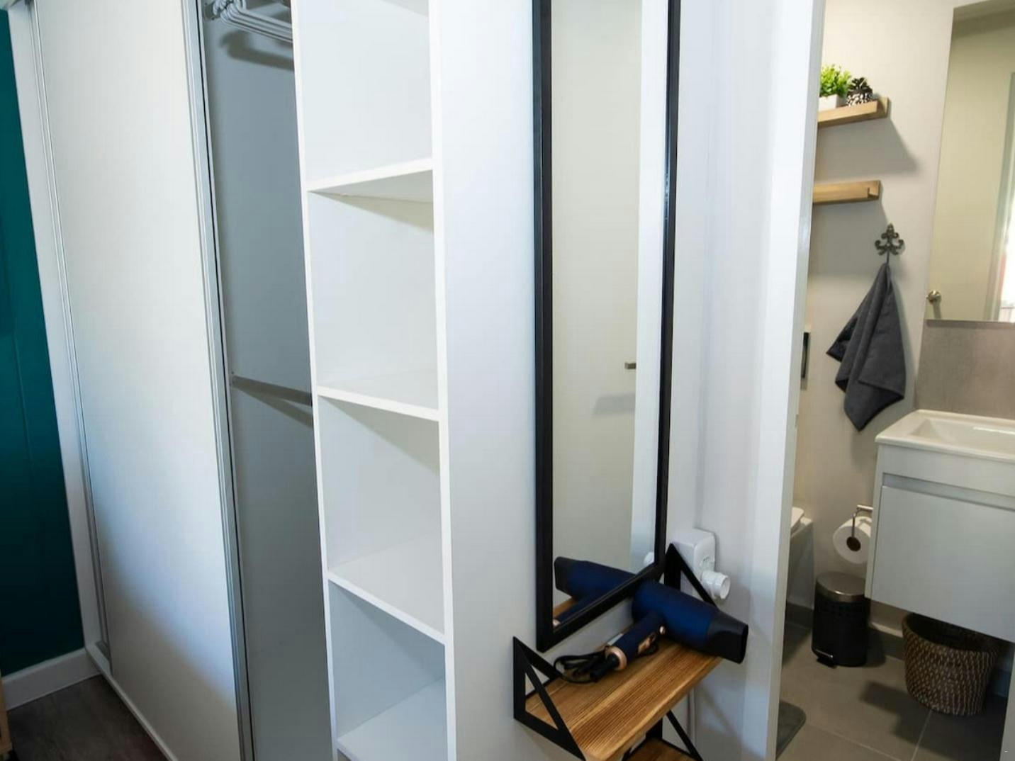 The apartment comprises 2 bedrooms and 2 bathrooms, accommodating 4 guests. The first bedroom is furnished with a queen-size bed and features an en-suite bathroom fitted with a shower. The second bedroom is furnished with a double bed, and the guest bathroom is fitted with both a bath and a shower.