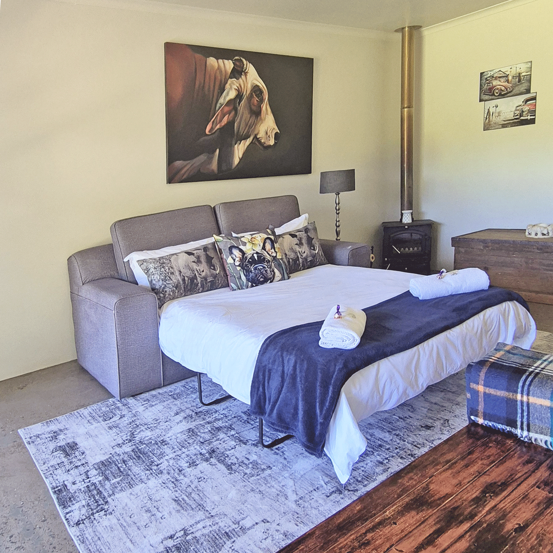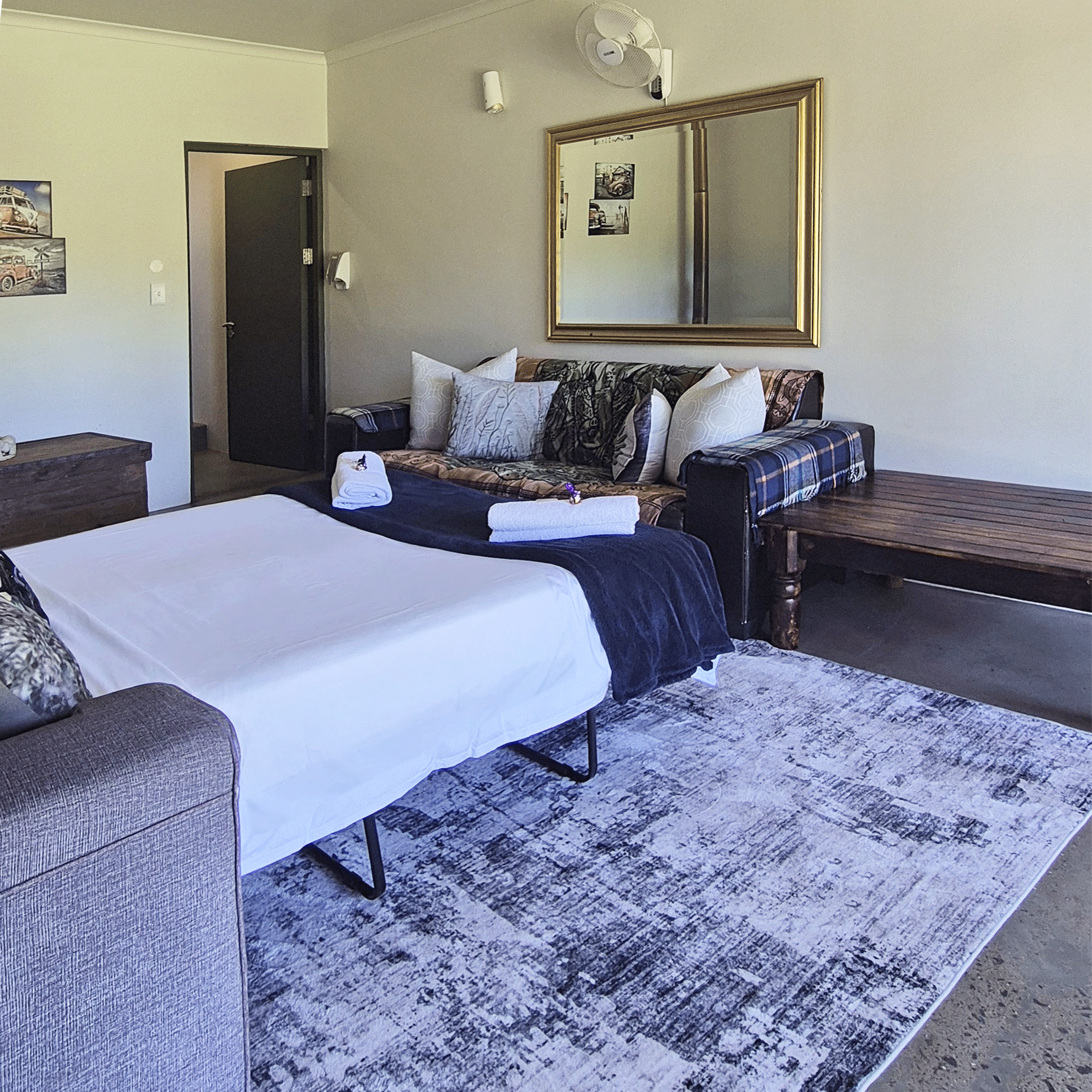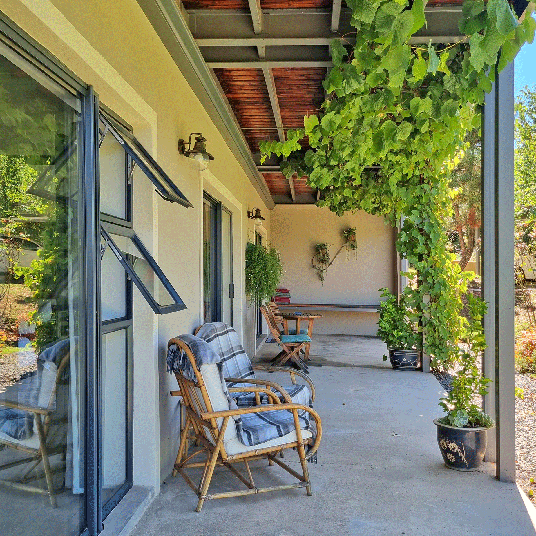 The accommodation is situated a mere 950 m from the vibe of the town centre but secluded enough to offer guests a quiet retreat (note: we are based on a relatively busy exit road, so there may be some vehicle noise).