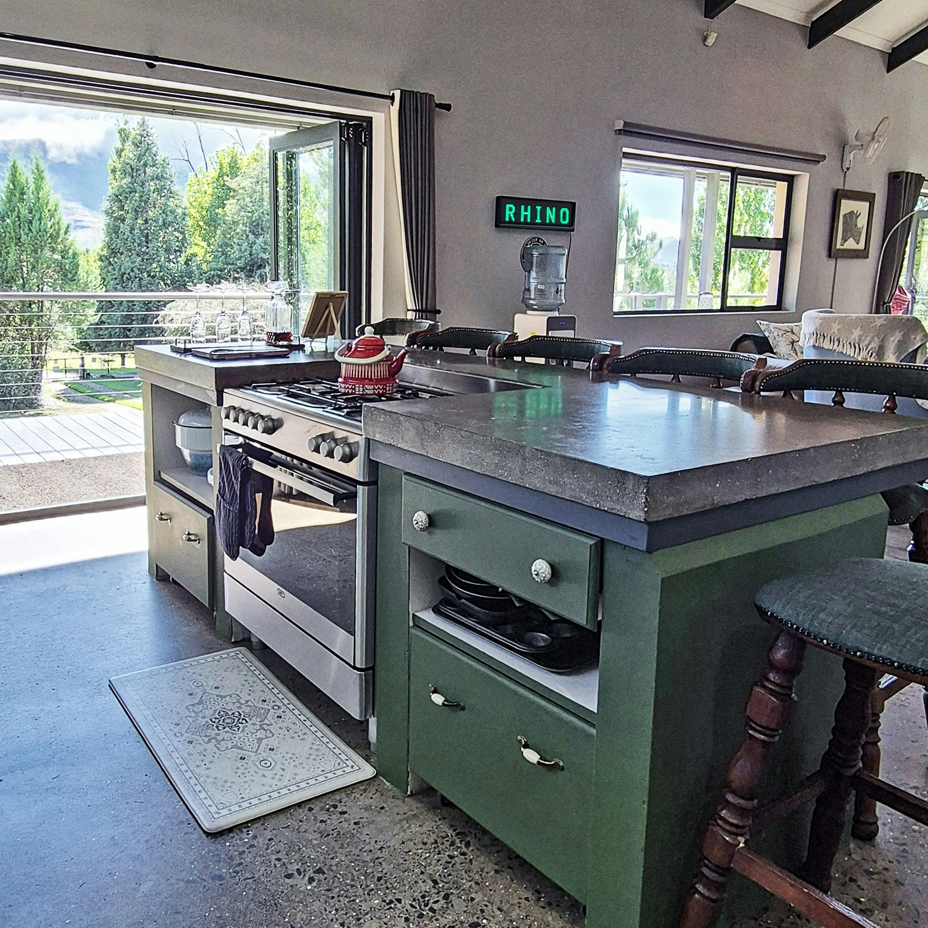 Rhino Retreat is situated in Clarens, just 1 km from the town centre with various shops, restaurants, attractions, and activities. Accommodation is offered in a self-catering 8-sleeper house which comprises 2 bedrooms on the ground floor, and a downstairs lounge with a sleeper couch for 2.
