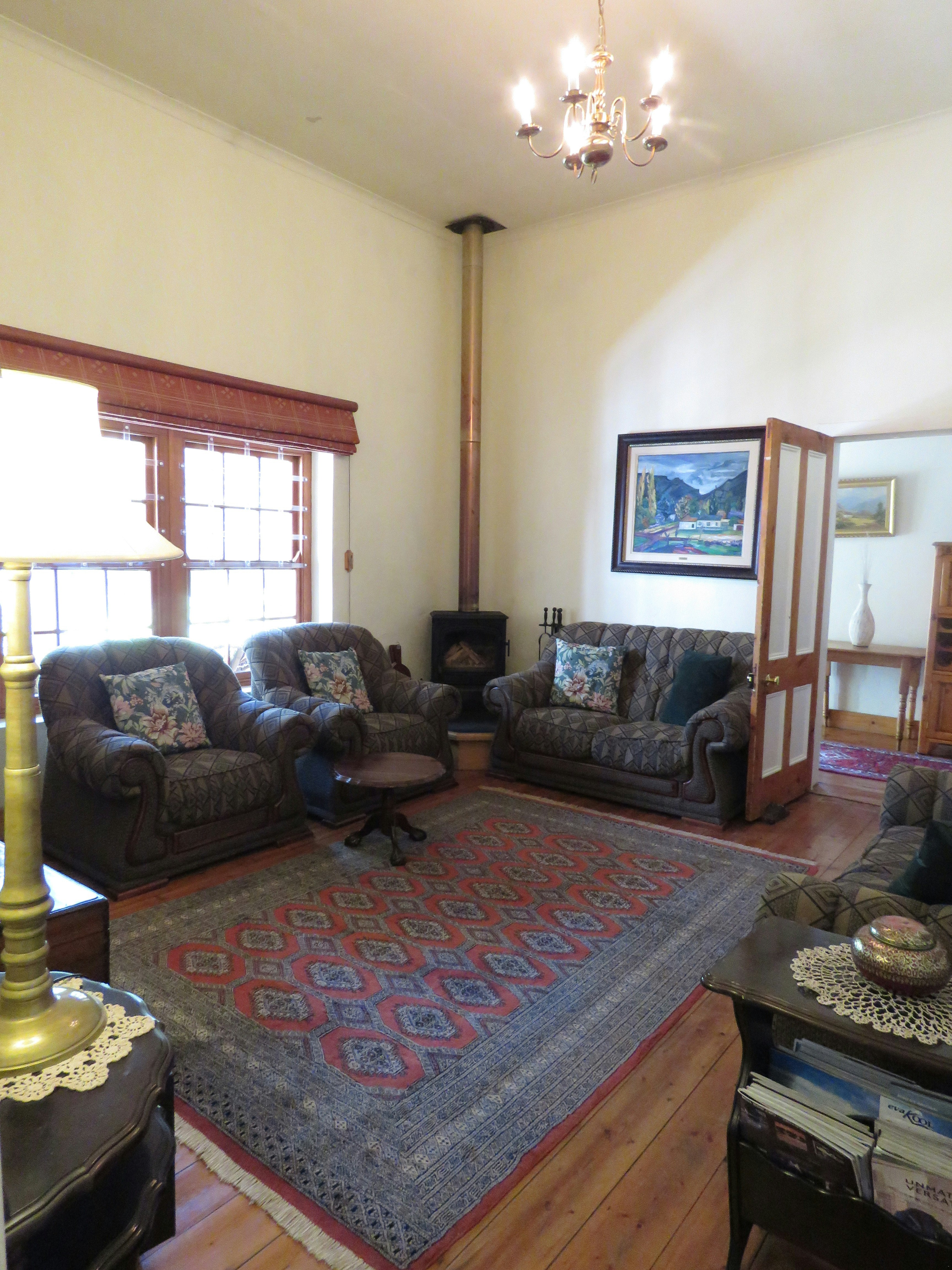Die oopplan-leefarea het gemaklike sitplek, 'n kaggel, 'n etenstafel, 'n binnebraai en 'n kombuis. Die kombuis is met 'n yskas-vrieskas, gasstoof, oond, mikrogolfoond en koffie- en teemaakgeriewe toegerus. WiFi is beskikbaar. Gaste kan op 'n stoep ontspan en die braaigeriewe gebruik. Parkeerplek is op die perseel beskikbaar, en die verblyf is omhein en troeteldiere is welkom indien vooraf gereël.