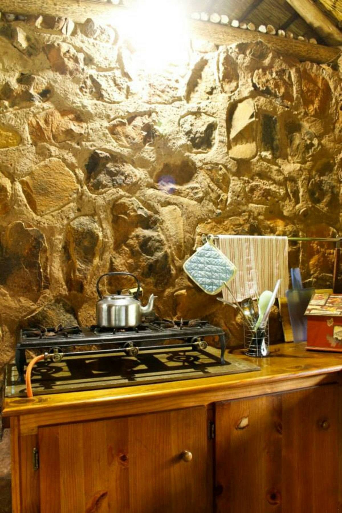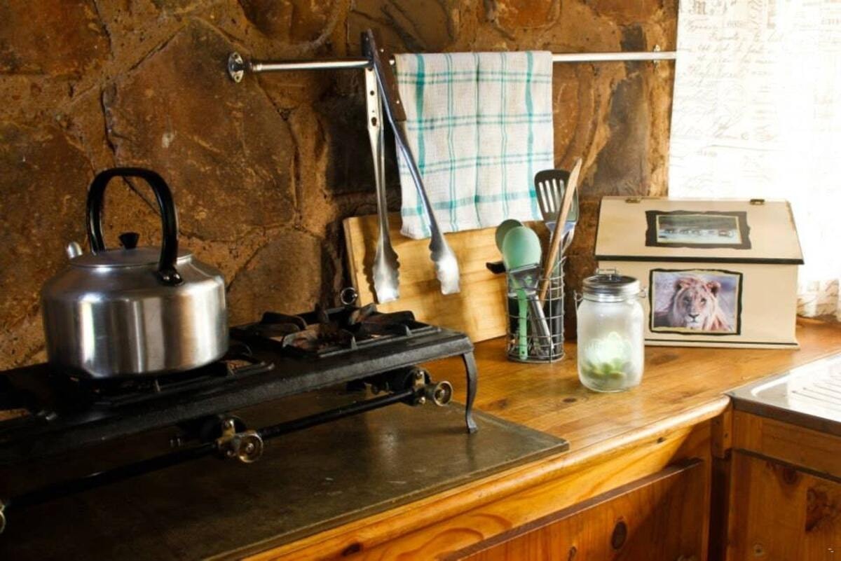 The chalets are privately positioned in the kloof, where the gentle murmuring of a mountain stream and rock pools will lull you to sleep every night. Please note we are an Eco lodge, therefore there are NO Eskom Power. All the appliances in our fully equipped chalets are powered by means of solar, battery or gas. There are no power point plugs in the chalets or camping sites. Please make sure your cellphone and laptop is fully charge before you arrive or bring along the gadgets for charging without Eskom power. If you are in a crisis we are always willing to help. You can bring your cellphone or laptop to the office and we will charge it for you without any extra costs.