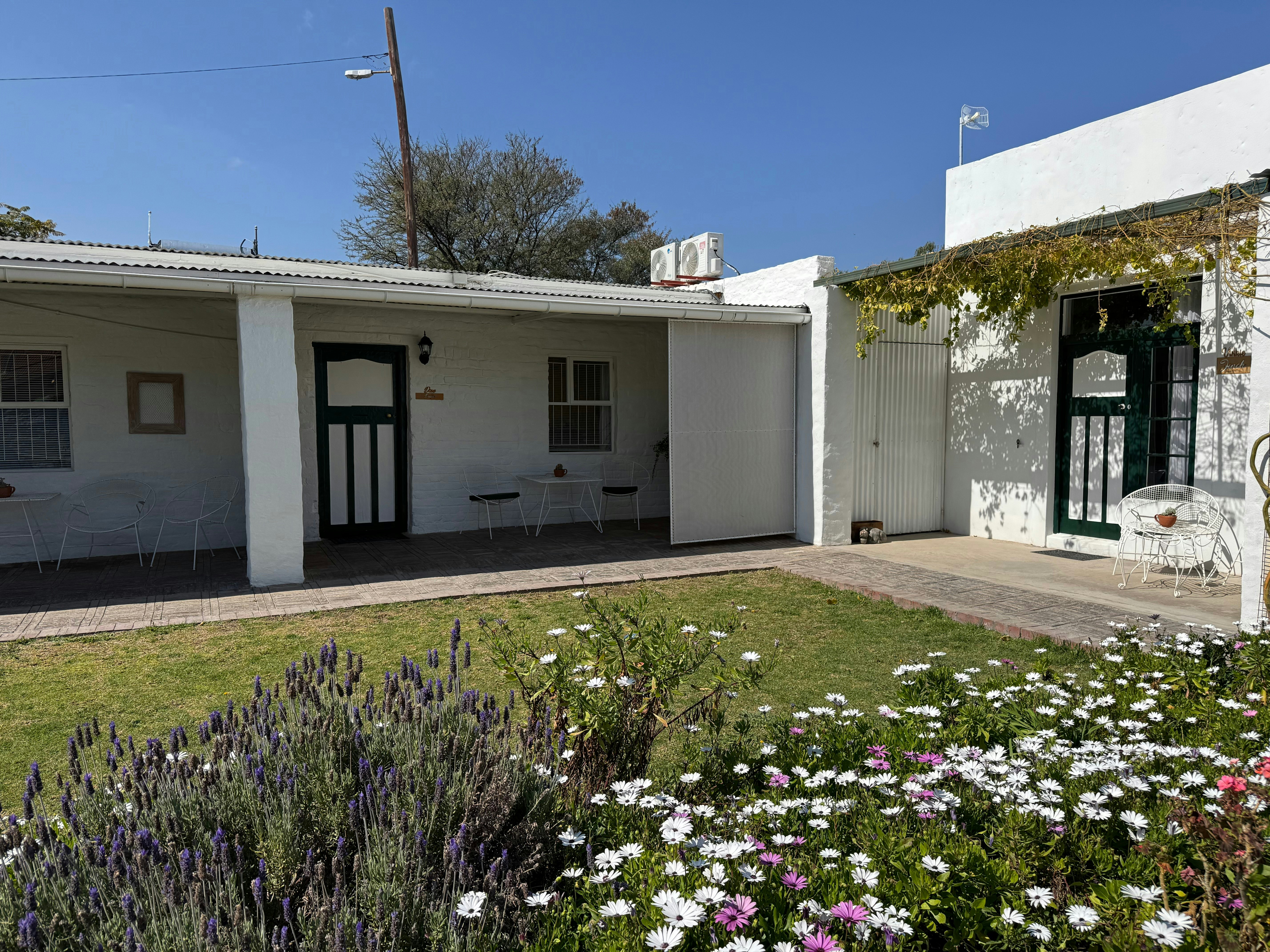 Die eiendom bestaan uit 5 aparte eenhede. Hummingbird, Dove en Finch bied elk slaapplek vir 2 gaste. Hoopoe bied slaapplek vir 3 gaste, terwyl Swallow 'n gesinseenheid vir vier gaste is. Alle eenhede sluit selfsorggeriewe in en het toegang tot privaat badkamers.