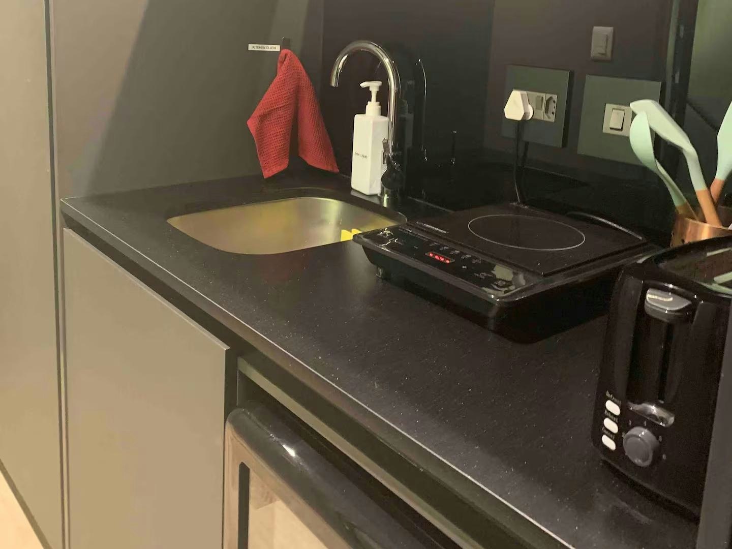 This air-conditioned apartment can accommodate 1 to 2 guests and is tastefully furnished with a double-size bed. It has an en-suite bathroom fitted with a shower, basin, and toilet. Linen and towels are provided.