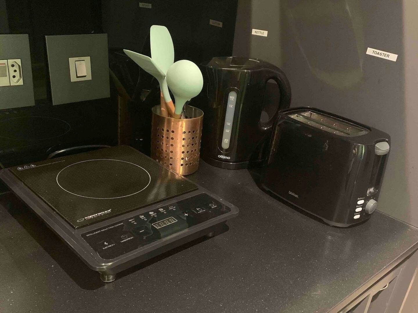 The room has a kitchenette equipped with a bar fridge, stove, microwave, basic cutlery, crockery, and tea- and coffee-making facilities. There is a cosy couch and a TV with access to Netflix. Free Wi-Fi is available.