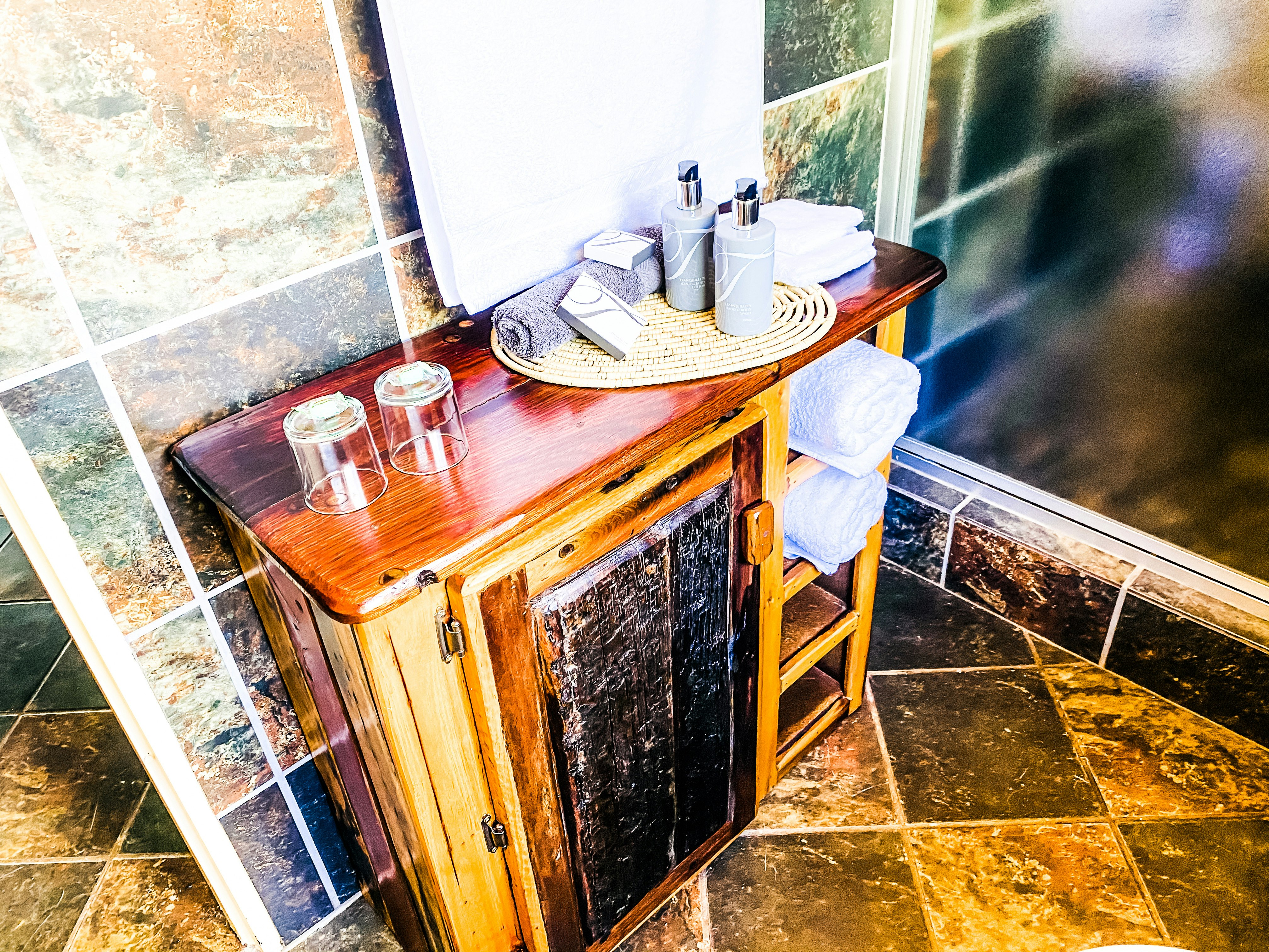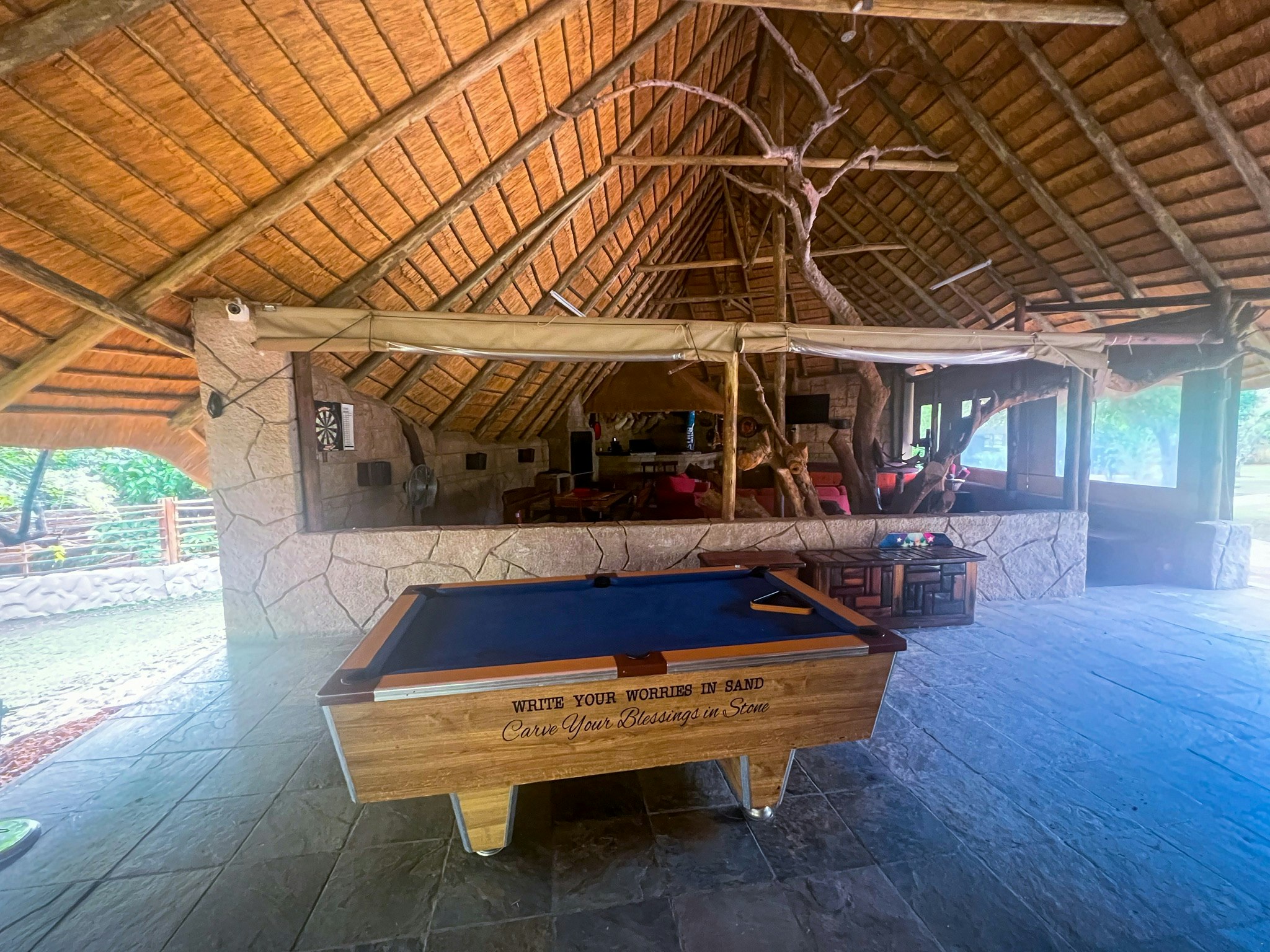Die lodge het 'n leefarea met 'n kombuis wat met n gasstoof, 'n mikrogolf, yskas-vrieskas, eetgerei, breekware en tee- en koffiemaakgeriewe toegerus is. Daar is ook 'n kuierarea met binnebraaigeriewe, 'n kroeg, Jacuzzi, pooltafel en 'n etenstafel met genoeg sitplek. Daar is ook gemaklike sitplek voor 'n platskerm-TV met die volledige DStv-pakket.