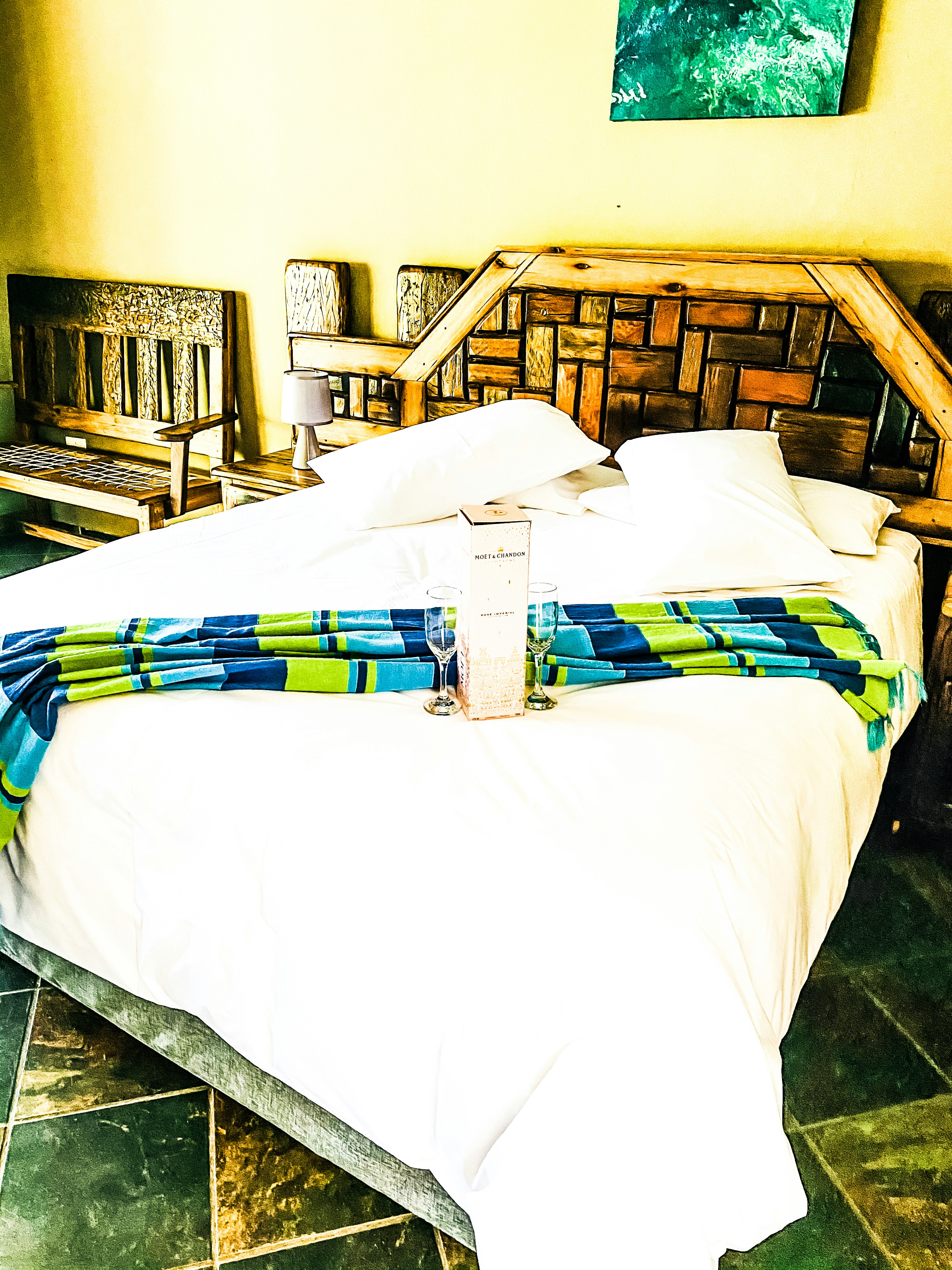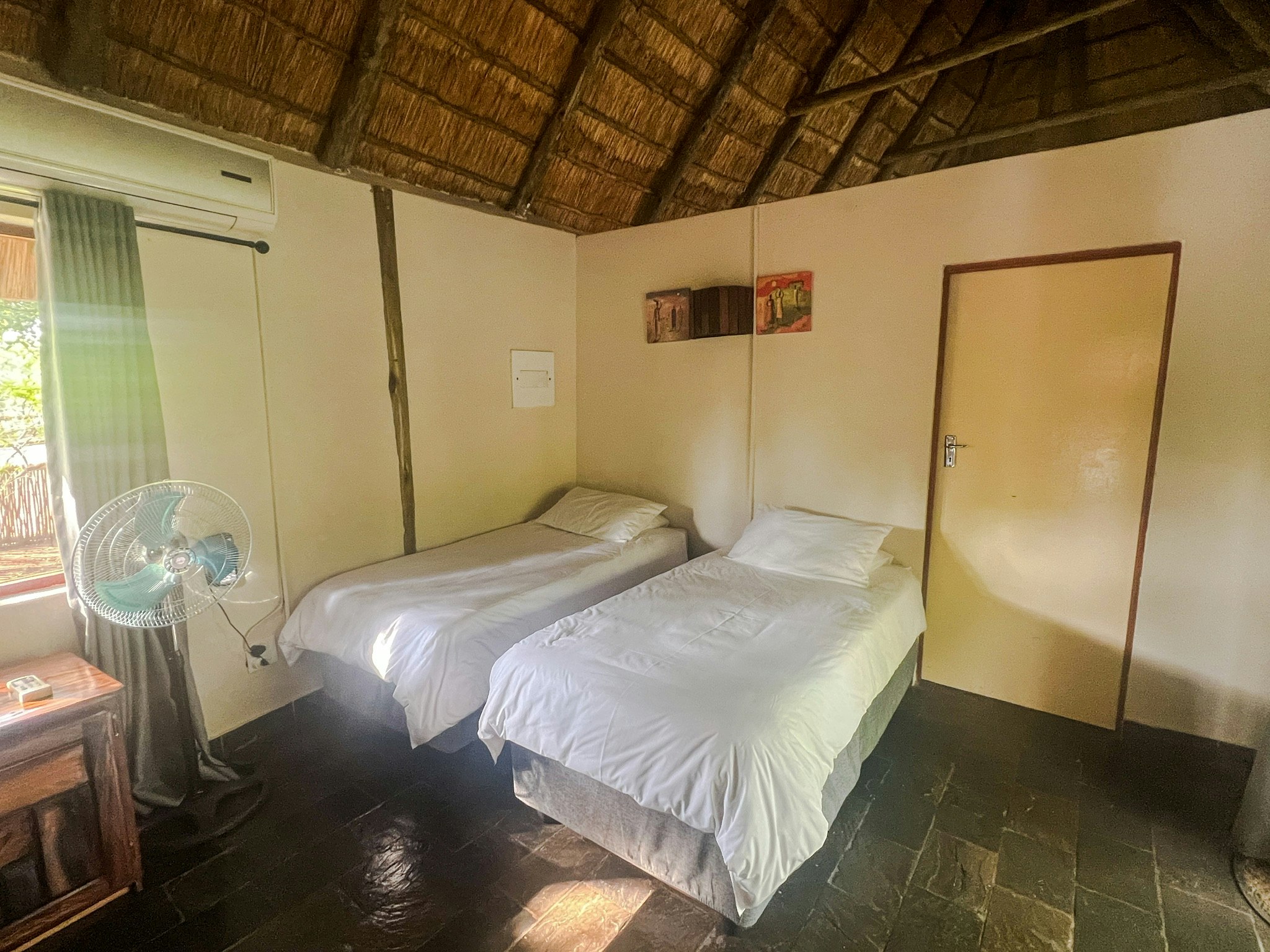 Verblyf is beskikbaar vir 20 volwassenes en 6 kinders. Die lodge beskik oor 13 slaapkamers, 'n koningingrootte-bed of 2 enkelbeddens wat slegs geskik is vir kinders. Al 10 badkamers is en suite en het óf 'n stort óf 'n bad. Alle linne, badhanddoeke word voorsien, maar gaste moet asb. hul eie swemhanddoeke saambring.