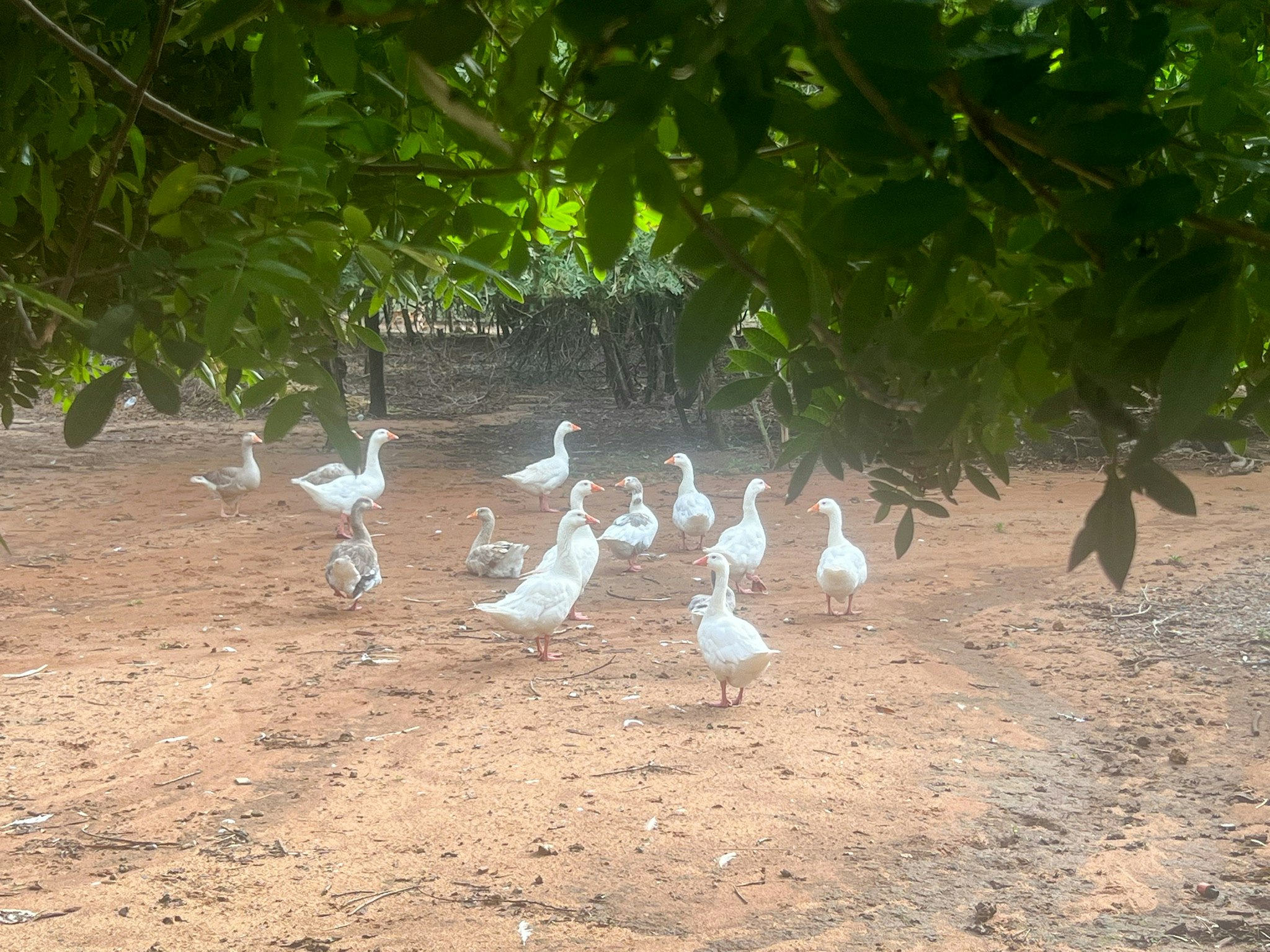 Daar is sonpanele wat die ligte en TV tydens beurtkrag ondersteun.