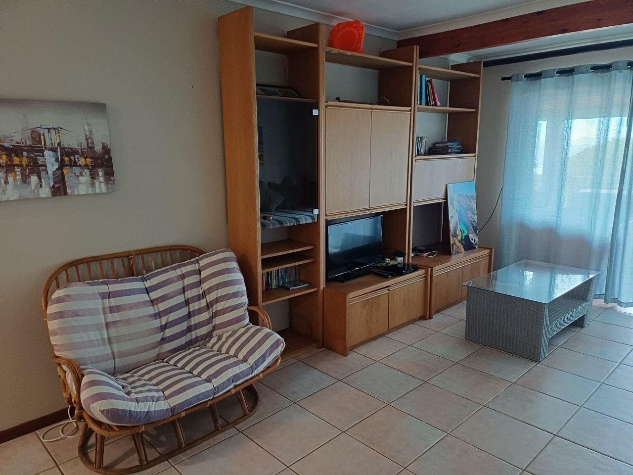 The open-plan living area features a cosy lounge with a TV and a well-equipped kitchen with a fridge-freezer, stove, oven, microwave, and coffee- and tea-making facilities, along with a breakfast nook for casual dining. The enclosed patio offers comfortable seating and braai facilities, while the balcony provides picturesque ocean views.