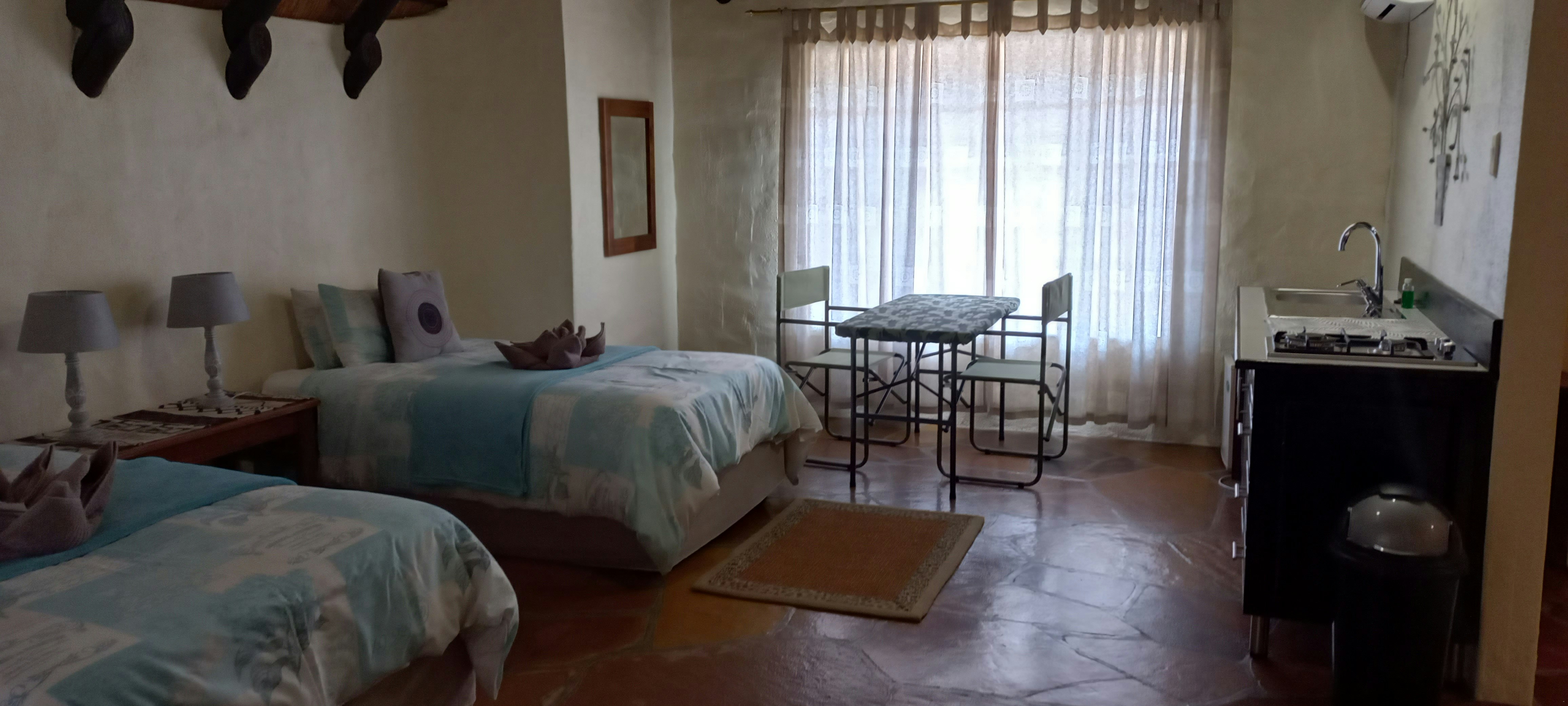 Verblyf word in 8 luukse selfsorgkamers met slaapplek vir 2 tot 3 gaste per kamer gebied. Die kamers het elkeen lugversorging en 'n dubbelbed of 2 driekwartbeddens. Elke kamer se en suite-badkamer het 'n stort of 'n stort en bad. Alle linne word voorsien, maar gaste moet hul eie handdoeke saambring.