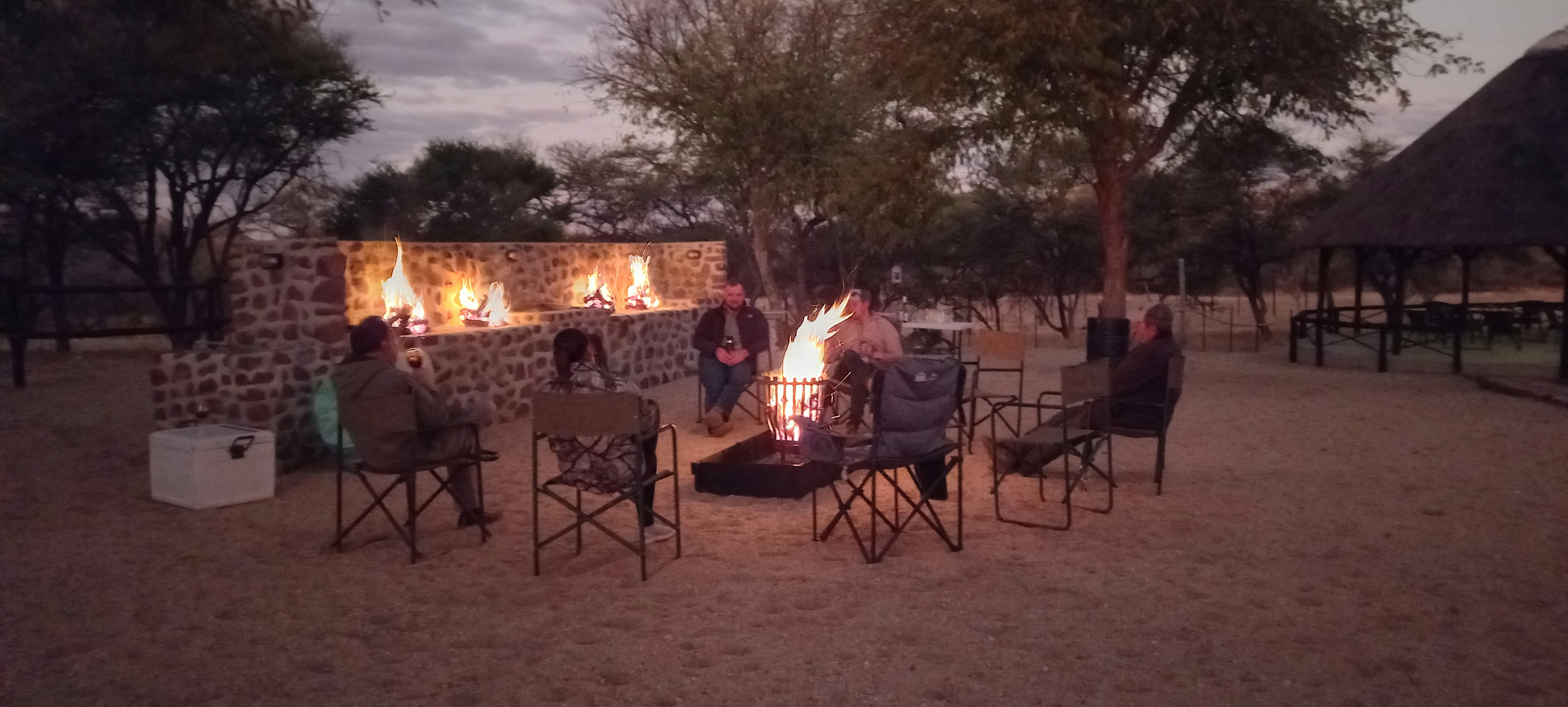 Daar is 'n lieflike braai-area waar gaste hul aande om 'n oop vuur kan deurbring.