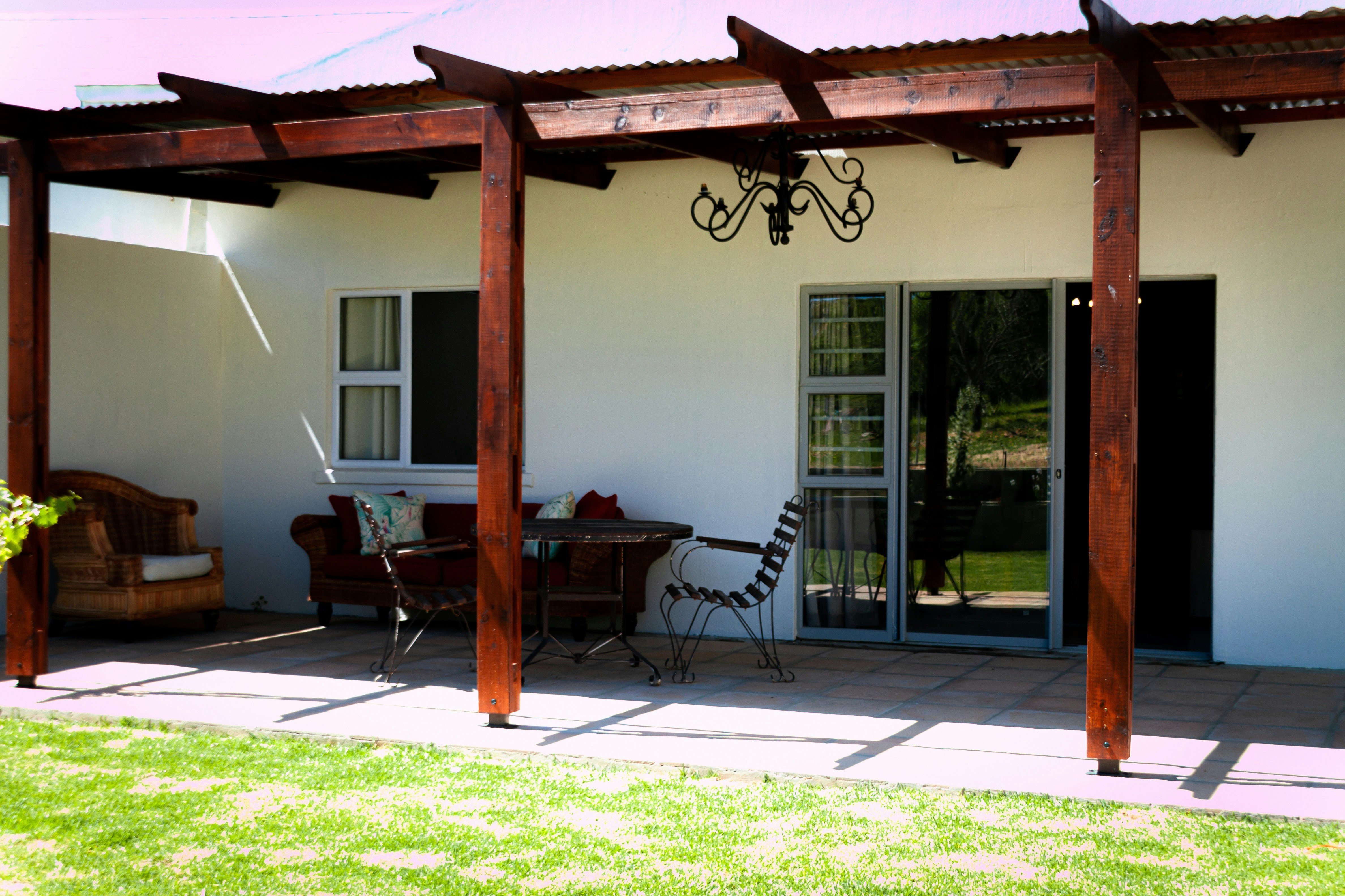 Outside, guests can relax on the covered patio with comfortable outdoor seating and take in the breathtaking views of the surrounding countryside. Braai facilities are also provided. With its warm, inviting atmosphere and close proximity to local shops, hiking trails, and farmlands, Rooikraal Hamlet is the perfect base for exploring the area or simply unwinding in a serene rural setting. Secure parking is available.