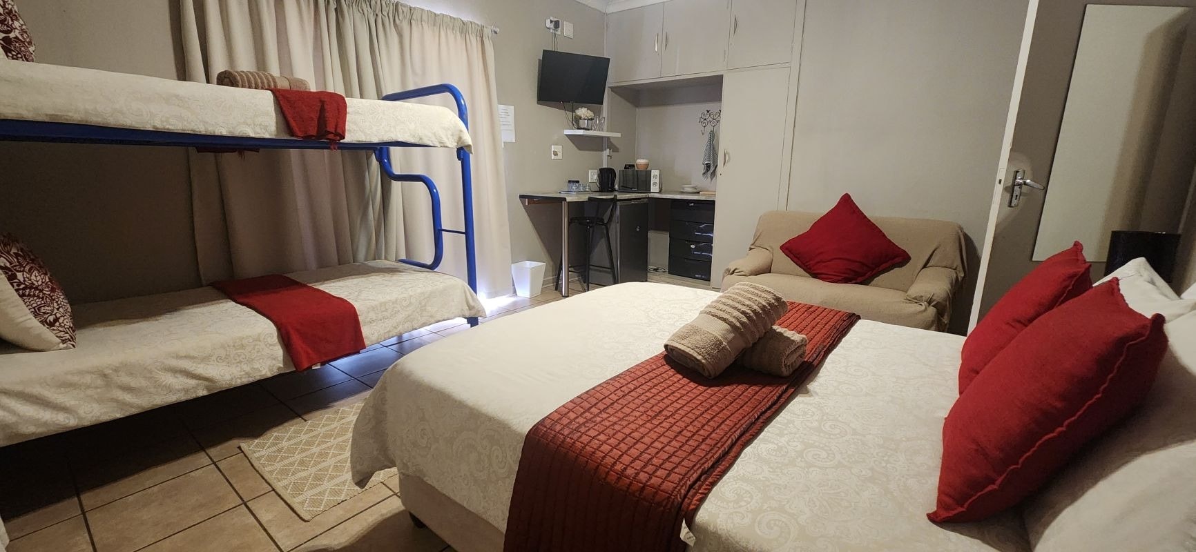 We offer 3 spacious en-suite rooms furnished with comfortable beds and an en-suite furnished with a shower, toilet, and basin.