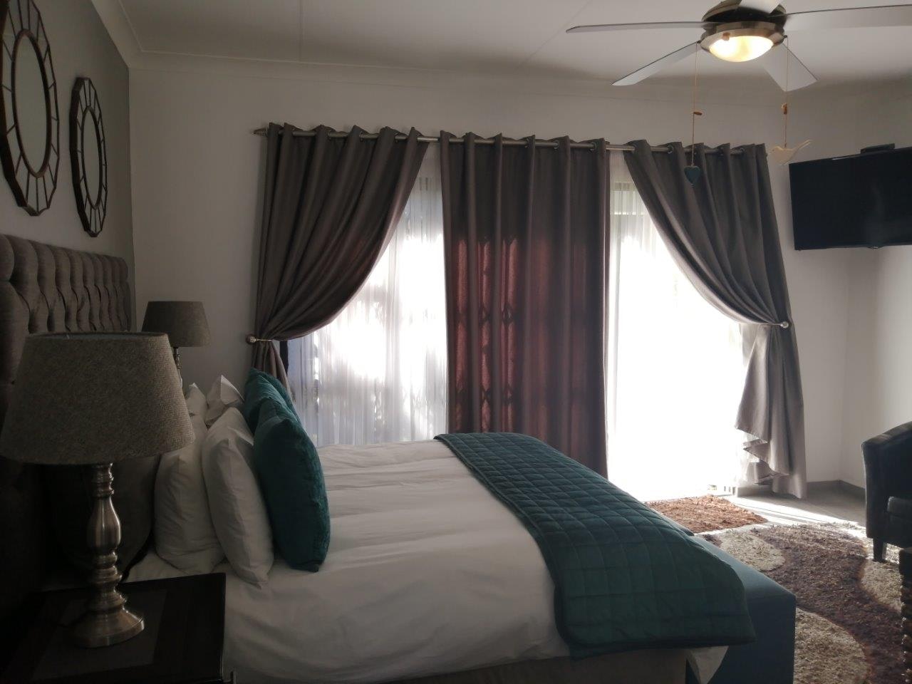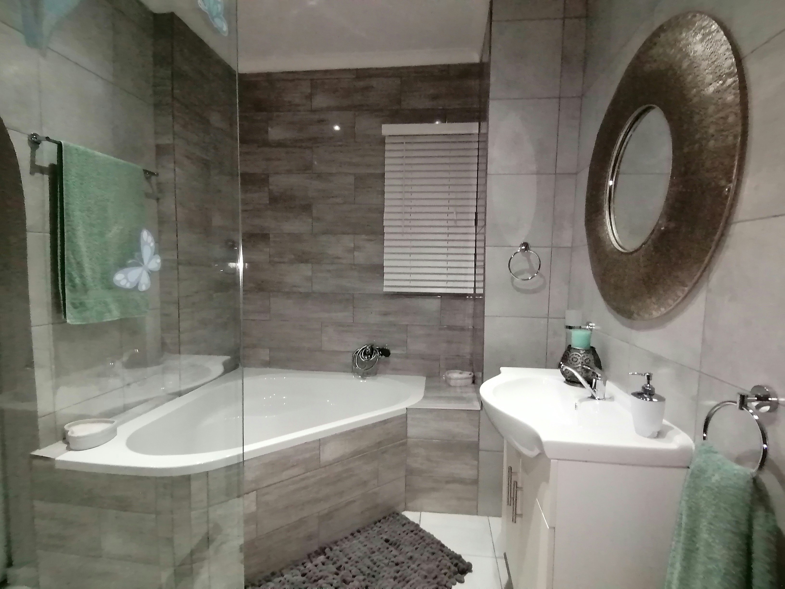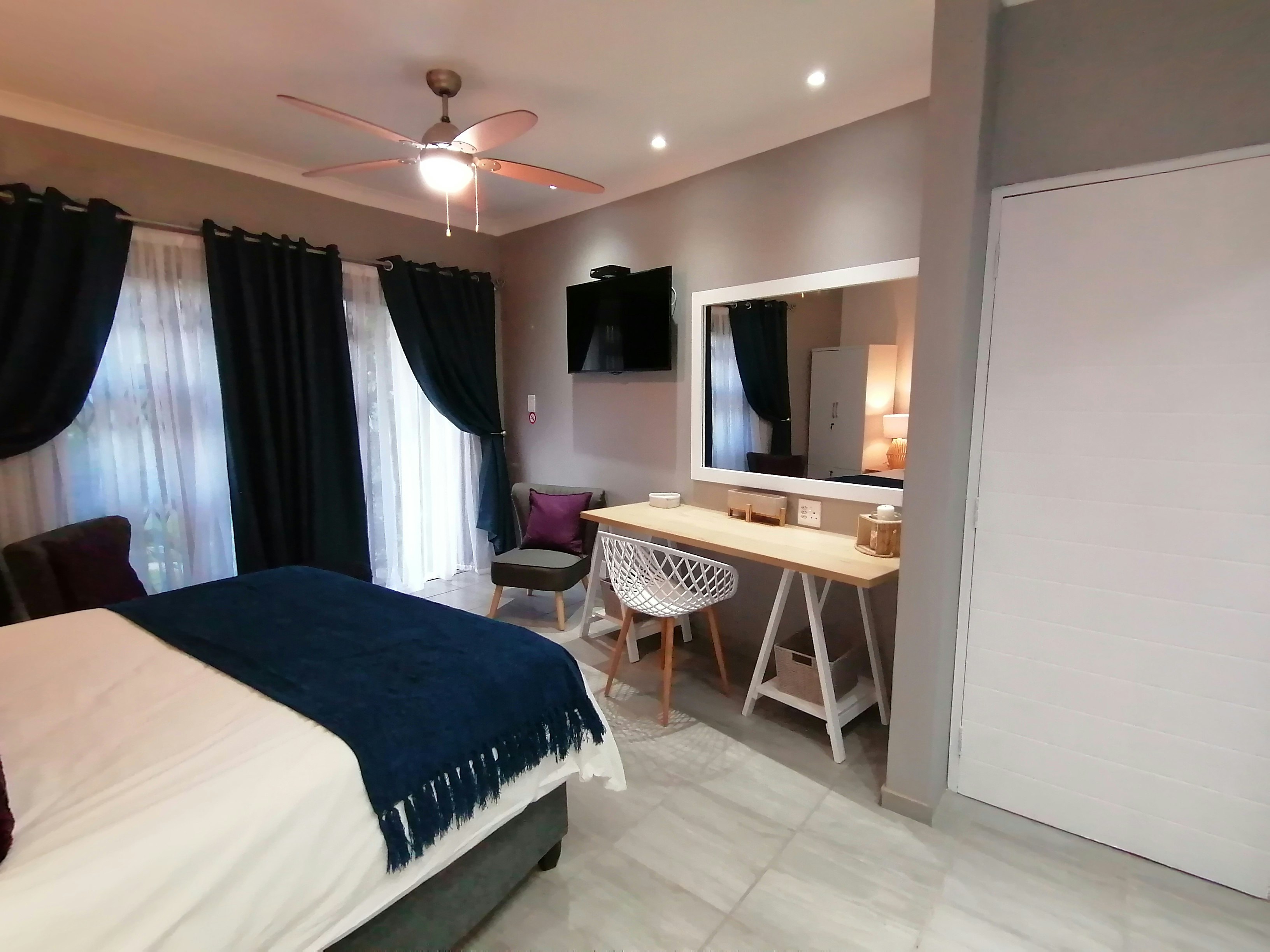 Accommodation is provided in 3 units which has a private entrance and is suitable for a couple. All 3 units together are suited for 9 guests. Each bedroom contains a queen-size bed as well as a TV with selected DStv channels. The Roxy room has a bathroom with a corner bath, shower and toilet. The Butterfly and Bumble Bee rooms each have a shower and a toilet. Each unit also has a kitchenette equipped with a microwave, fridge and tea- and coffee-making facilities. There is a braai area with braai equipment. Guests just need to bring their own charcoal and blitz. Safe parking behind an electronic gate is available.