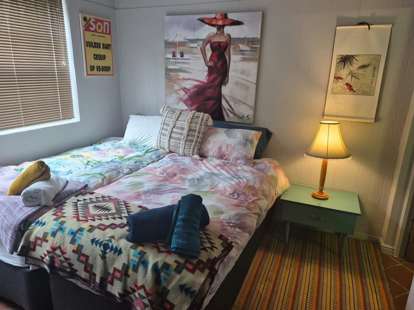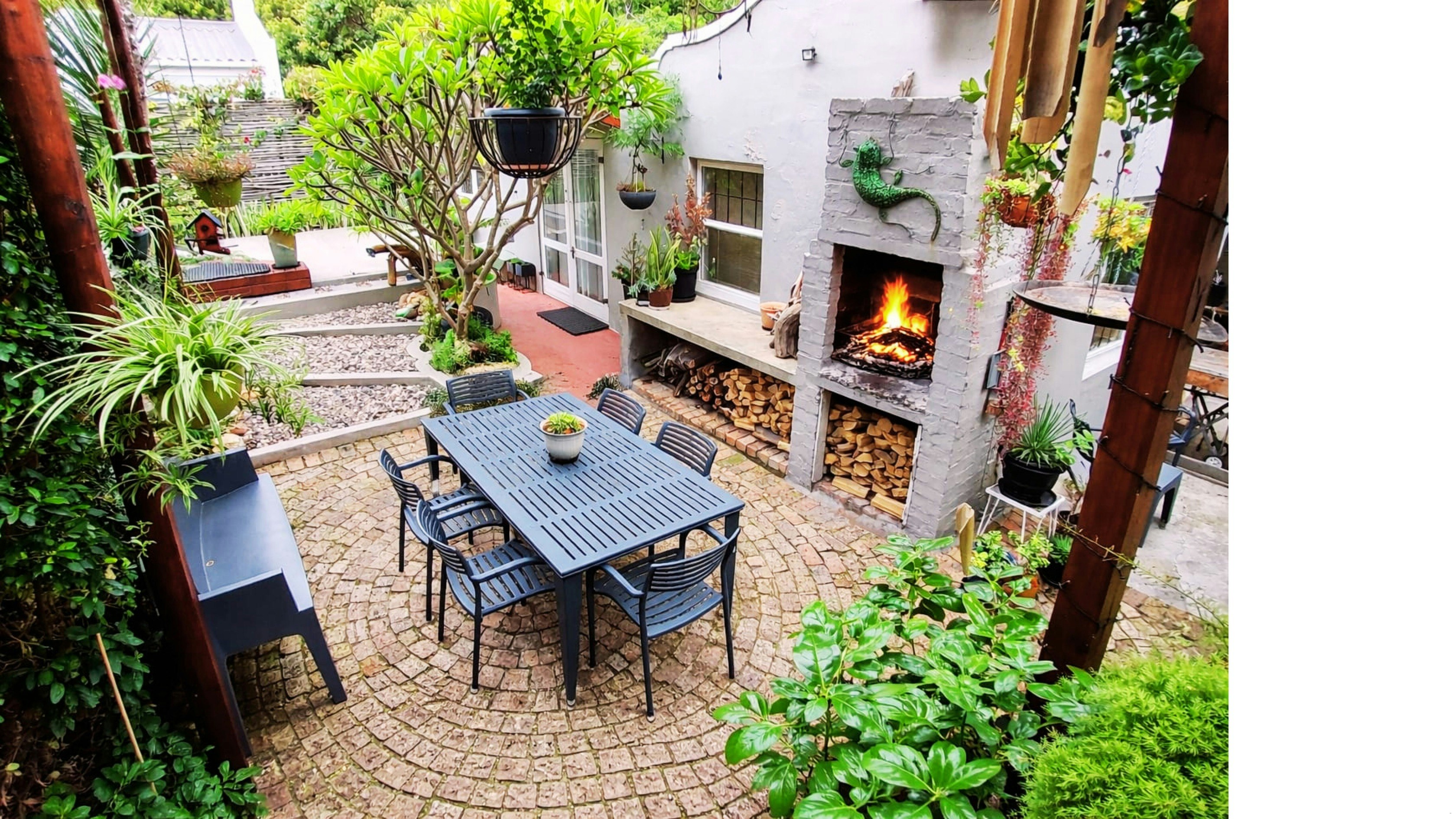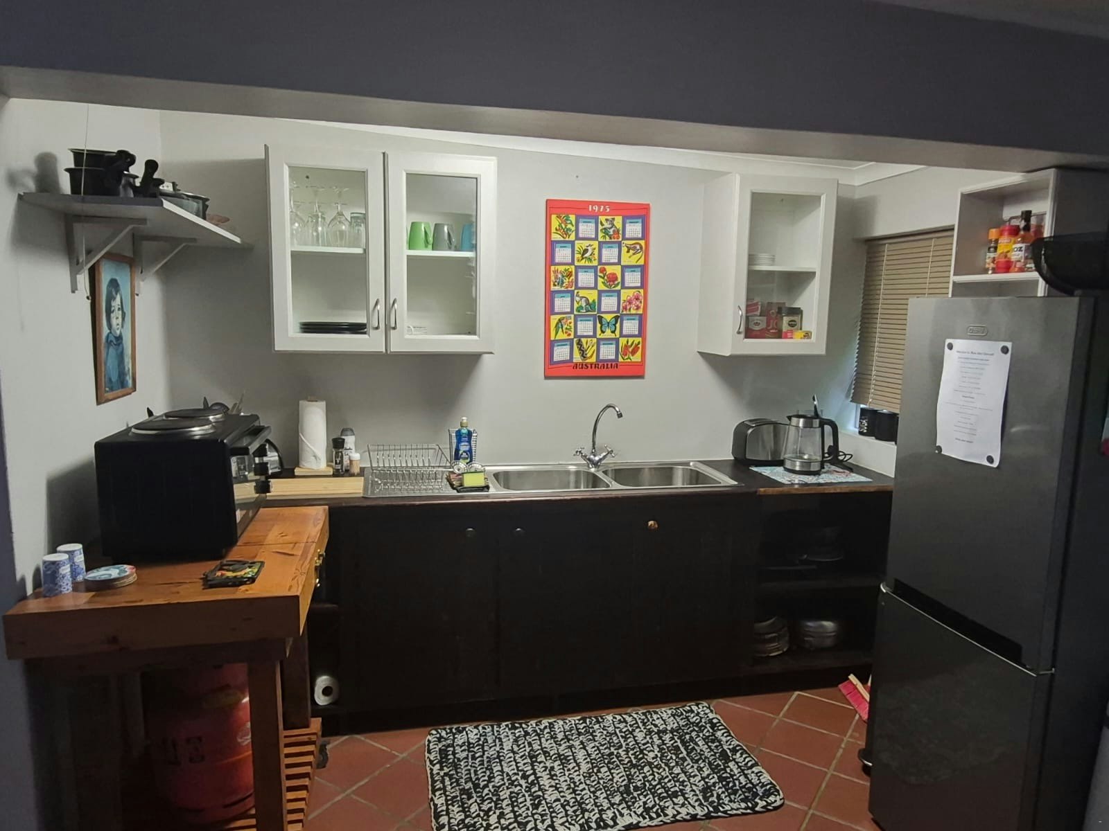 Die Gastehuis/Tuin Woonstel het twee slaapkamers met twee en suite badkamers. Beide met storte. Daar is ook een gemene sit/woonkamer met 'n klein kombuis. Kaggel. Etenstafel, yskas. Opwasgeriewe. Tweeplaat Oond/Stoof.