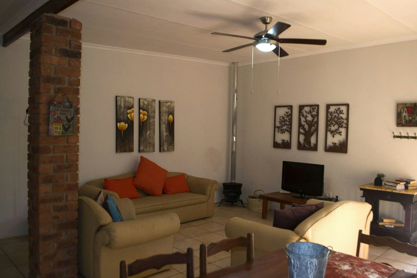 Uitsig consists of 3 bedrooms and 2 bathrooms. The main bedroom is equipped with a queen-size bed and sleeper couch; and has an en-suite bathroom with a shower and bath. The second bedroom has 2 single beds and a sleeper couch, and the third bedroom has a queen-size bed. These 2 rooms share a bathroom with a shower.
