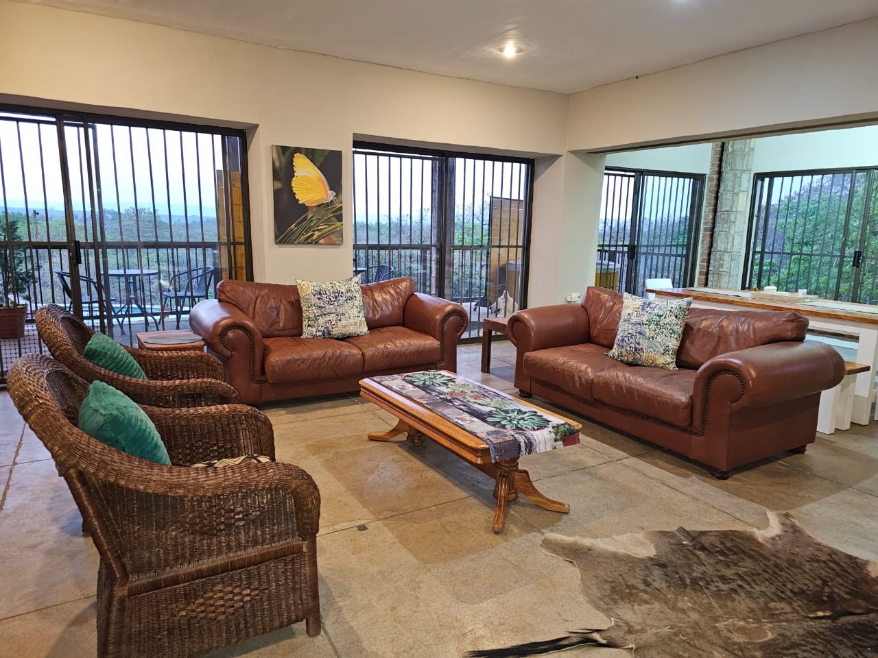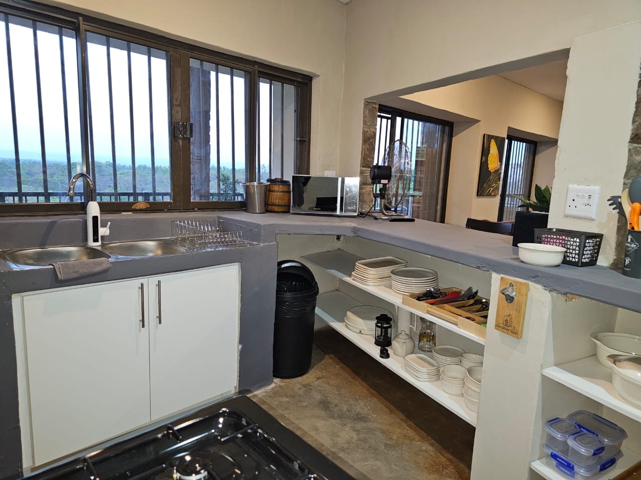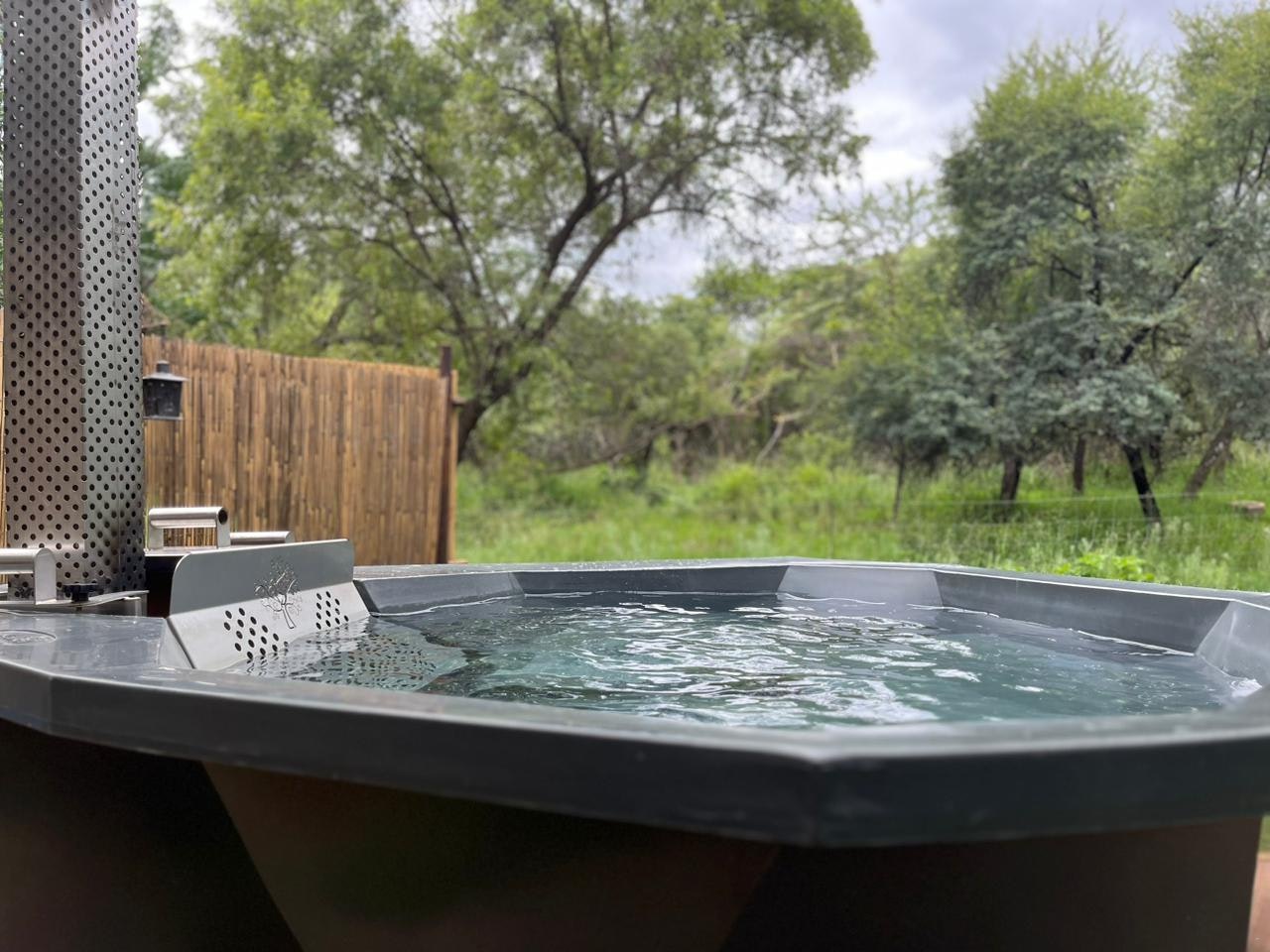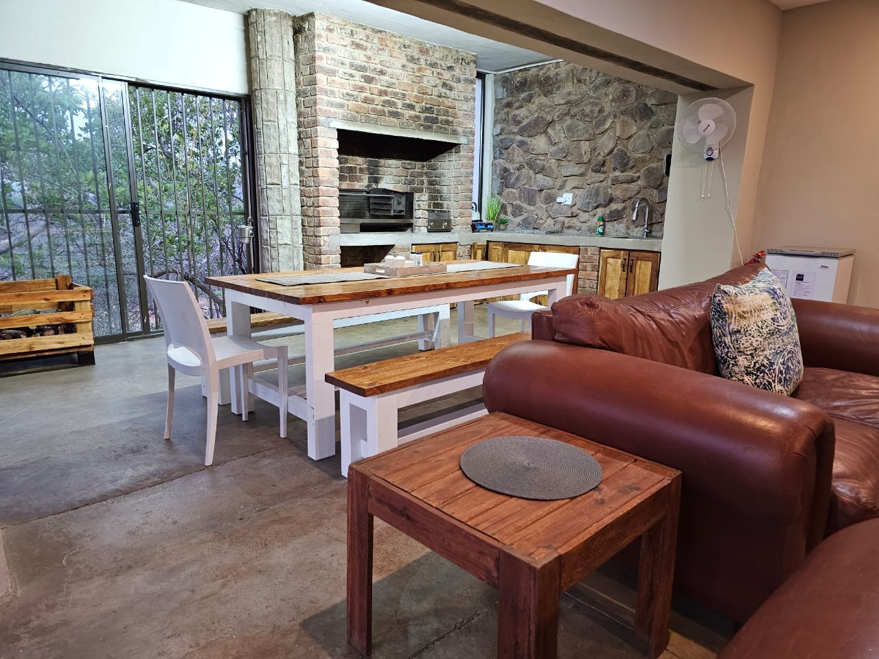 The house also comprises an open-plan living area and kitchen. The kitchen is equipped with a stove, an oven, a microwave, tea- and coffee-making facilities, crockery and cutlery. The lounge area has comfortable couches and a TV with full DStv channels. There is also a Wi-Fi connection provided. A private hot tub is also available.