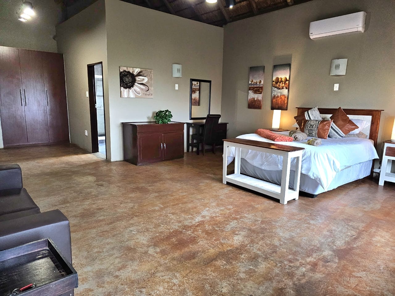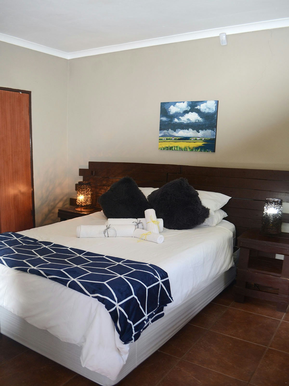 Chalet 3 consists of 1 double bed, and an en-suite bathroom fitted with a shower, a toilet and a washbasin. The chalet is also equipped with air conditioning. The unit also features a kitchenette for self-catering and contains a stove, mini bar fridge, microwave, and kettle as well as tea- and coffee-making facilities. There is also DStv and access to free Wi-Fi is also provided.