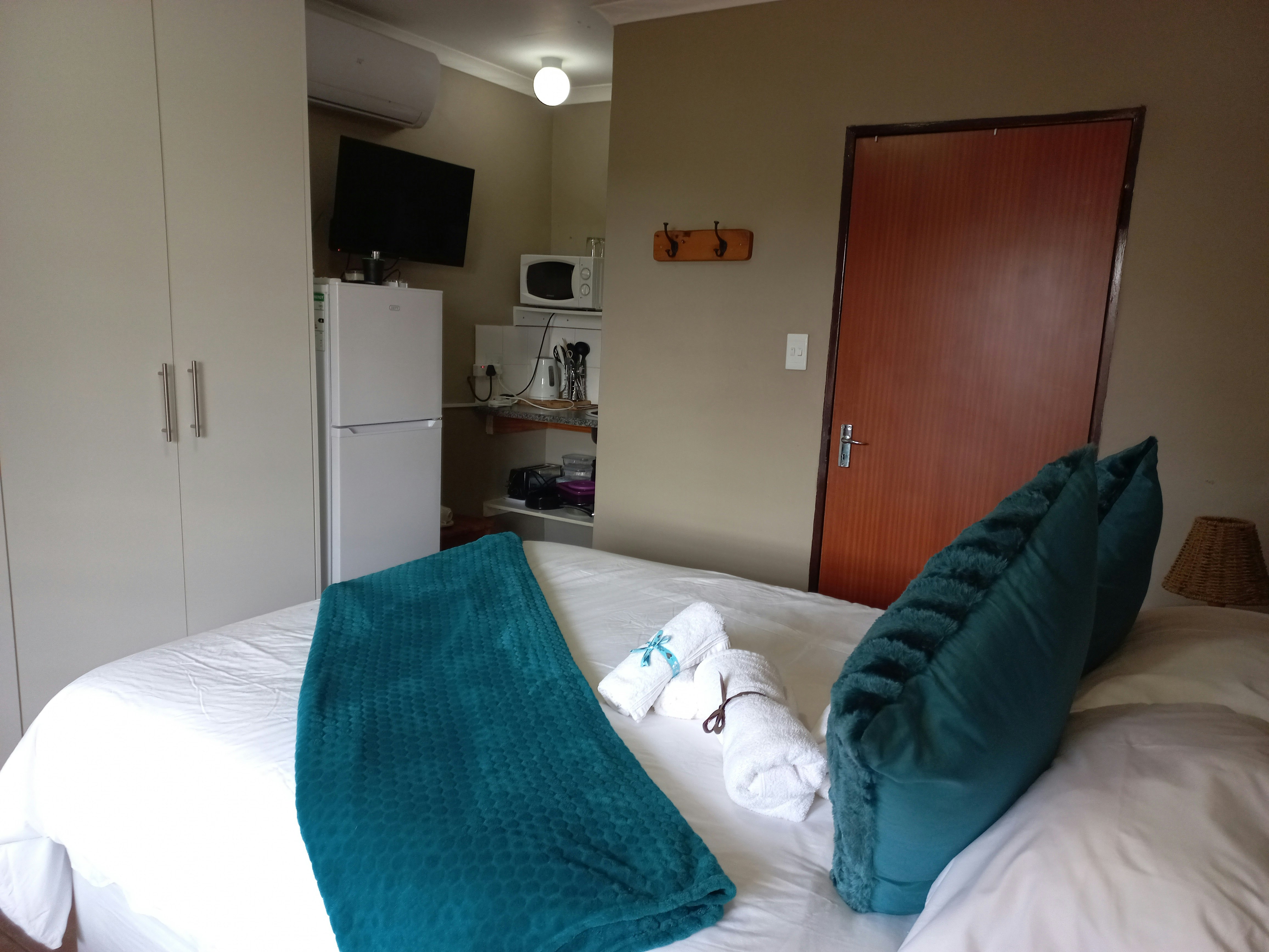 The unit also features a kitchenette for self-catering and contains a 2-plate stove, mini bar fridge, microwave, and kettle as well as tea- and coffee-making facilities. There is also DStv and free Wi-Fi.