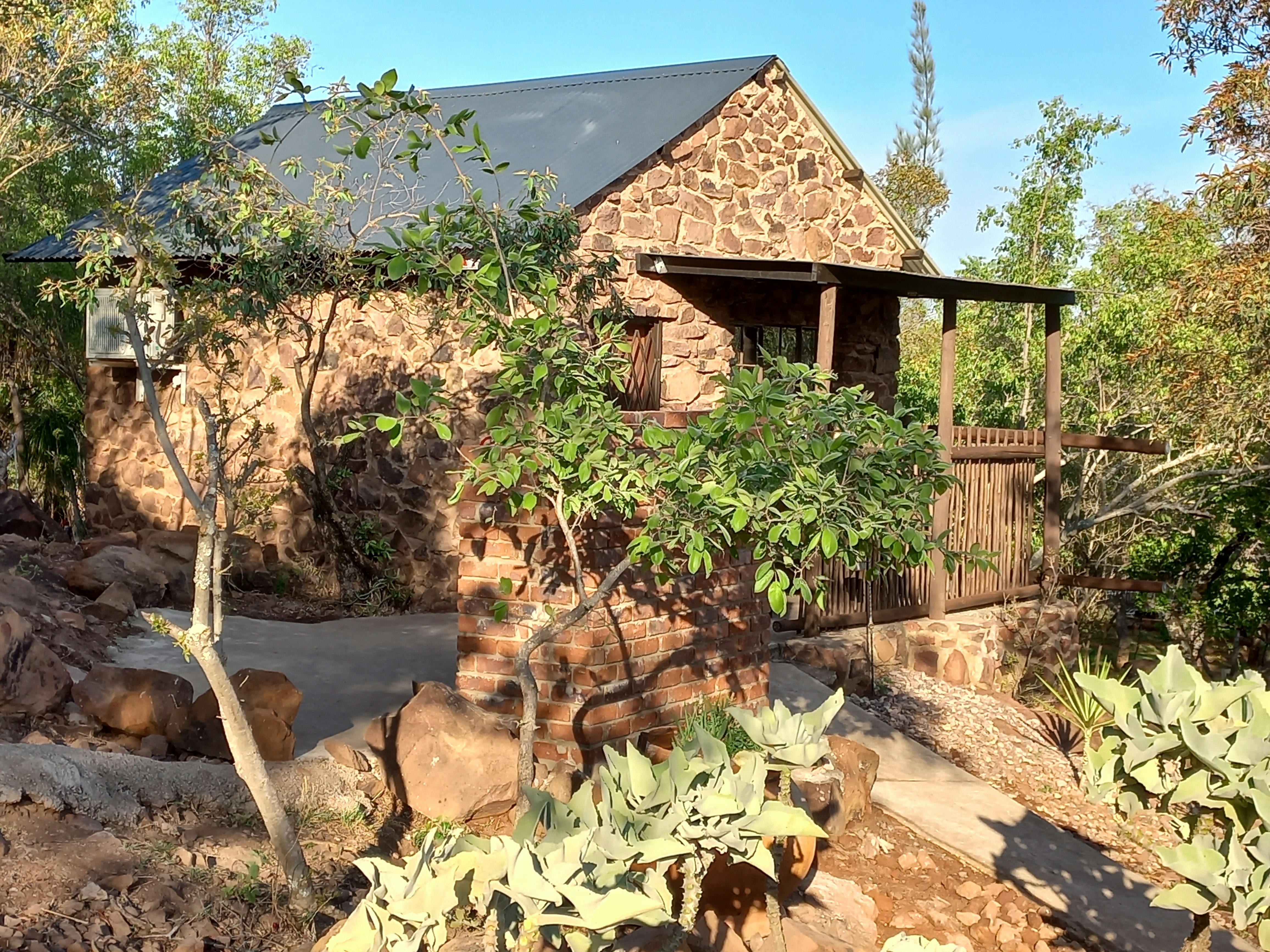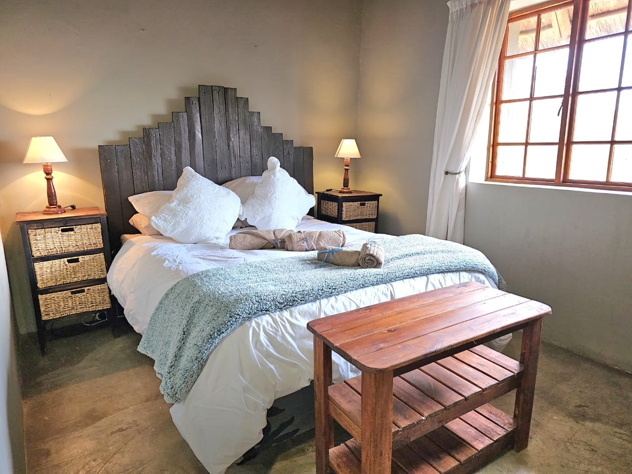 Chalet 2 consists of 1 double bed, and an en-suite bathroom fitted with a shower, a toilet and a washbasin. The chalet is also equipped with air conditioning. The unit also features a kitchenette for self-catering and contains a stove, bar fridge with a mini freezer, microwave, and kettle as well as tea- and coffee-making facilities. There is also DStv and access to free Wi-Fi is also provided.