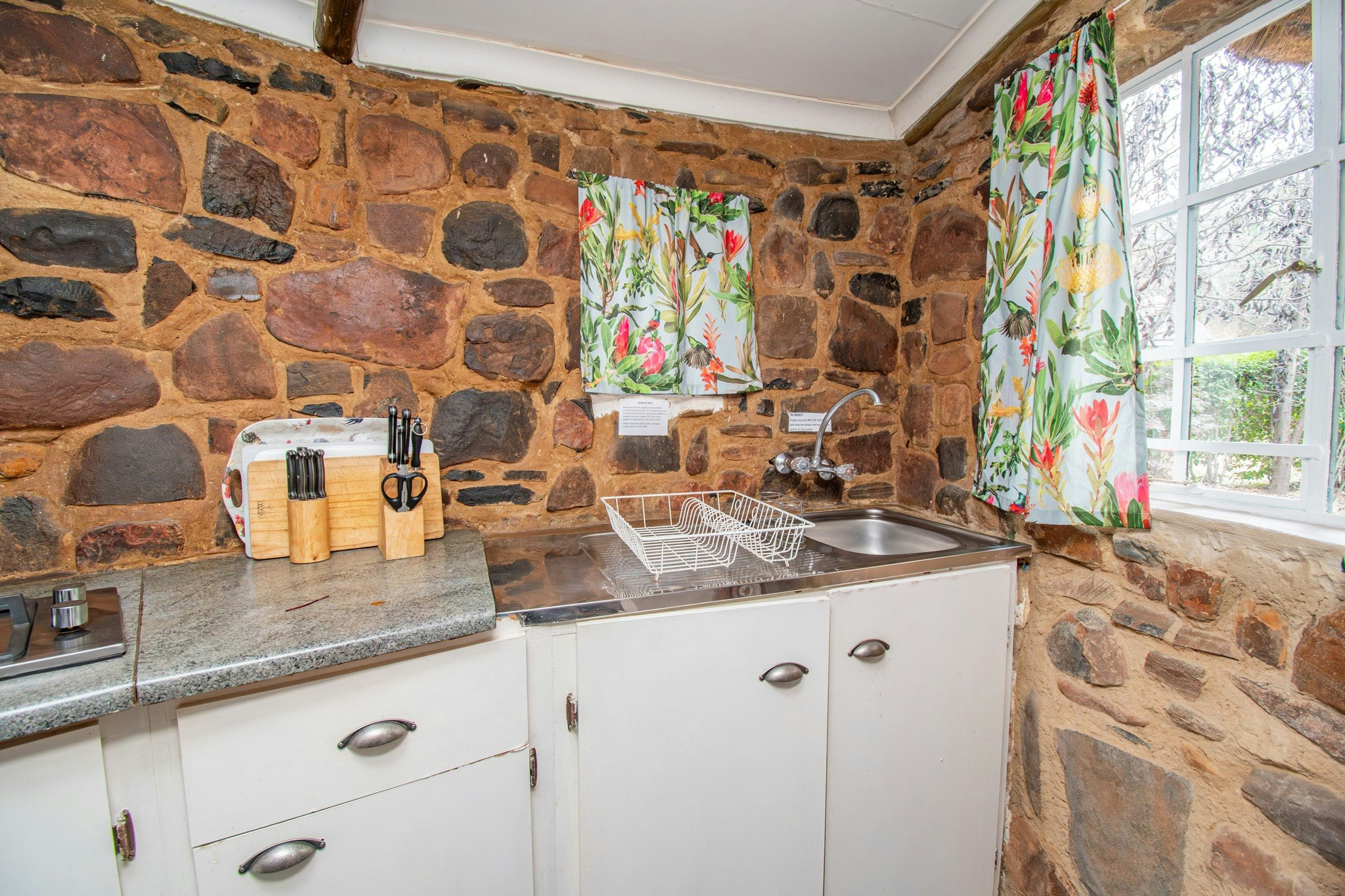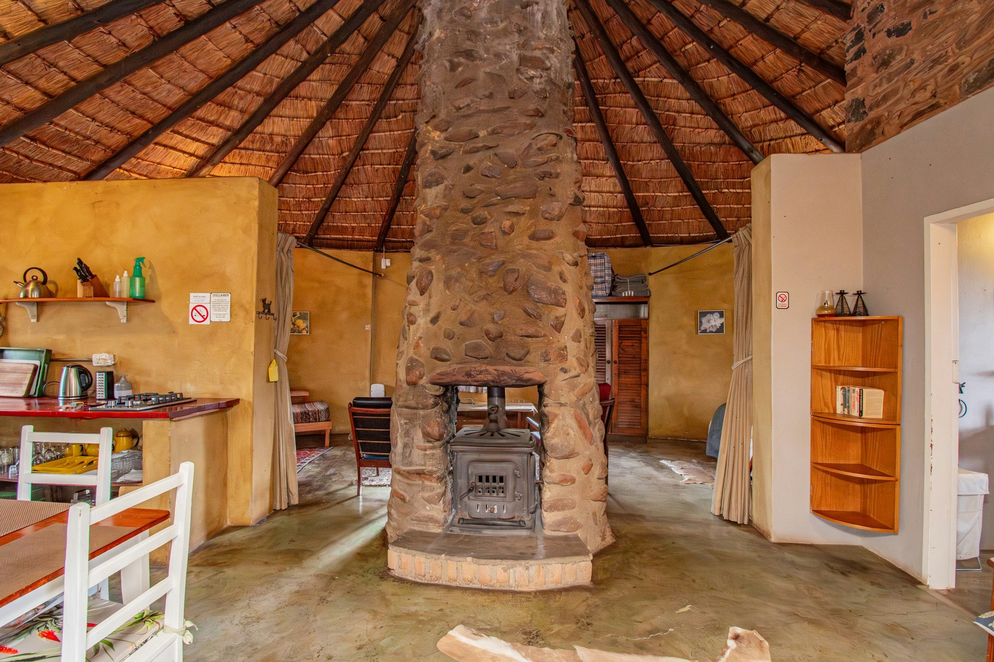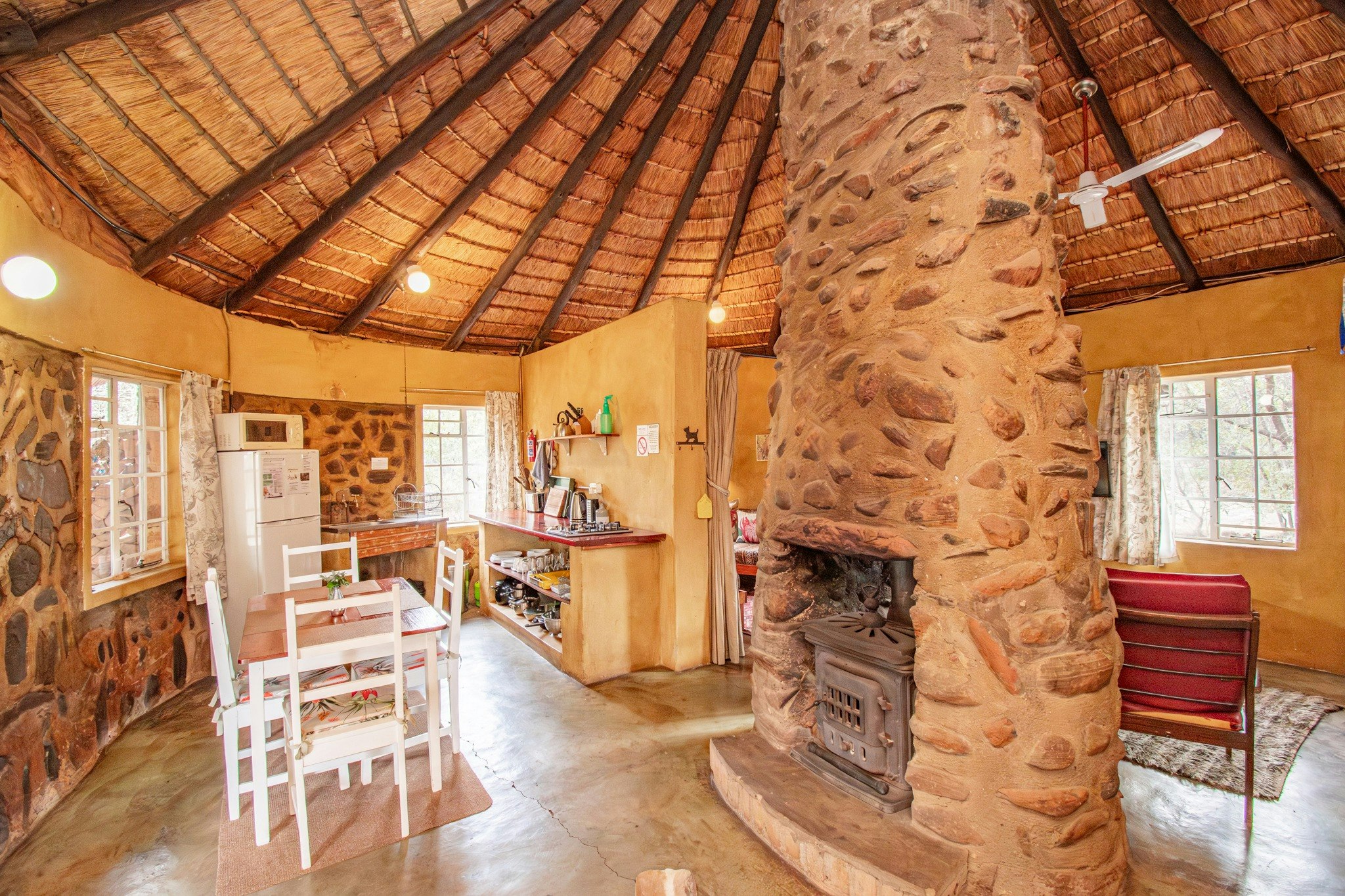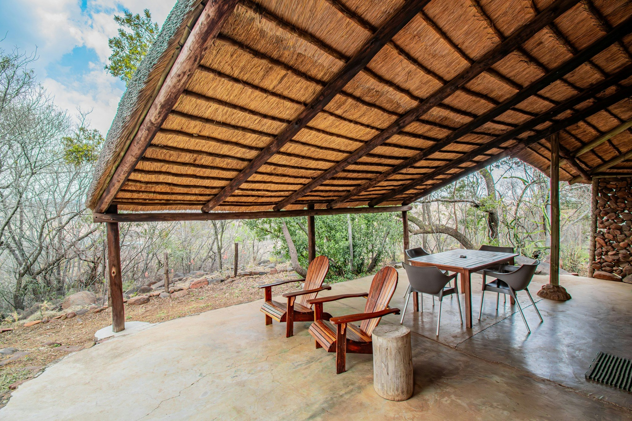 Verblyf is beskikbaar in 9 kothuise wat slaapplek vir 28 gaste in totaal bied. Al die kothuise het gemaklike beddens, 'n badkamer met 'n stort of bad, 'n kaggel en 'n kombuisie met 'n yskas, mikrogolf, stoof en 'n ketel. Gaste moet hul hul eie DStv-dekodeerder en aansluitprop saambring om DStv te kyk. 'n 4x4 word benodig om sommige van die kothuise te bereik of gaste kan ondertoe parkeer en die kothuise te voet bereik. Al die kothuise is troeteldiervriendelik en het 'n omheinde tuin.