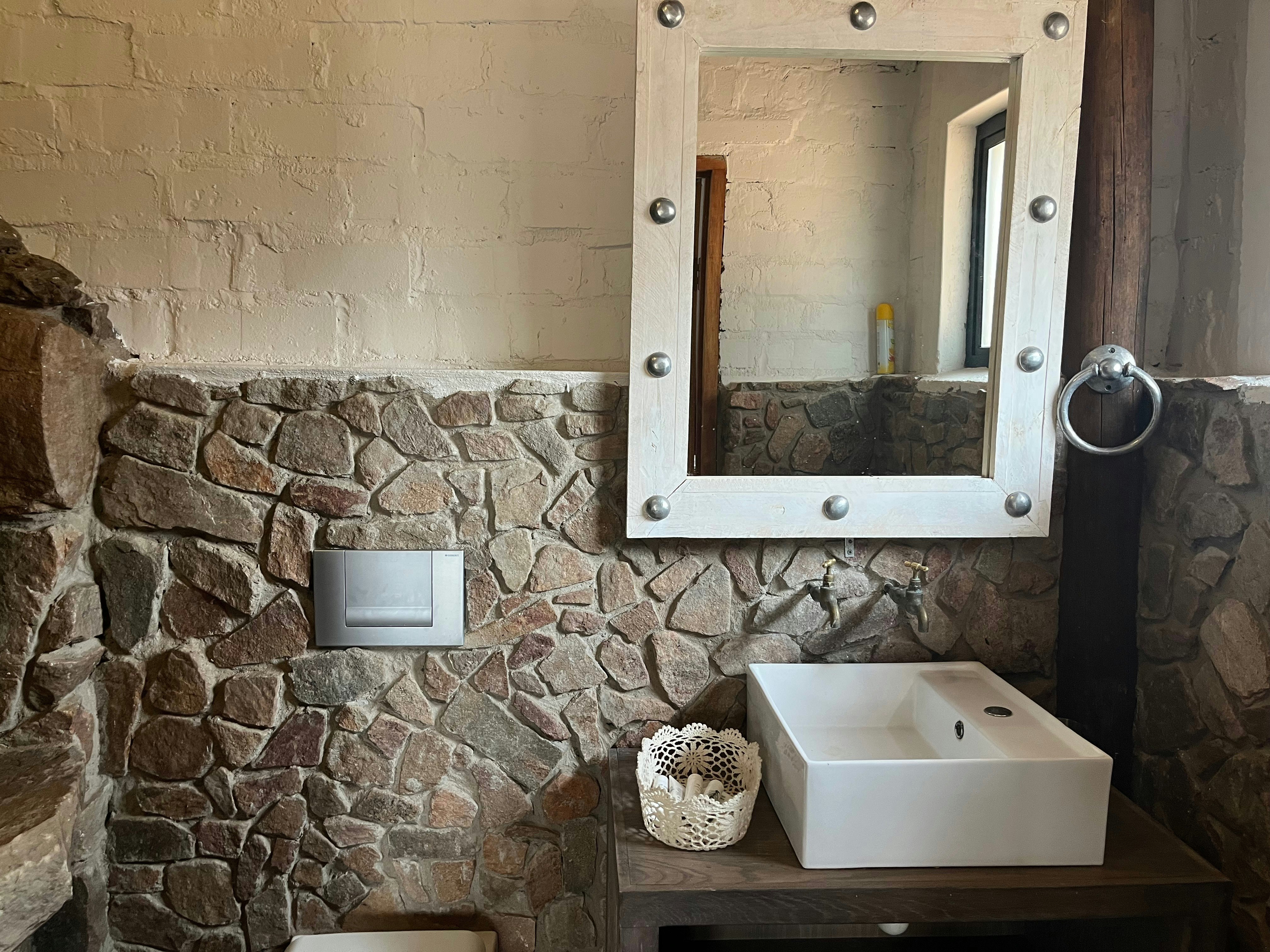 The main house features a kitchen, living room and dining room. The kitchen is fully equipped with a fridge-freezer, stove, oven, microwave, cutlery and crockery, and tea- and coffee-making facilities. The dining room is furnished with 2 large dining tables and the living room is furnished with ample comfortable seating. The main house opens up onto a patio that is furnished with outdoor furniture and sun loungers. Access to Wi-Fi is available.