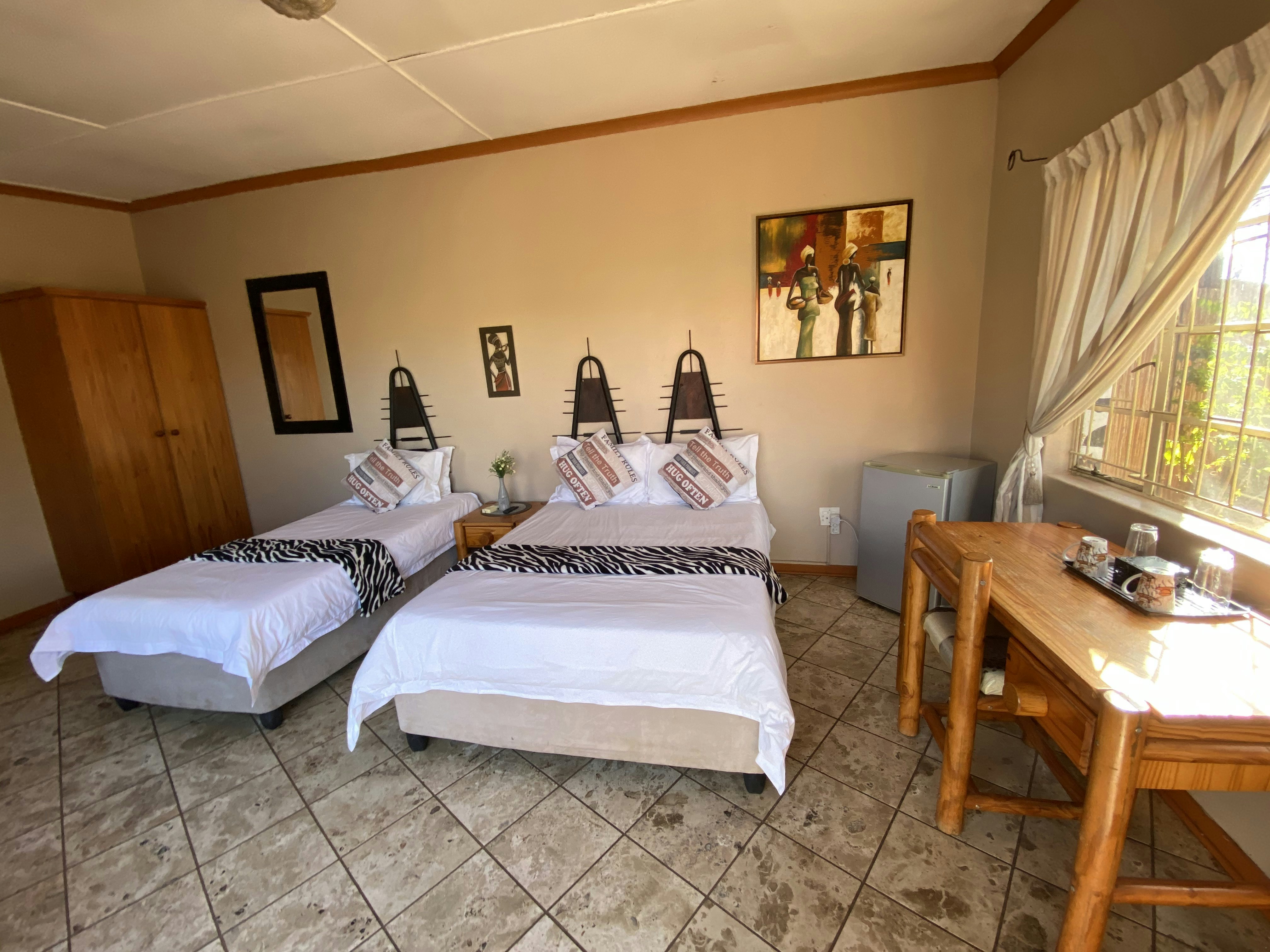 Die verblyf bestaan uit 5 kamers met slaapplek vir 13 gaste. Dit sluit die luukse kamer, gesinskamer met slaapplek vir 3, en 'n gesinskamer met slaapplek vir 4 in. Elke eenheid het 'n en suite-badkamer, lugversorging, 'n yskassie, TV met DStv en tee- en koffiemaakgeriewe.