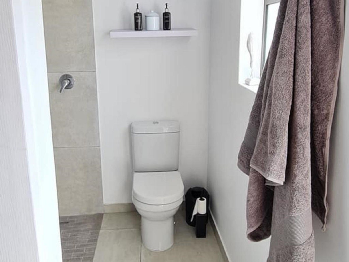Hierdie lieflike huis bied slaapplek aan 6 gaste en beskik oor 3 slaapkamers en 2 badkamers. Die hoofslaapkamer het 'n koningingrootte-bed en 'n en suite-badkamer met 'n stort, toilet en wasbak. Die tweede en derde slaapkamers het 'n dubbelbed of 2 enkelbeddens en deel 'n badkamer met 'n bad, stort, toilet en 'n wasbak. Gehaltelinne en badhanddoeke word verskaf, maar gaste moet hul eie strandhanddoeke saambring.