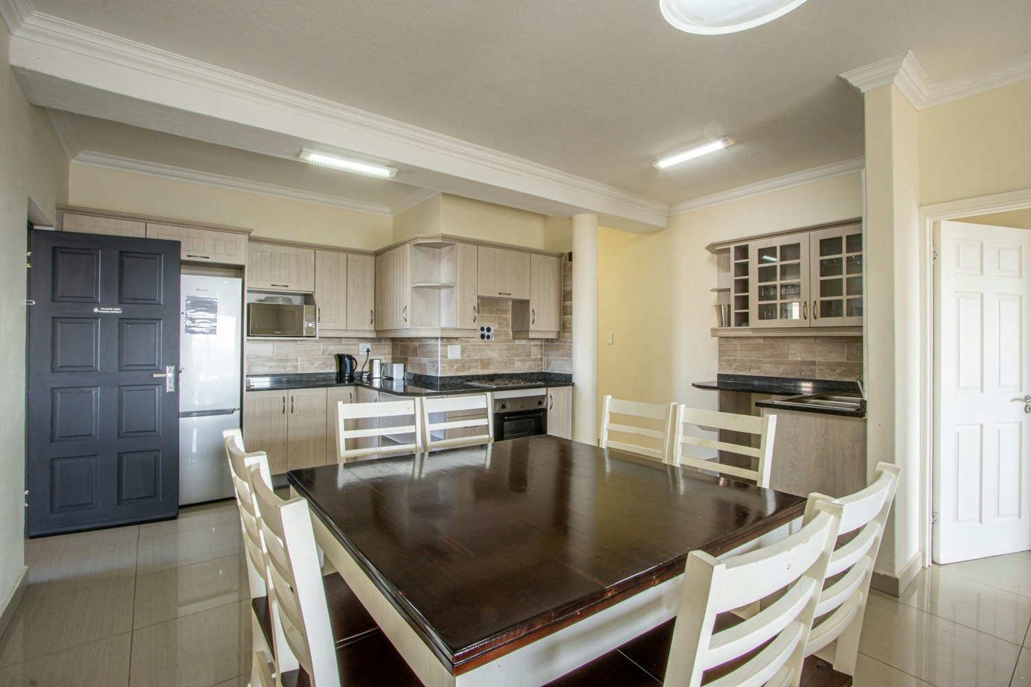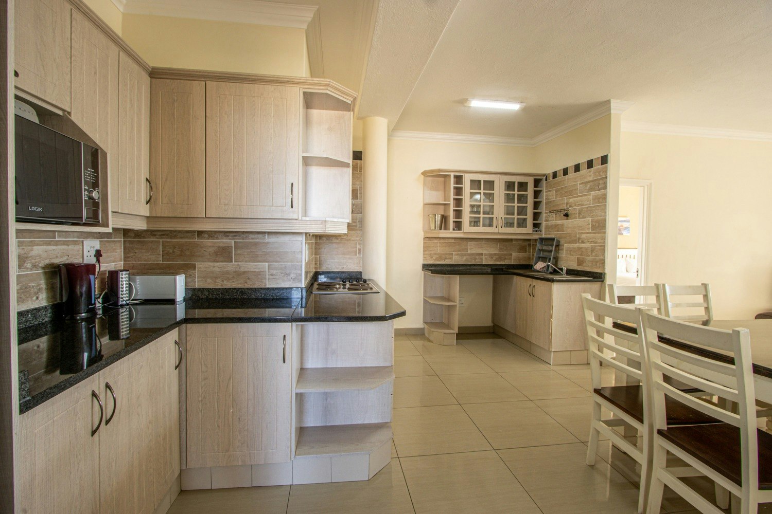 Die kombuis is ten volle toegerus vir selfsorg. Die sitkamer bied voorafbetaalbare lugversorging en 'n TV met 'n OpenView dekodeerder. Die sitkamer en hoofslaapkamer lei na 'n groot balkon met ingeboude braaigeriewe.