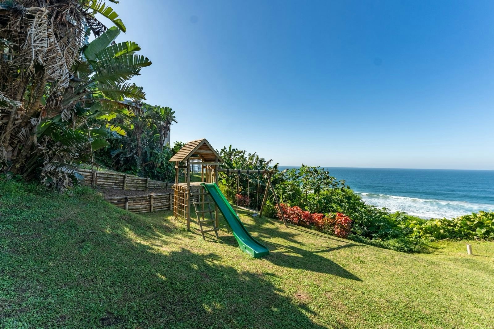 Guests can enjoy a spacious undercover patio with seating, a braai and unspoiled views of the ocean. The spacious garden features direct beach access, outdoor furniture and a children’s play area. An inverter and secure parking are available on the premises. Local amenities such as shops and restaurants are within close proximity, with Ballito being approximately 6.6 km away.