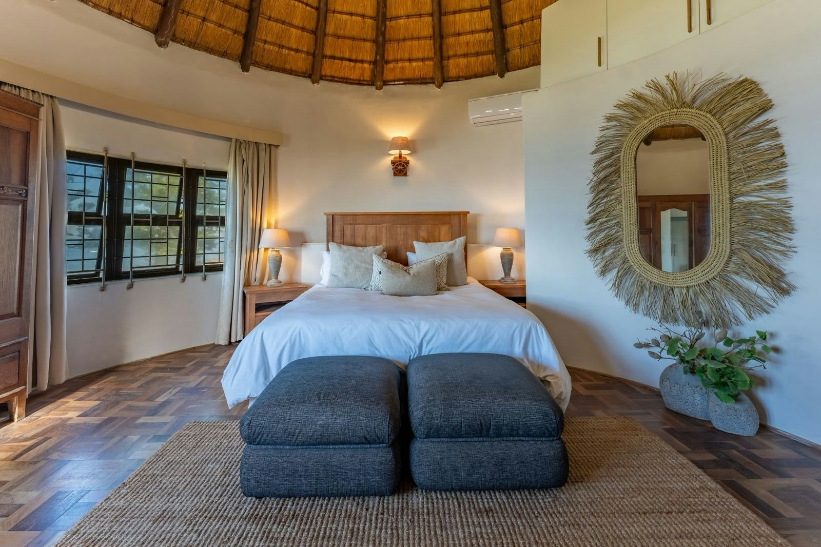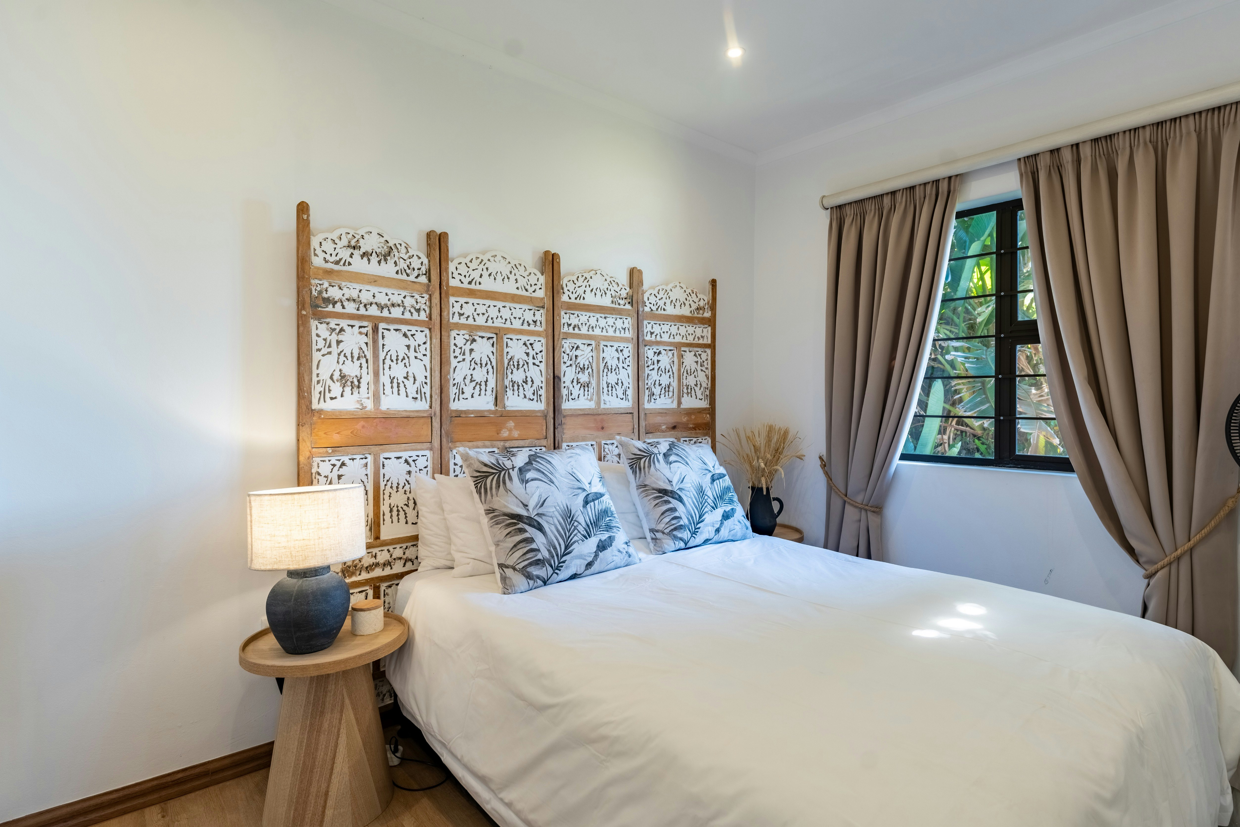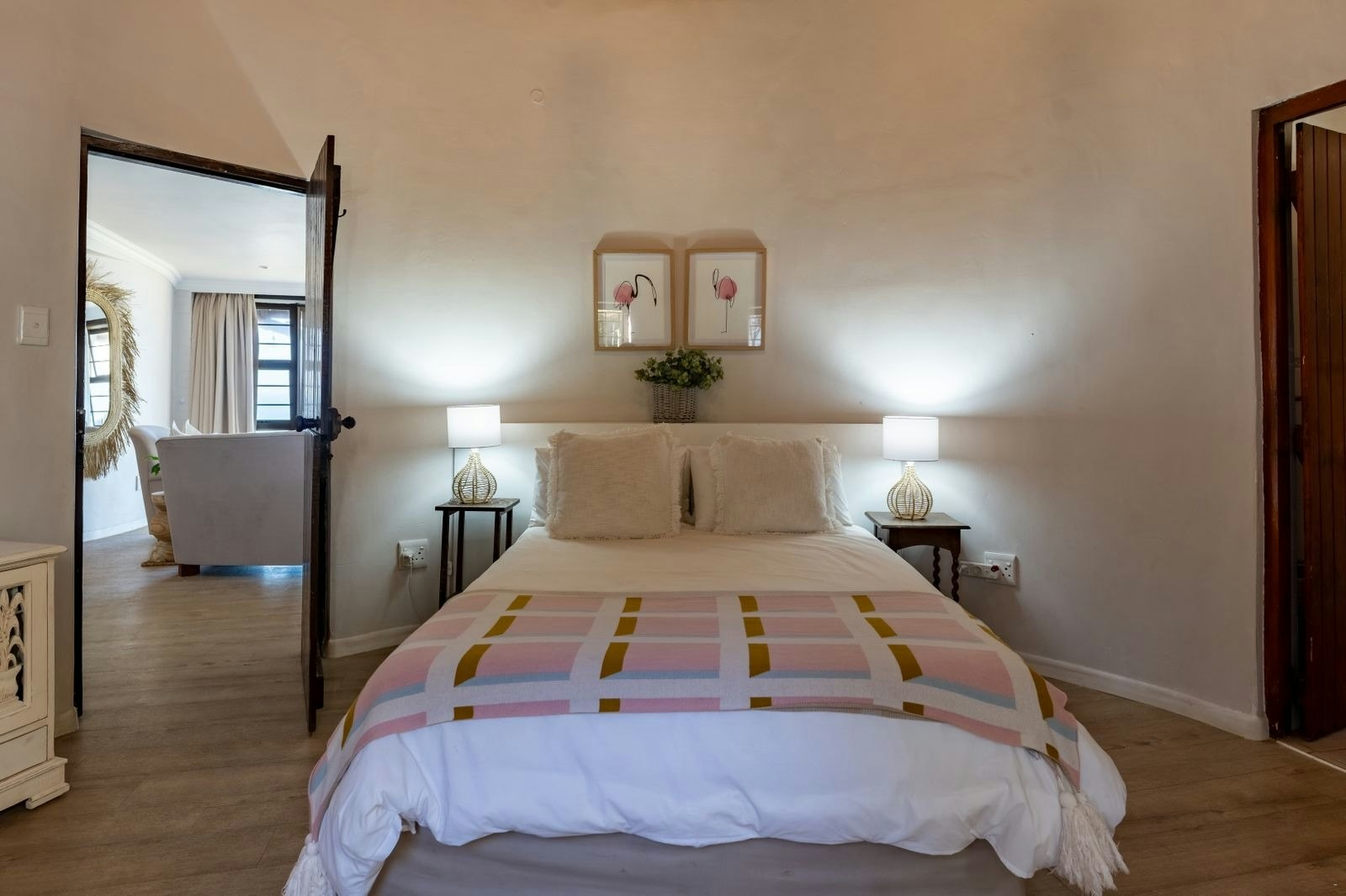 This double-storey home can accommodate up to 12 guests in 6 bedrooms and 5 bathrooms. The first bedroom is furnished with a king-size bed and has an en-suite bathroom that is fitted with a bath, shower, washbasin and toilet. The second bedroom is furnished with a queen-size bed and has an en-suite fitted with a shower. The third and fourth bedrooms each feature a queen-size bed, while the fifth bedroom contains a double bed. The sixth bedroom is furnished with 2 single beds. Two of the shared bathrooms are fitted with a bath and shower, while the third bathroom contains a shower only. Linen, bath and beach towels are provided.