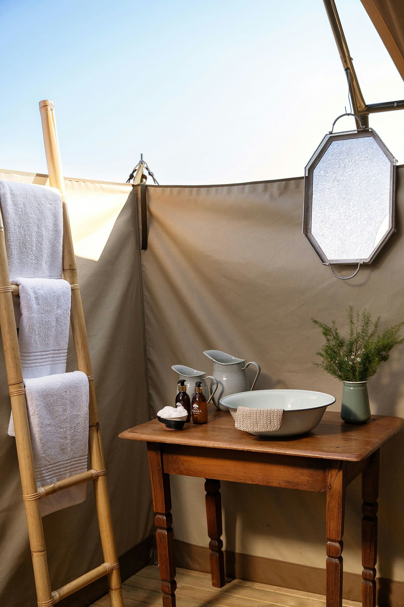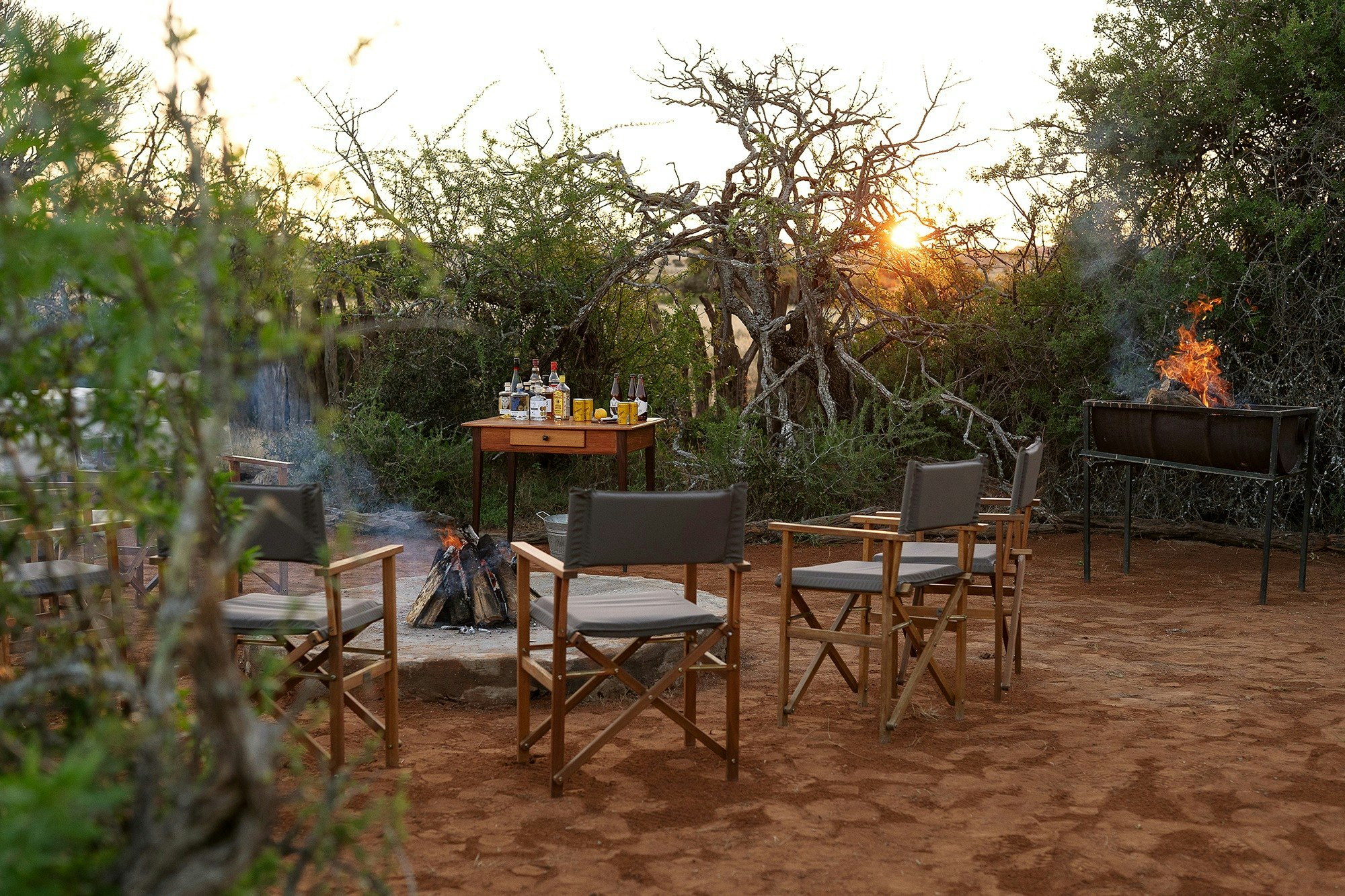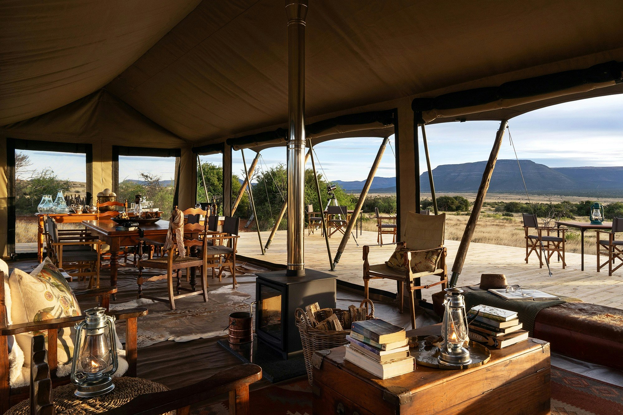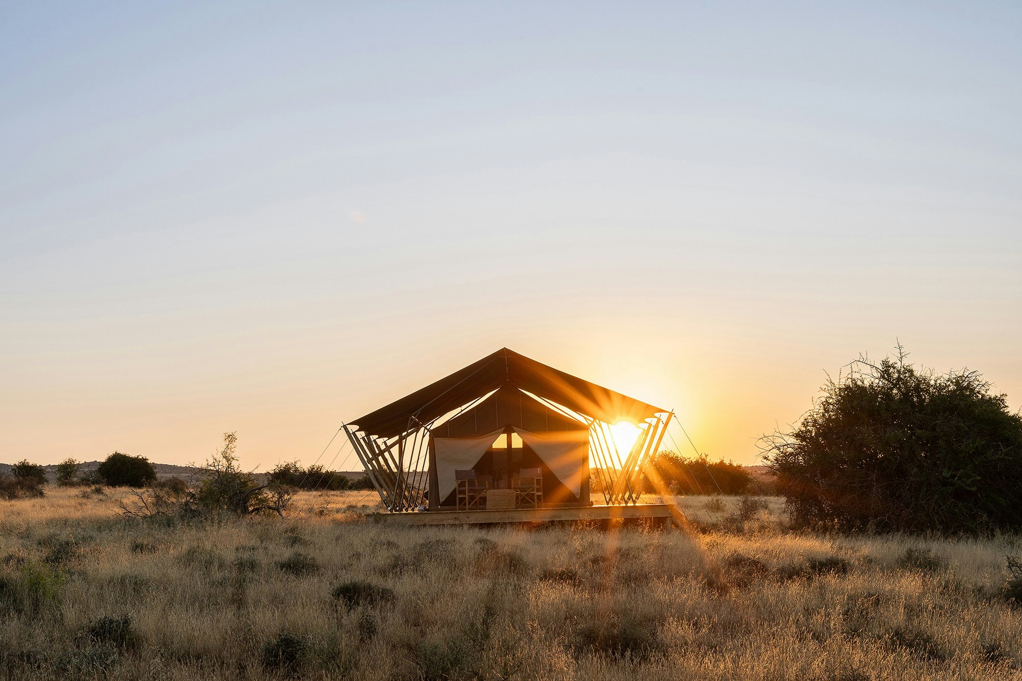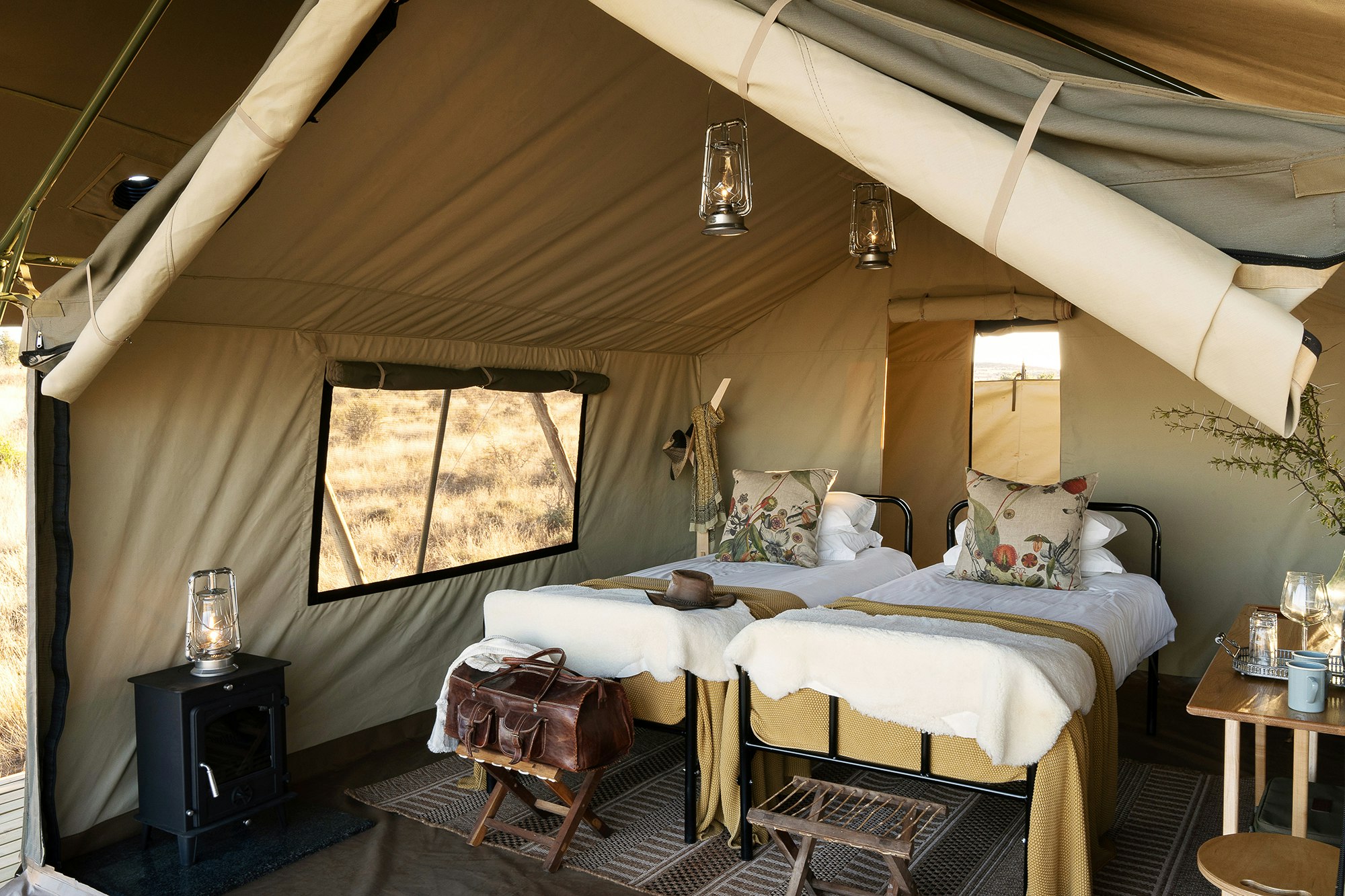Plains Camp Tented Suites is ook beskikbaar. Hierdie safari-ervaring is onafhanklik van die nasionale kragnetwerk en fokus of stap-safari's. Elkeen van die 4 tentsuites het 'n slaapkamer met 'n dubbelbed, 'n en suite-badkamer met 'n toilet, wasbak en 'n stort, 'n buitestort, kaggel en 'n sitarea.