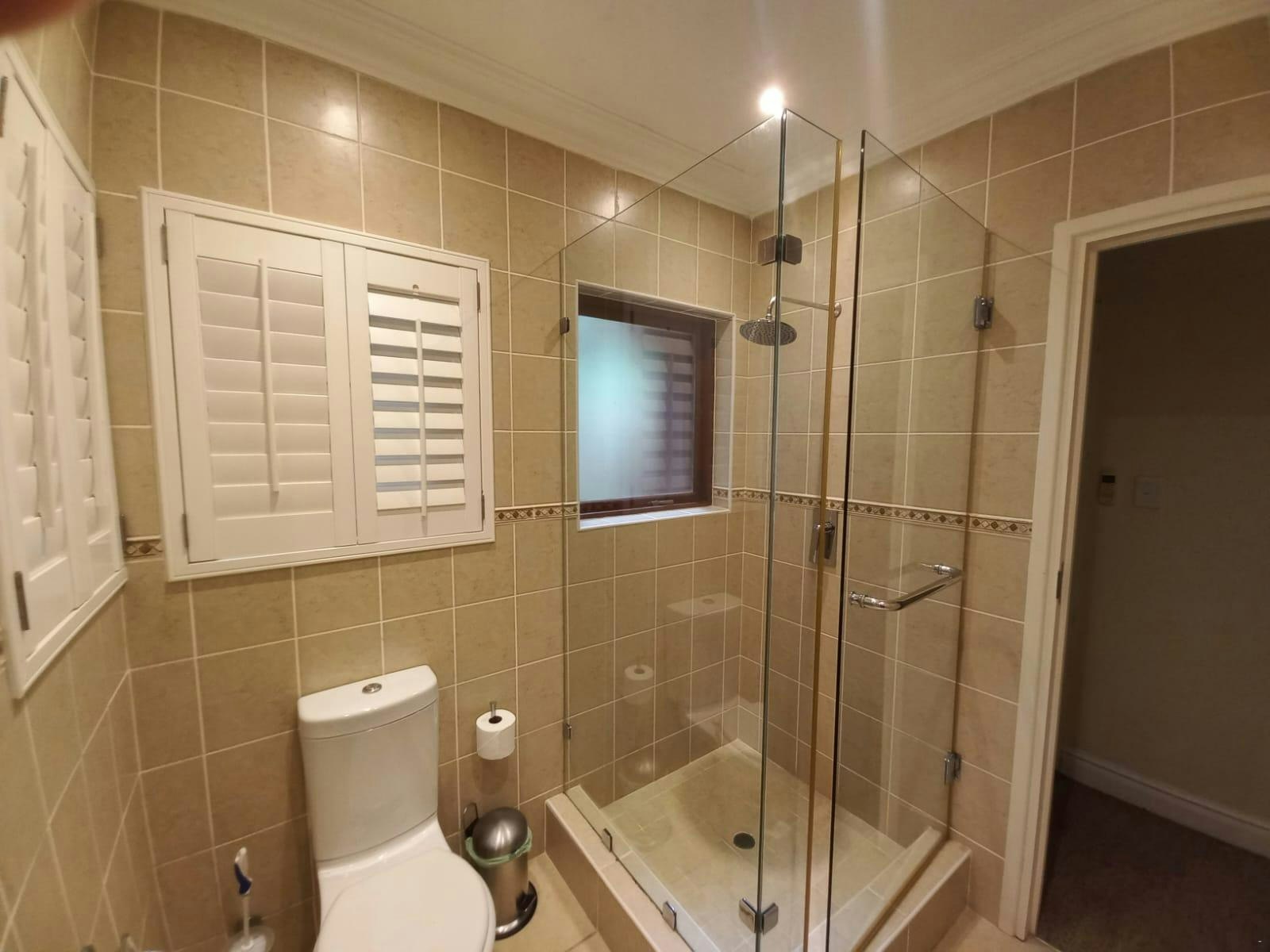 The villa has 4 bedrooms and 4 bathrooms. The main bedroom has a king-size bed, the second and third bedrooms each have a queen-size bed, and the fourth bedroom has 2 single beds. Each bathroom is fitted with a shower, bath, toilet, and basin.