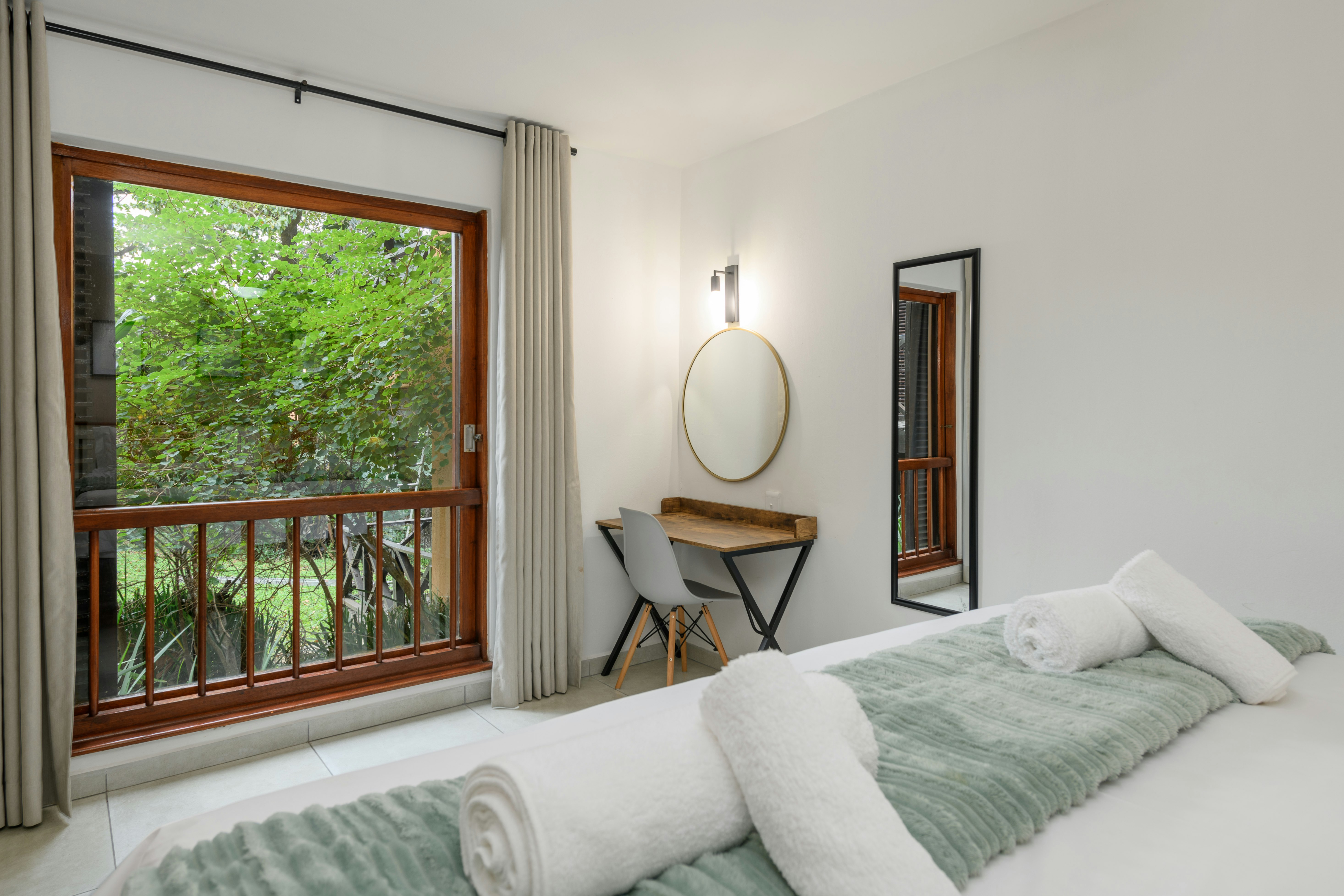 Through the sliding door is a patio that has a dining table with 6 chairs and boasts a view of the garden. Access to free secure parking is available. Relax at the estate's communal swimming pools or spoil yourself with beautiful views. San Lameer also offers expansive leafy surroundings, gardens for picnics, a children’s play area, bicycles for hire, a fishing dam and a bird viewing dam. Guests can also enjoy the communal braai areas and hiking trails.