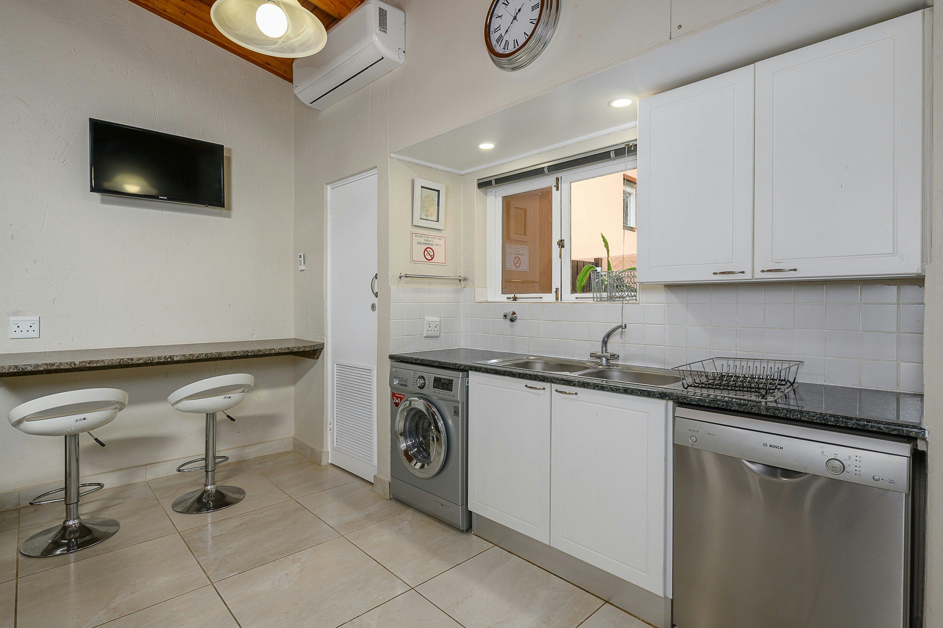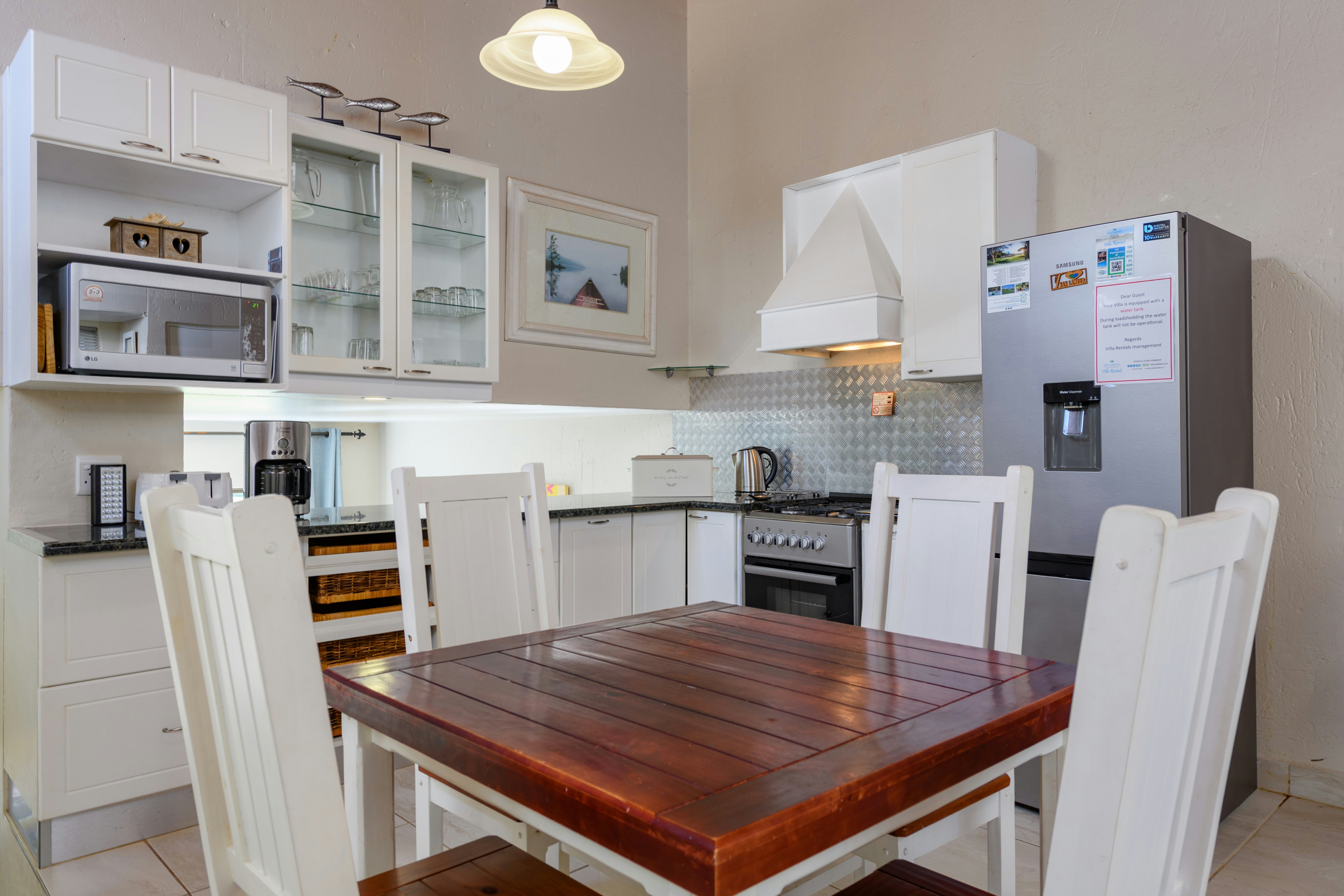 The kitchen is fully equipped for self-catering and contains a stove, an oven, a fridge-freezer, a microwave, cutlery and crockery, as well as tea- and coffee-making facilities. A washing machine, and a tumble-dryer are also available for guests to use. The dining area has seating for 8 people, while the lounge has a comfy lounge suite and a TV with selected DStv channels.