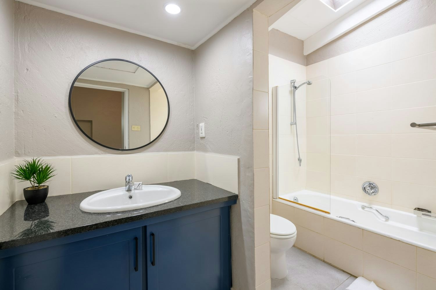 The living area opens up onto a covered verandah, which boasts stunning views of the leafy surroundings. This verandah features a comfortable outdoor lounge suite, a built-in braai, and a dining table suitable for an al fresco dining experience. This villa is equipped with a water tank. Access to secure parking is available.